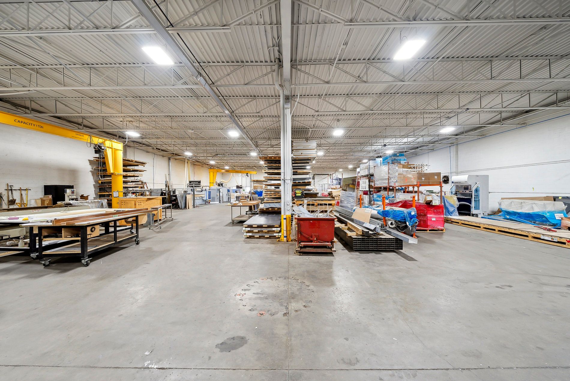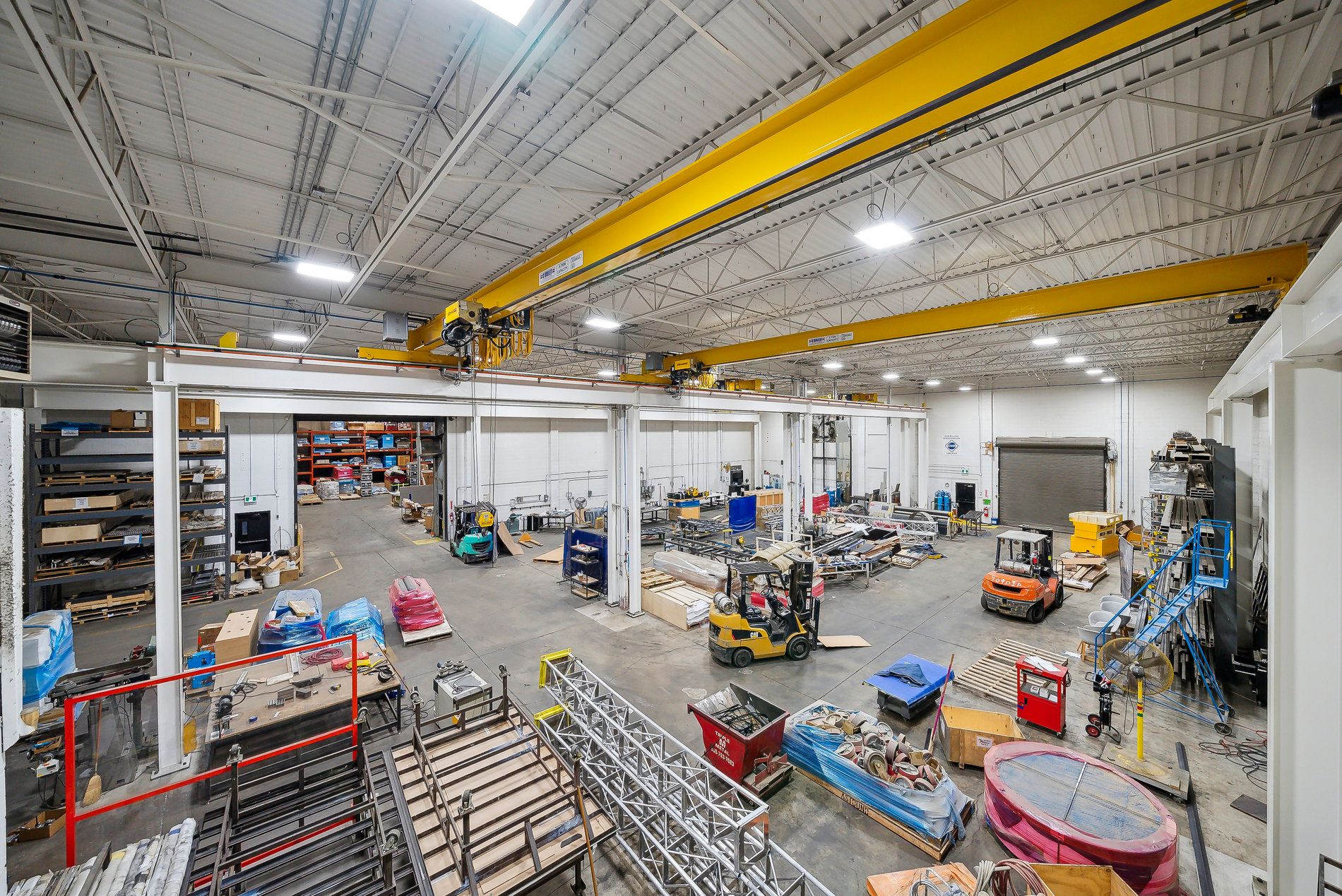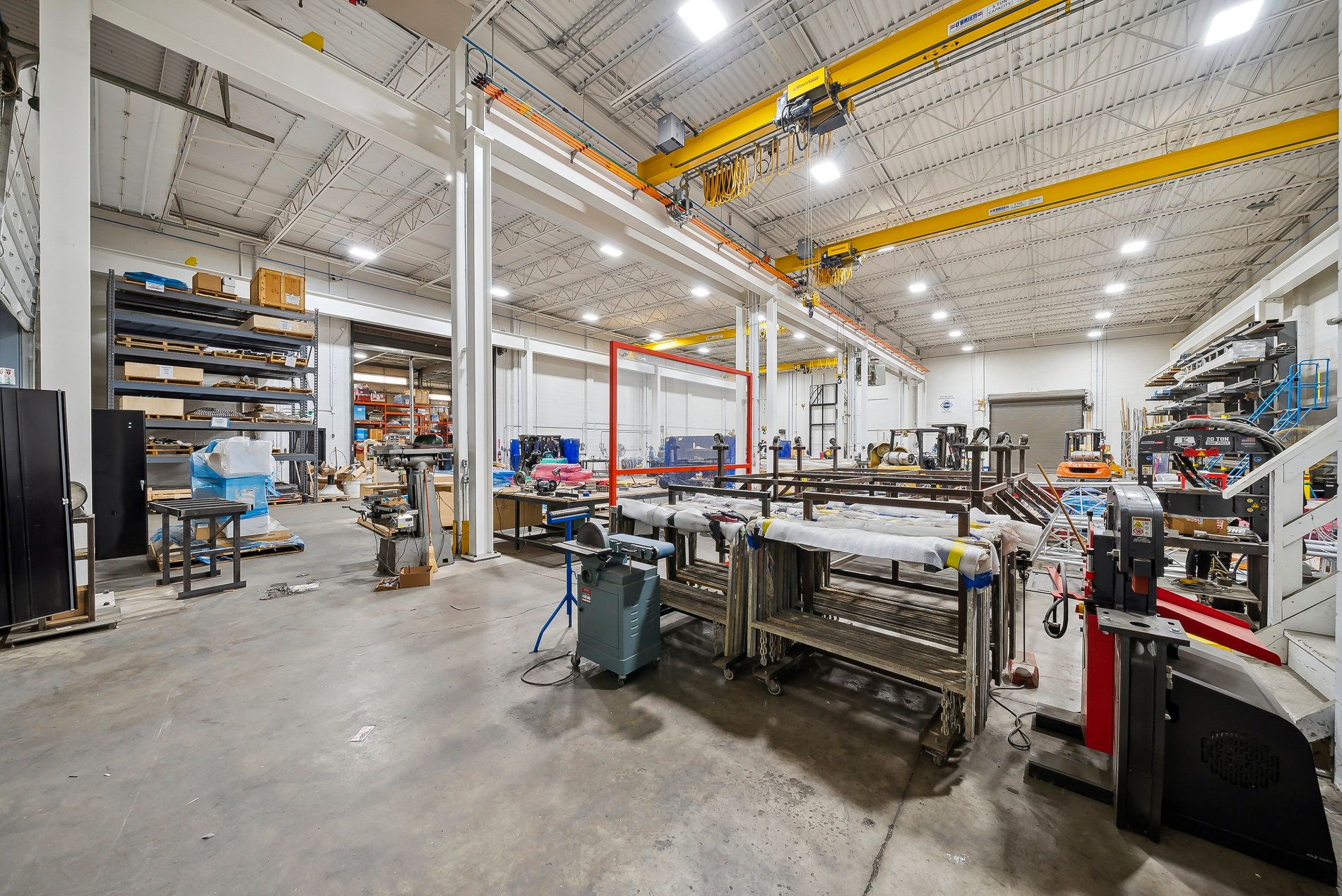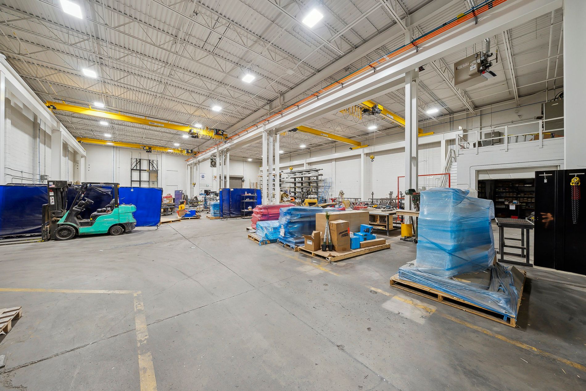 A freestanding building featuring heavy power with three separate services to the building (1,600 Amps, 600 amps, and 400 amps), oversized doors, cranes, and a paint booth, with a dust collection system. Very clean white boxed warehouse and epoxy floors, with the ability to have outside storage in the rear. Five-ton cranes, with ten-ton tandem lifting capacity. Conveniently located at QEW and Appleby Line, great access to Hwy 403 and many amenities.