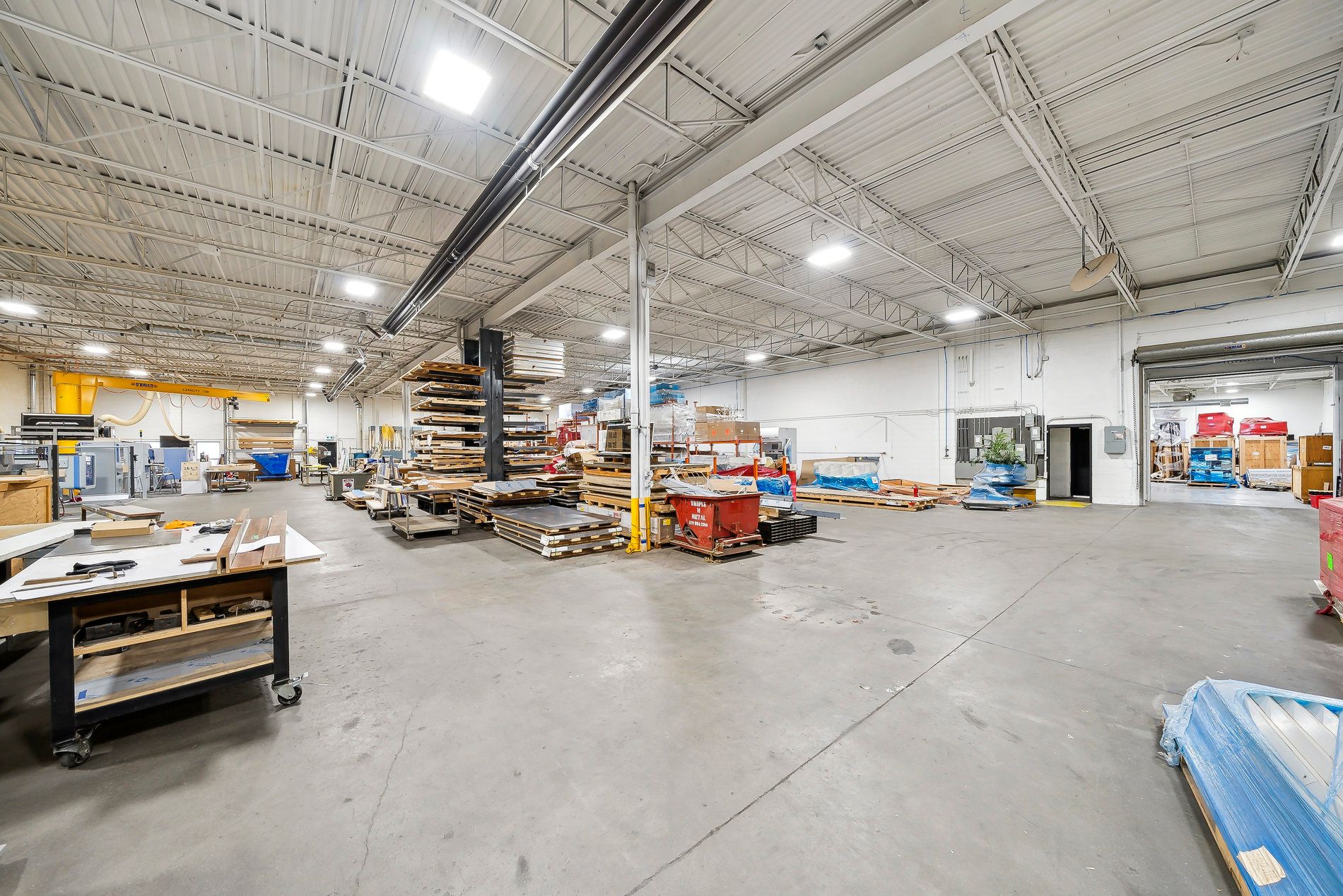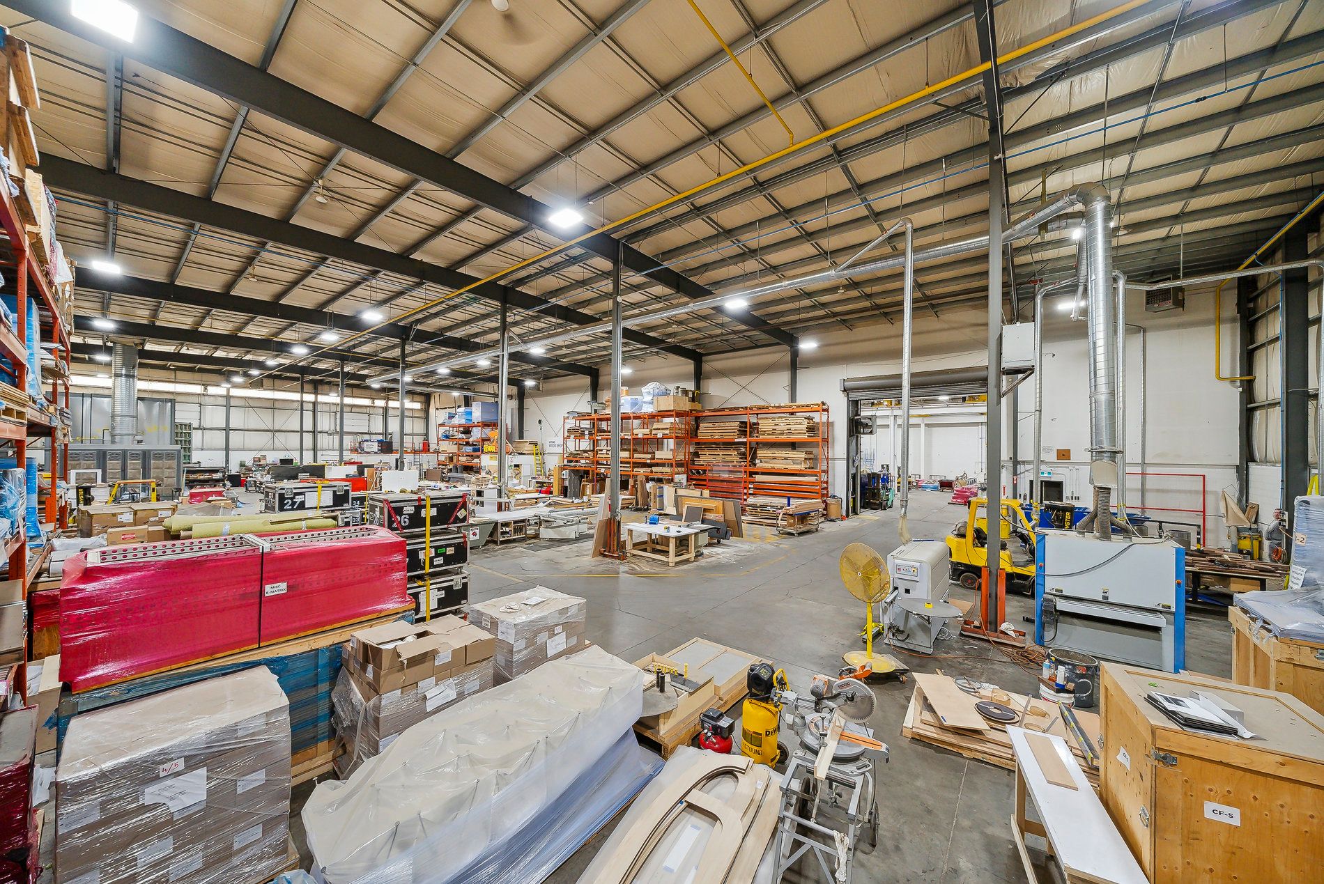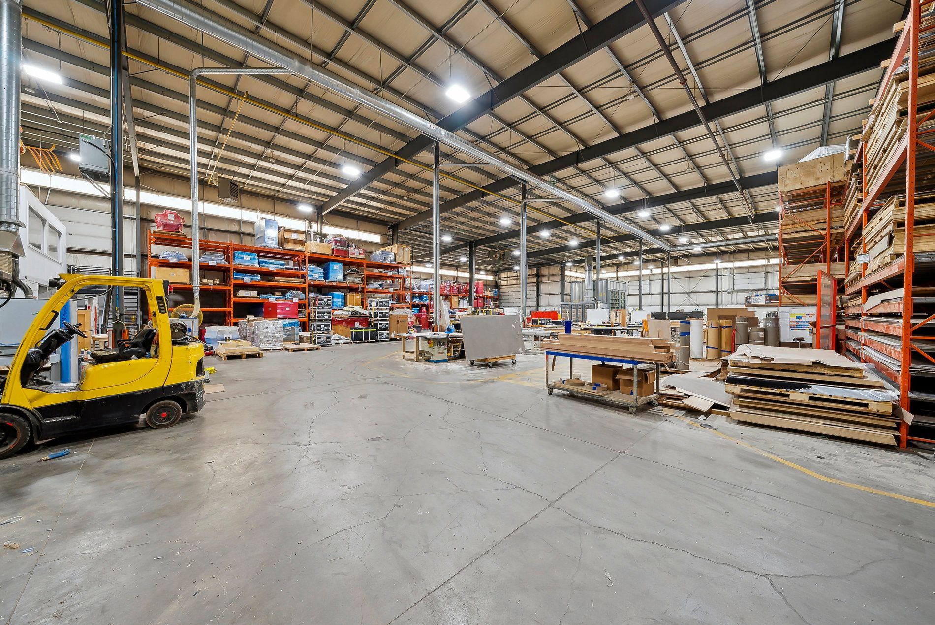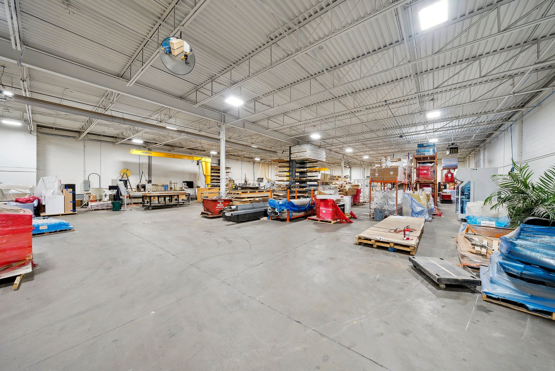 A freestanding building featuring heavy power with three separate services to the building (1,600 Amps, 600 amps, and 400 amps), oversized doors, cranes, and a paint booth, with a dust collection system. Very clean white boxed warehouse and epoxy floors, with the ability to have outside storage in the rear. Five-ton cranes, with ten-ton tandem lifting capacity. Conveniently located at QEW and Appleby Line, great access to Hwy 403 and many amenities.
