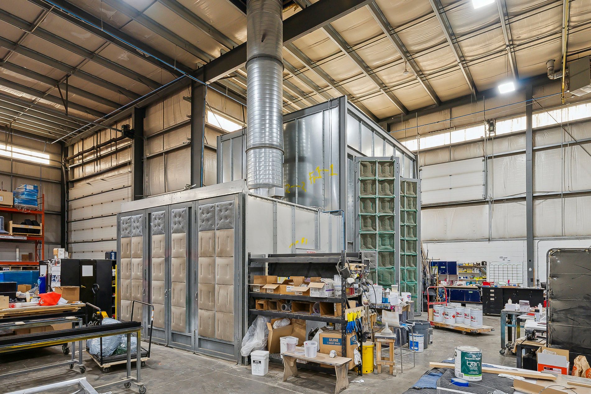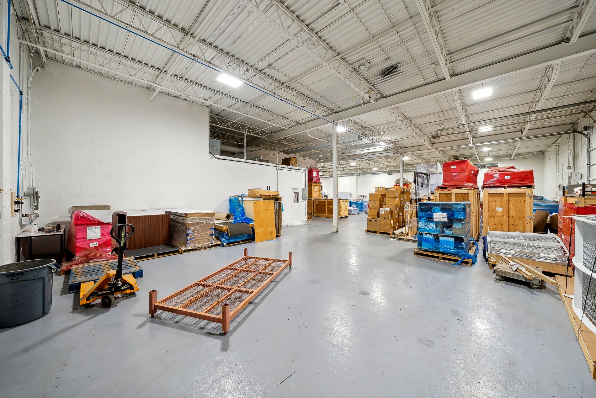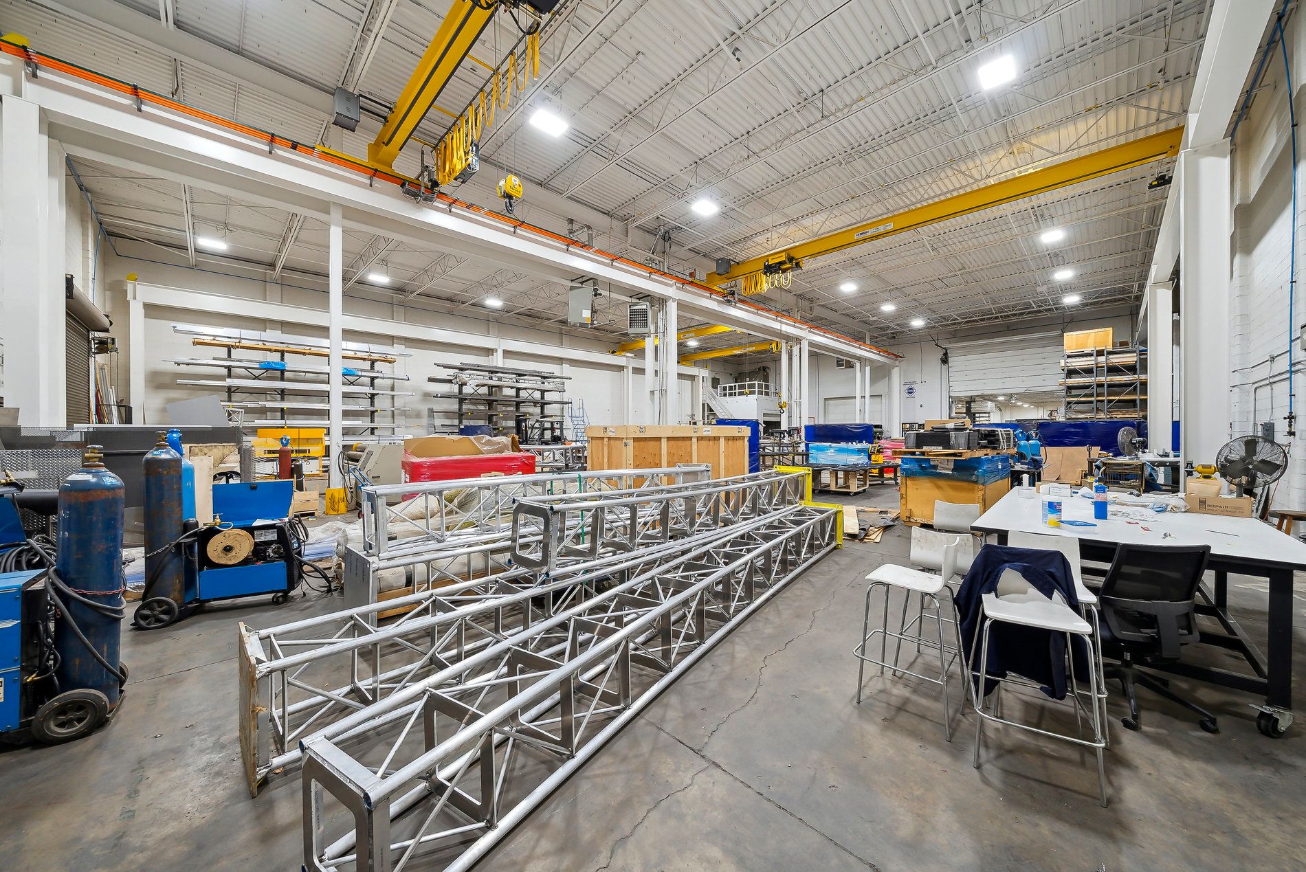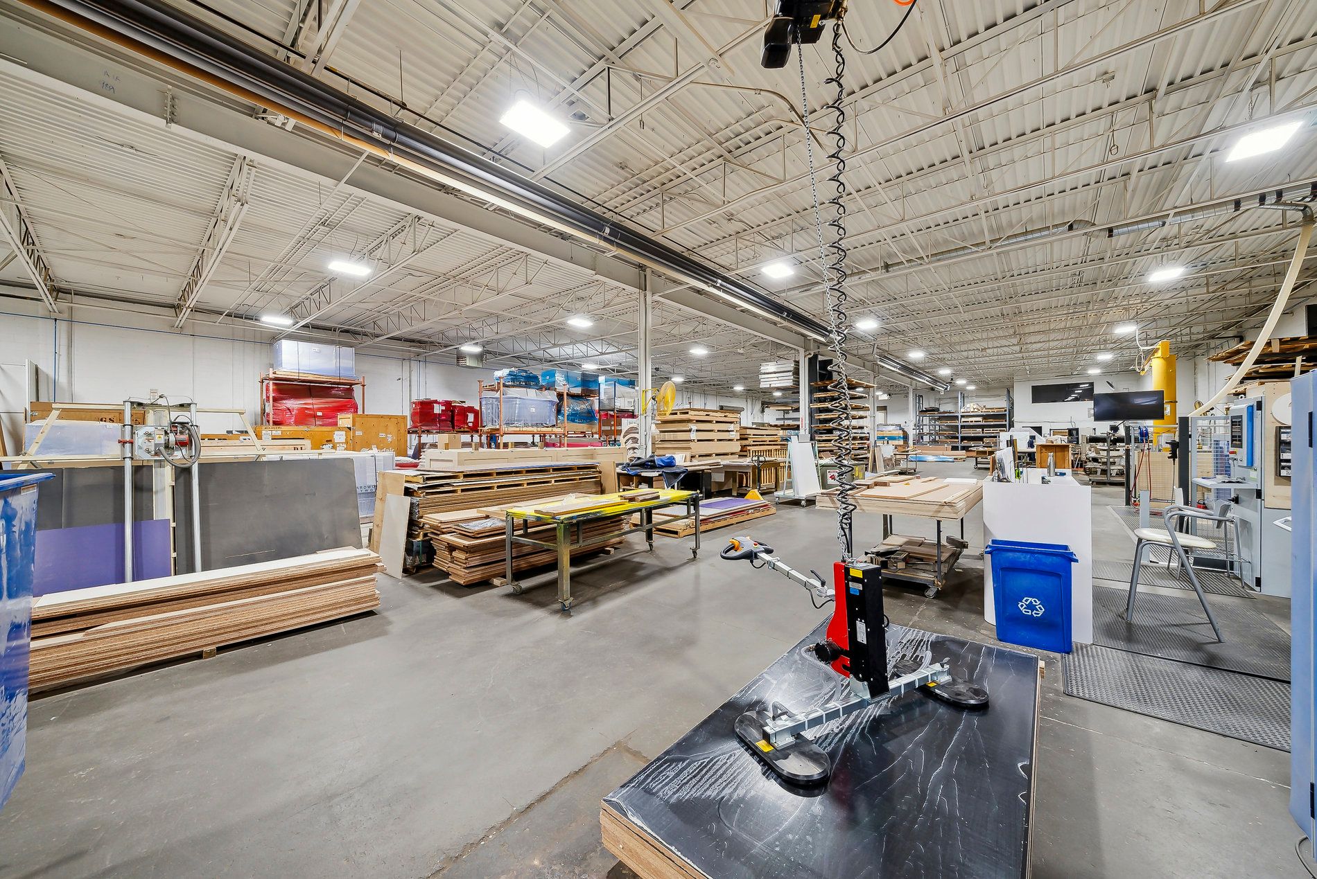 A freestanding building featuring heavy power with three separate services to the building (1,600 Amps, 600 amps, and 400 amps), oversized doors, cranes, and a paint booth, with a dust collection system. Very clean white boxed warehouse and epoxy floors, with the ability to have outside storage in the rear. Five-ton cranes, with ten-ton tandem lifting capacity. Conveniently located at QEW and Appleby Line, great access to Hwy 403 and many amenities.