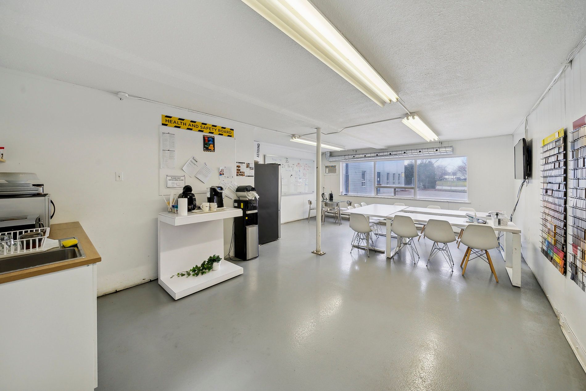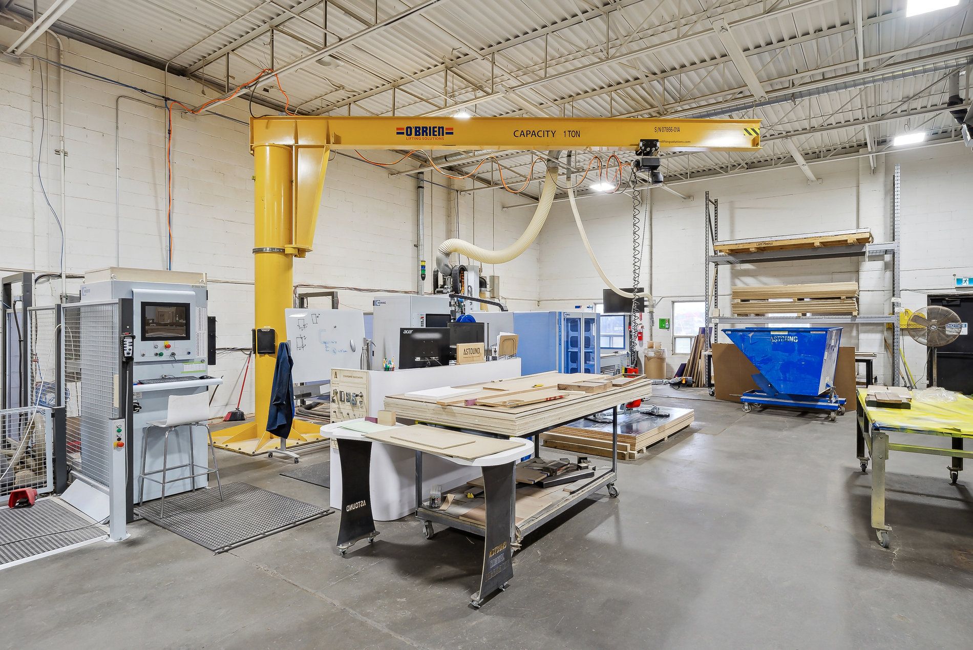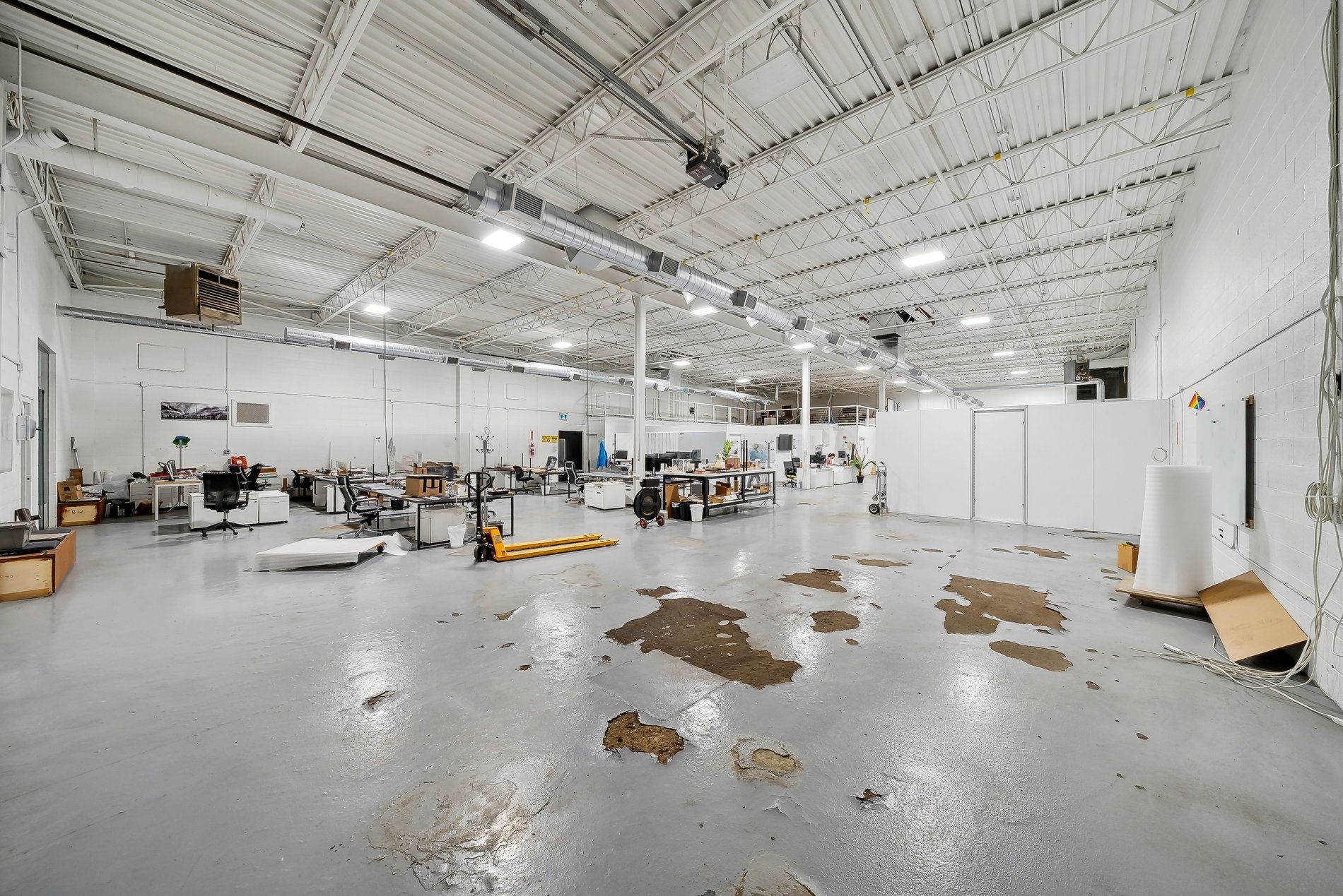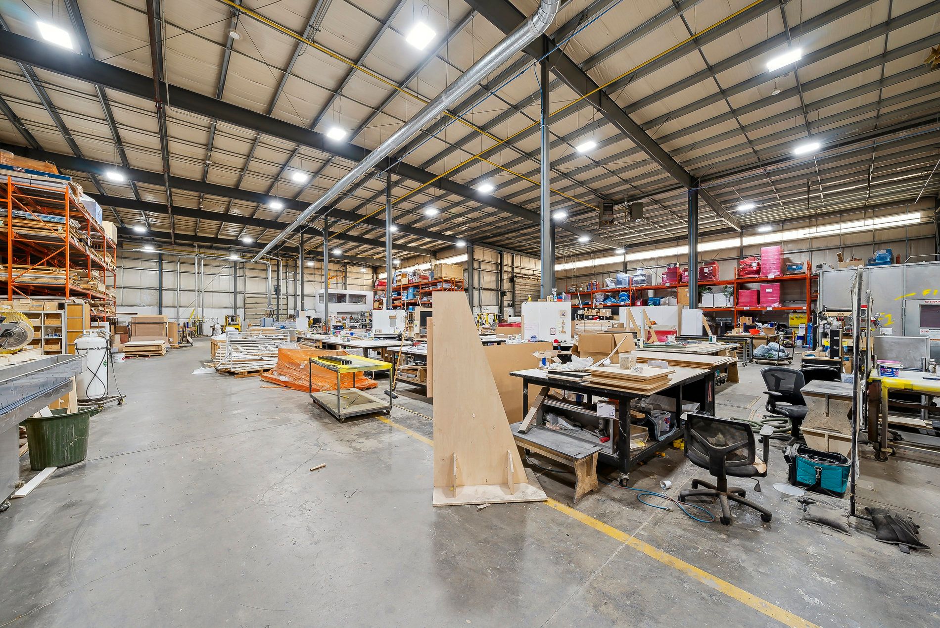 A freestanding building featuring heavy power with three separate services to the building (1,600 Amps, 600 amps, and 400 amps), oversized doors, cranes, and a paint booth, with a dust collection system. Very clean white boxed warehouse and epoxy floors, with the ability to have outside storage in the rear. Five-ton cranes, with ten-ton tandem lifting capacity. Conveniently located at QEW and Appleby Line, great access to Hwy 403 and many amenities.