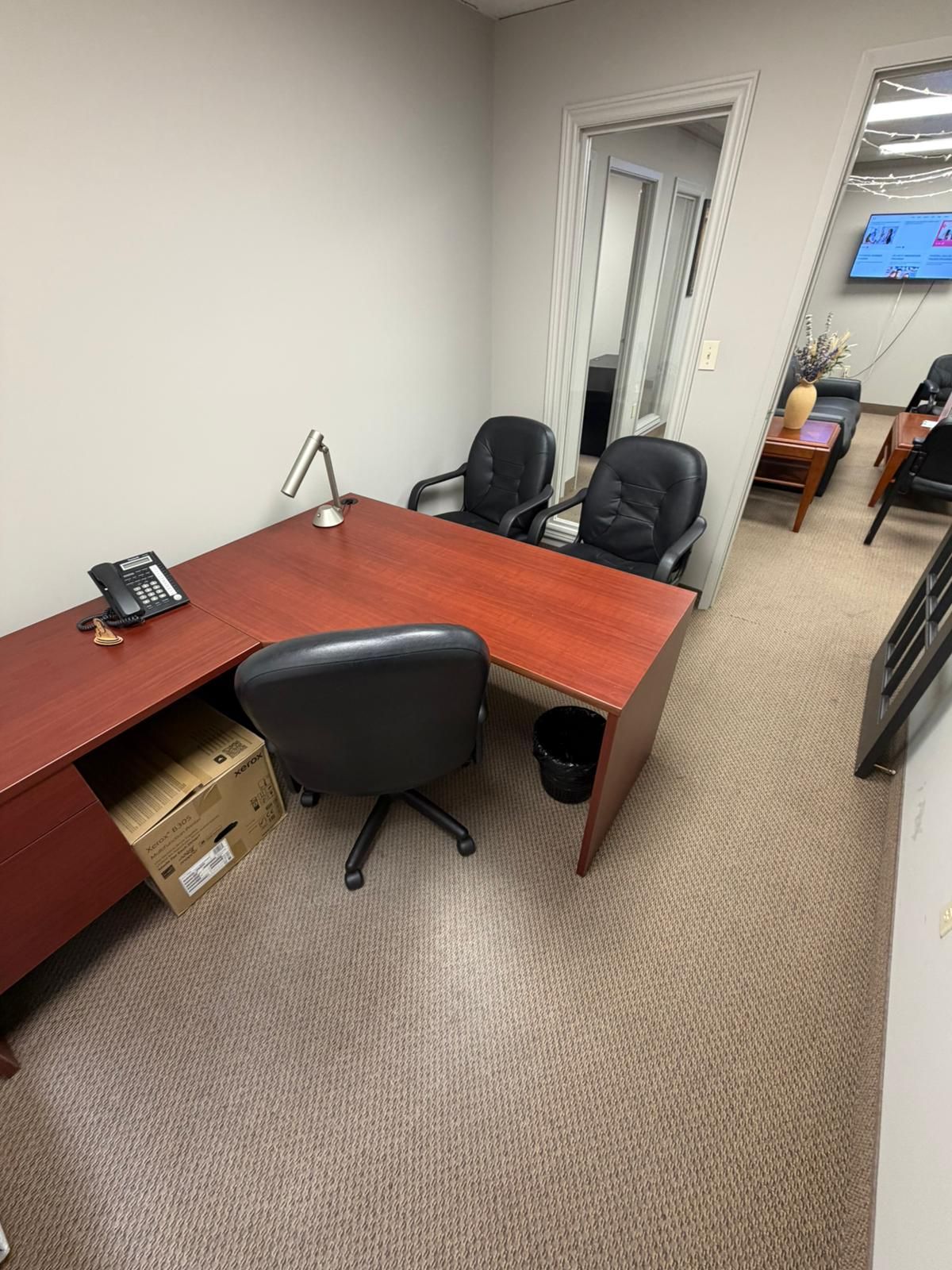Quiet private office for lease within a shared office facility. Fully furnished with furniture and decor. Modern decor and LED lighting, it includes access to a spacious boardroom, waiting lounge, kitchenette, and washrooms. Located in central Mississauga near Hwy 10 and Britannia. Close to Square One Mall and major highways such as: 401/403/407/410/427. Within walking distance to the new and upcoming LRT on Hwy 10 (Hurontario).