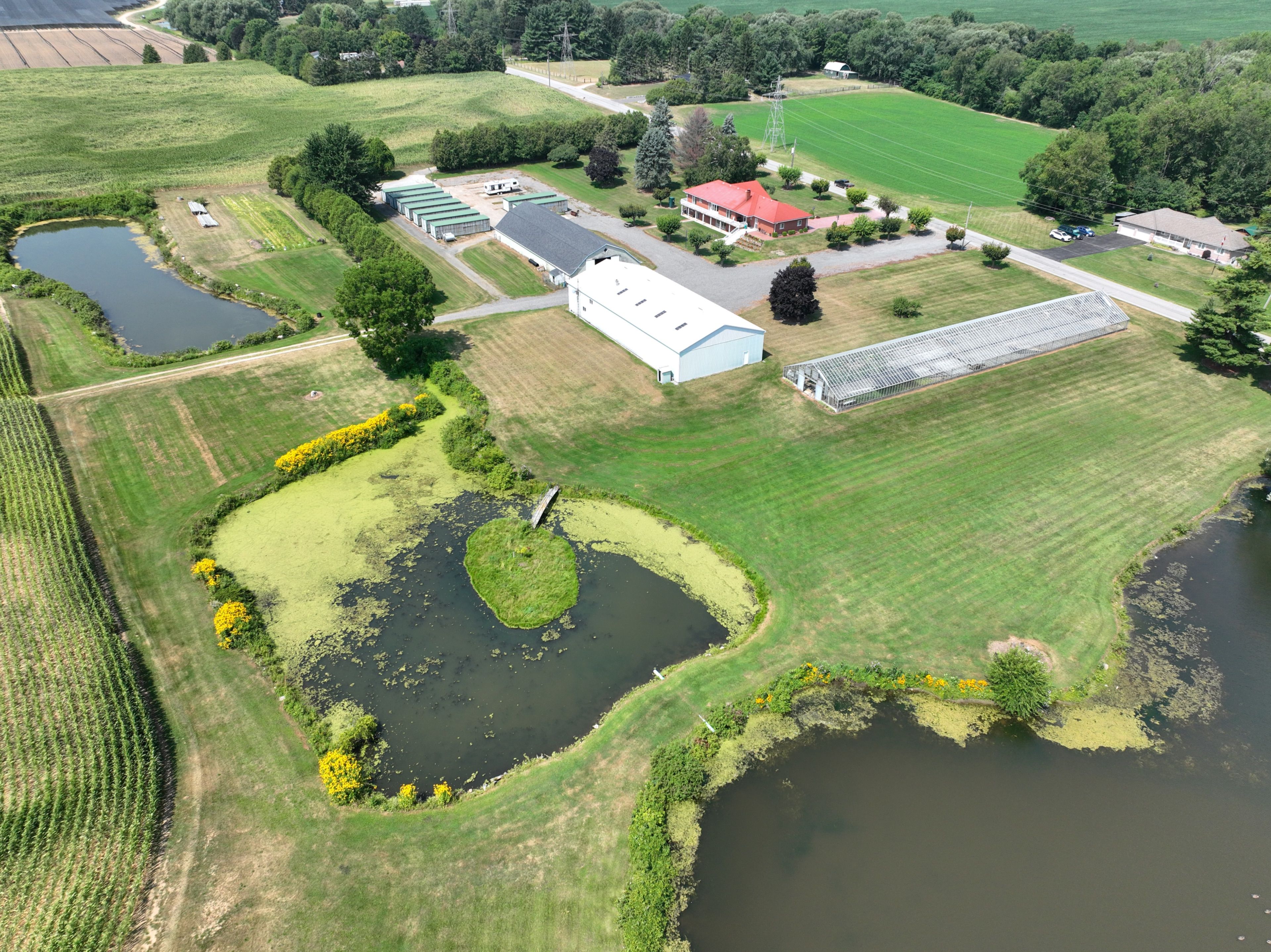 An investment combined with a lifestyle. This well-maintained 205 +/- acre farm features 175 +/- workable acres of sandy/sandy loam soil suitable for a wide range of crops, including grains, edible beans, tobacco, melons, cabbage, and ginseng (not previously grown). An irrigation pond services the field with two hookup points along the main laneway. The property includes a solid brick home built in 1985 with a full raised walkout basement and second kitchenideal for extended family or rental use. The home offers 3+1 bedrooms, 2+1 bathrooms and ample living space. Down the main driveway is a 112'x50' concrete floor shed with a 30'x36' shop insulated with heat and convertible into a cooler for crop storage. Behind the shop are living quarters with a bathroom, kitchen and living area, and an upstairs bathroom. Across the driveway is a 110'x50' concrete floor barn. To start plants, there is a 200'x40' greenhouse with water and a natural gas furnace. Scenic ponds and thoughtful landscaping add natural beauty to the outdoor area. Additional income potential with a separate 2-bedroom, 1-bathroom bunkhouse currently being rented. Excellent opportunity for farming, investment, or multi-generational living with revenue options. Serviced by natural gas and fibre optics are currently being installed. More photos and information are available.