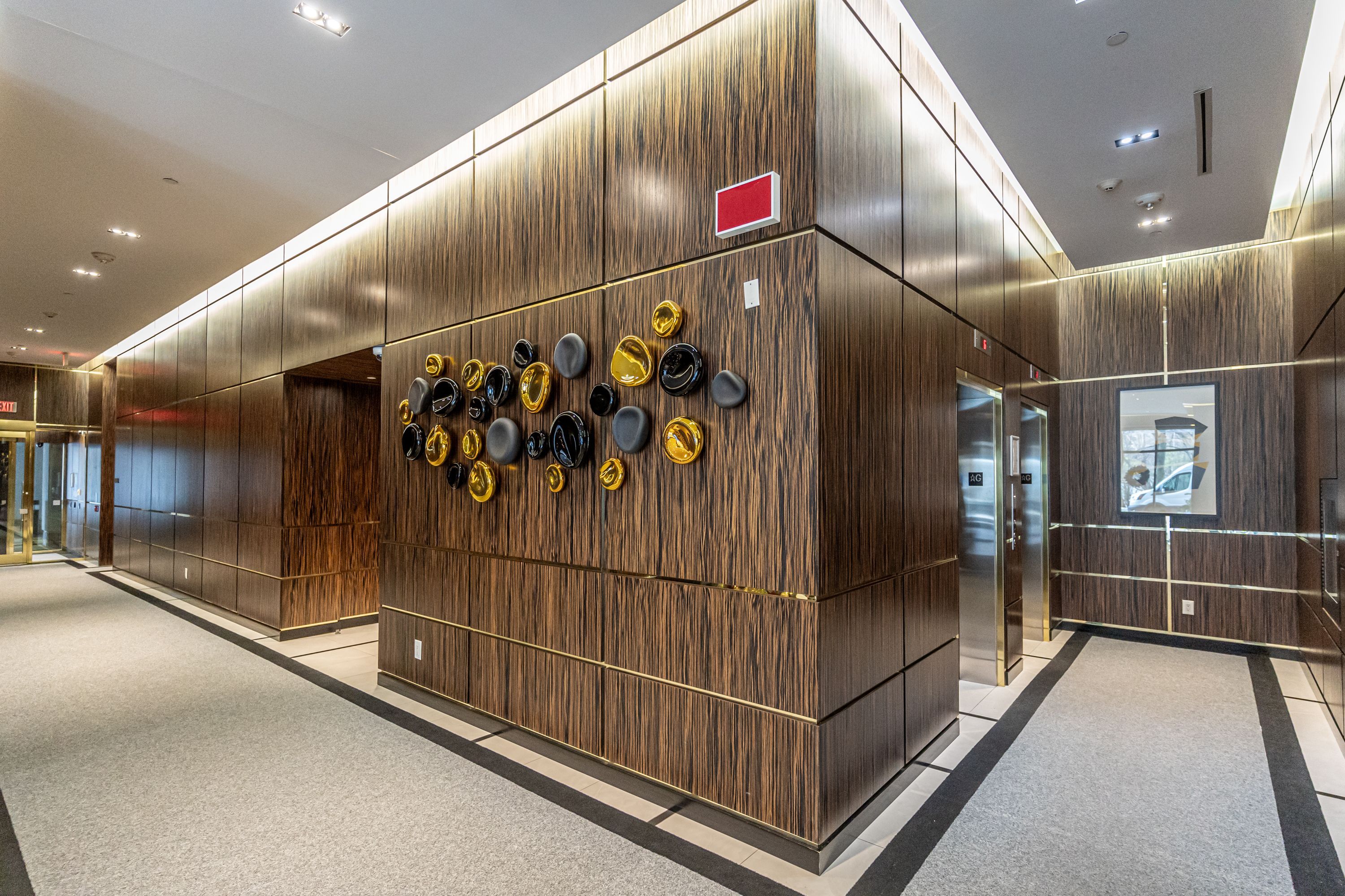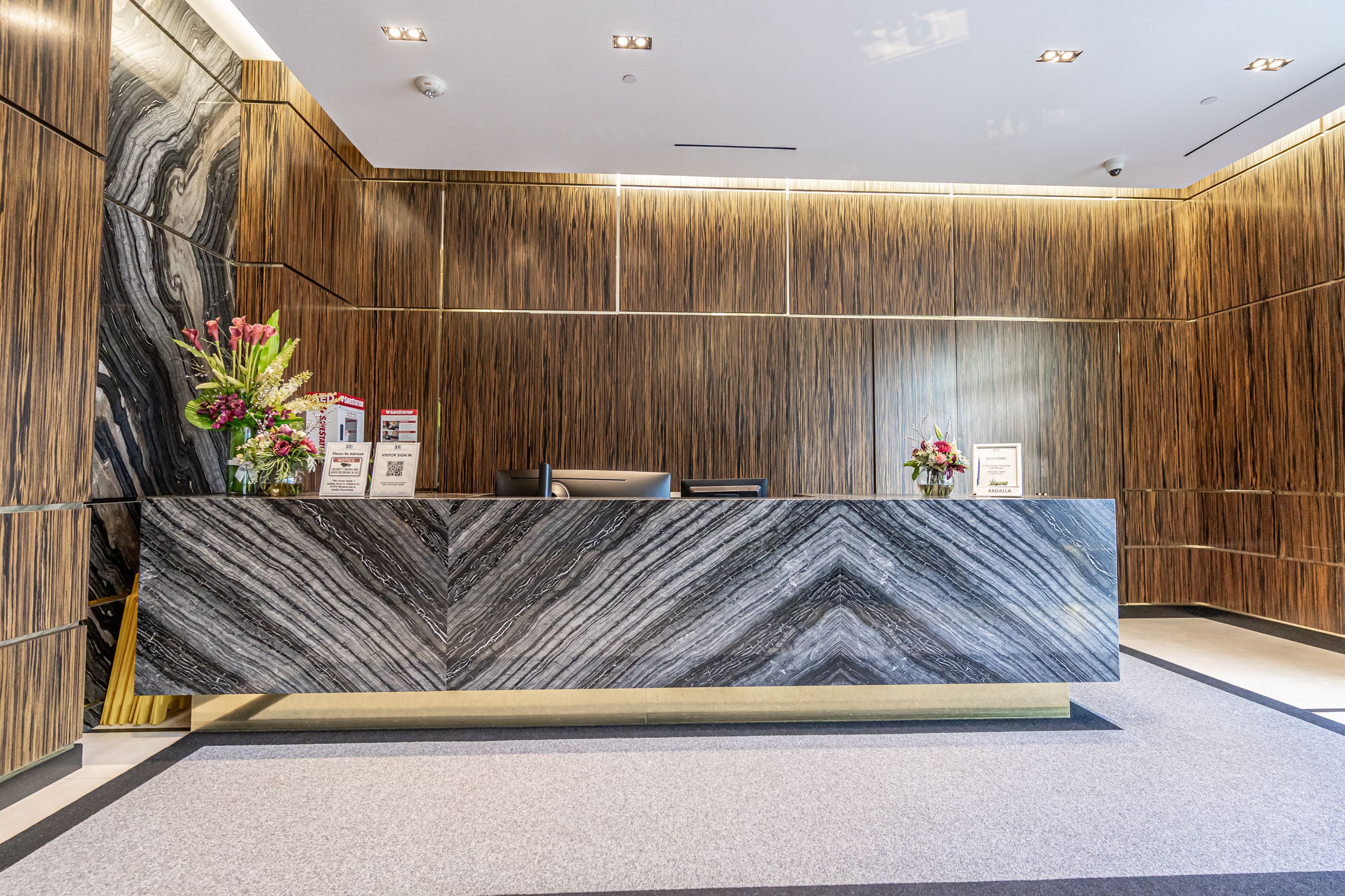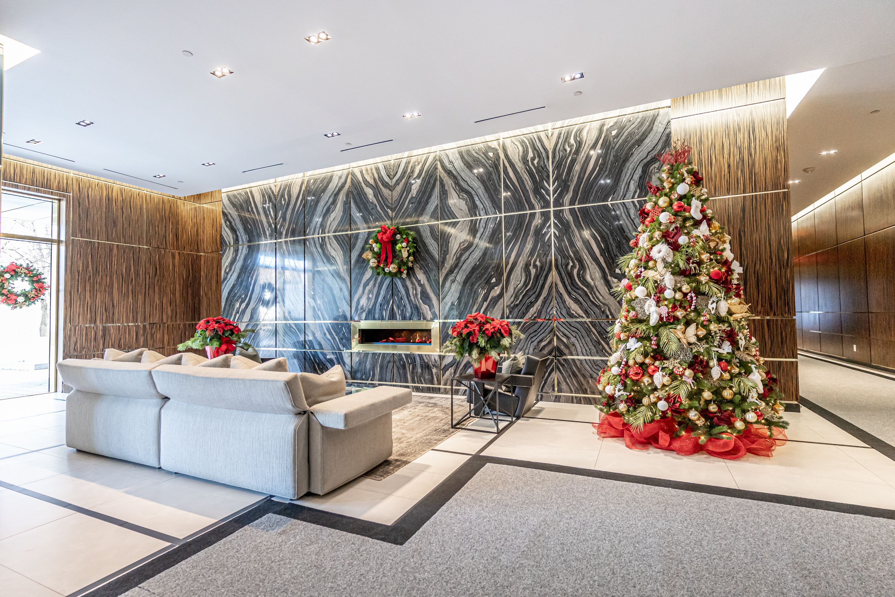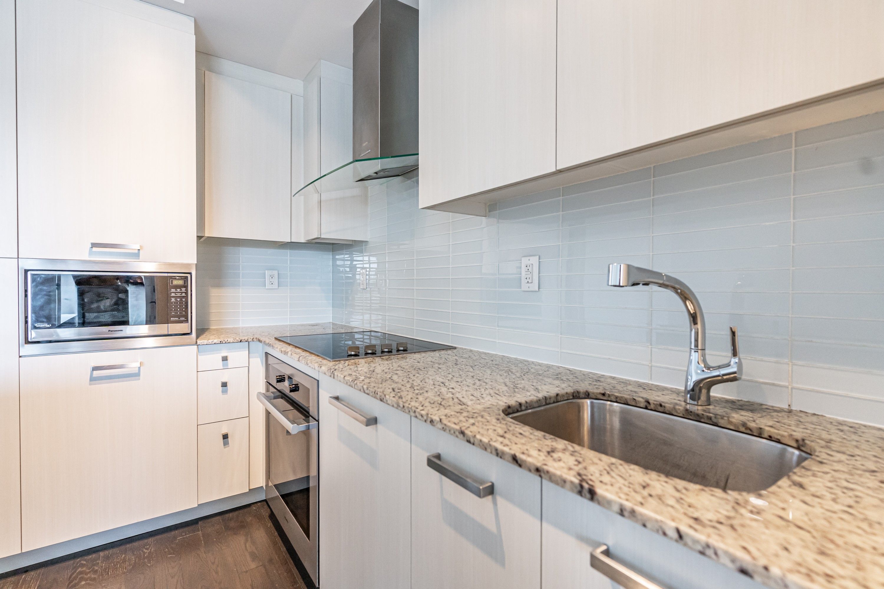 True luxury 1 Bedroom + Den condo with treetop views of Lawrence Park Ravine. This spacious 710 square foot layout is filled with natural light and includes a large open concept kitchen and centre island complete with breakfast bar. The kitchen features abundant storage with pantries and a luxury Liebherr and Miele European appliance package, including paneled built-in appliances for a clean modern look. The living and dining rooms are functionally laid out and large enough for full-size furnishings. Flooring throughout the living and bedroom areas is a premium oak hardwood. The bedroom is daylit and includes a large closet with built-in safe for valuables. The den provides space for a home office, small TV lounge, or room for a murphy bed to accommodate an overnight guest. There are two walkouts to a large balcony with gorgeous east and southeast views. The cream marble bathroom features tile fronted soaker tub and Kohler fixtures. This unit is ideal for young professionals looking for quick access to TTC Lawrence Station, downsizers from the neighbourhood, or anyone looking for a North Toronto pied-a-terre. This exclusive building features an elegant lobby with concierge, huge party room, ground floor outdoor lounge with BBQ area, and luxurious rooftop amenities including a saltwater outdoor swimming pool, outdoor hot tub with fireplace, extensive outdoor seating areas with panoramic city views, and a well equipped gym with spa-like steam room. This building has ample visitor parking and is just steps from the TTC, local shops, cafes, and restaurants. One parking space and locker are included.