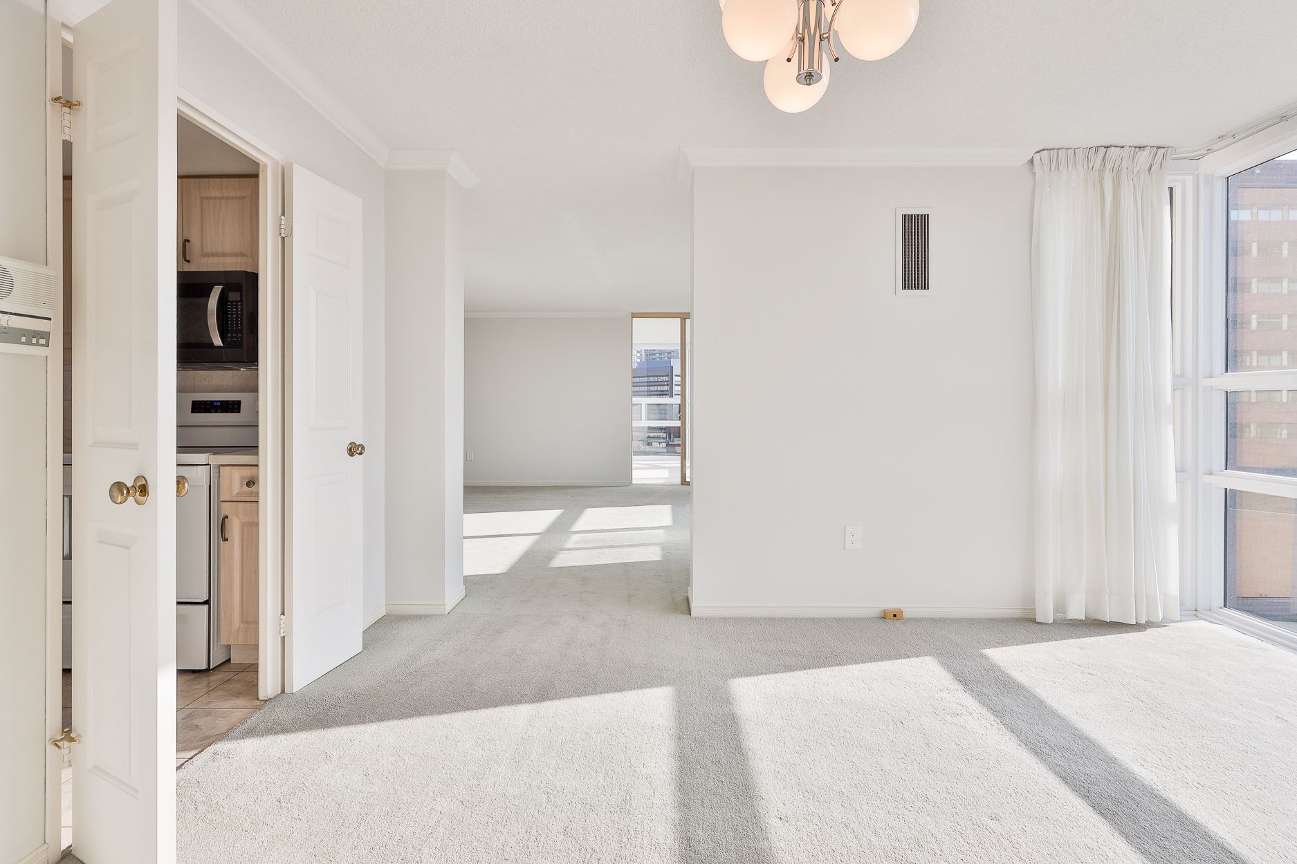 At 1,785 square feet, this 2-bedroom plus den, 2-bathroom southwest corner suite is in a category of its own. Condos of this size are rare, and the moment you step inside, the difference is clear. This is a home designed for real living, entertaining, and day-to-day comfort, without compromise. The layout is exceptionally functional. There's room for a proper living area with a full couch and TV setup, a separate dining room for family meals or hosting, and an eat-in kitchen that feels both practical and inviting. A small wet bar located between the kitchen and living space adds a thoughtful touch for entertaining. Large windows throughout the suite, paired with the southwest exposure, fill the home with natural light throughout the day. The primary bedroom easily accommodates a king-sized bed and includes a large walk-in closet and a private ensuite bathroom. The den is a true bonus-its own room, filled with windows and directly connected to the primary bedroom-making it ideal as a home office, reading room, or quiet retreat. The second bedroom is generously sized as well, offering excellent flexibility for guests, family, or additional workspace. Rent is all-inclusive WITH internet (Rogers Ignite) and phone. The building's amenities are designed to genuinely enhance daily life, with an indoor pool, squash and racquet court, basketball net, gym, outdoor terrace with communal BBQs, visitor parking, multiple party rooms, a games room, library, ping pong, and a concierge who knows residents by name and will park your car up to 11pm (for those in need). Everyday convenience is close at hand, with grocery stores, restaurants, and essential services nearby. The subway is within walking distance, and Highway 401 is just minutes away, making commuting and getting around the city easy. Two tandem parking spaces and a huge locker are included, providing the kind of storage and parking solutions that are hard to find in condo living. Condos this size don't come around often!