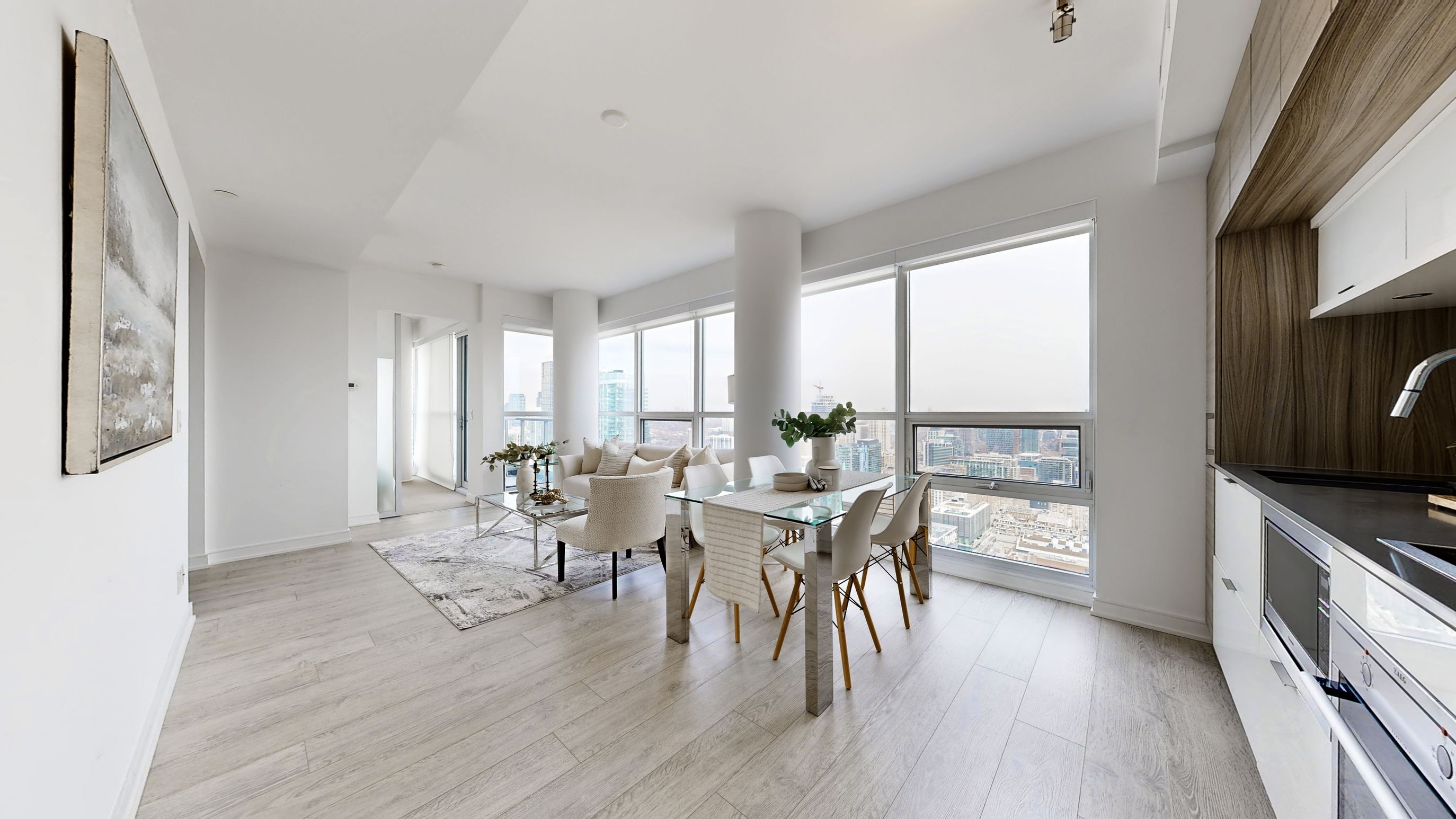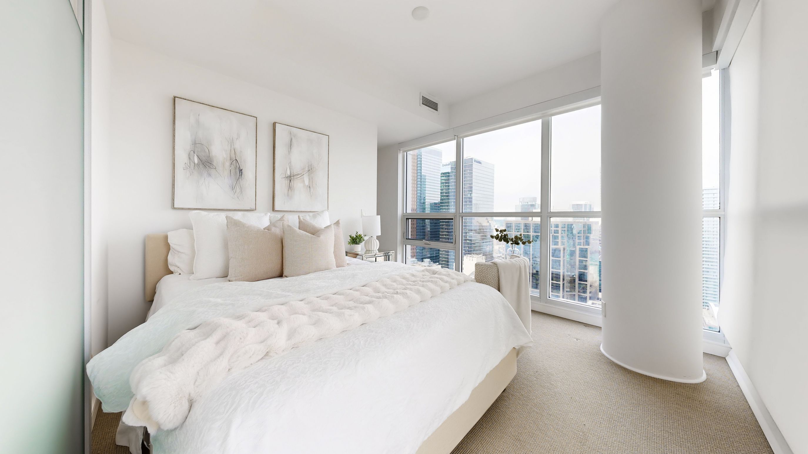 Experience elevated living at the prestigious 88 Scott - an iconic address in Toronto's coveted Yonge/King/Wellington corridor. Perched on the 37th floor, this sun-filled 2-bedroom, 2-bathroom corner suite showcases breathtaking unobstructed northeast city views with stunning lake vistas through expansive floor-to-ceiling windows. The bright open-concept layout is designed for both everyday comfort and upscale entertaining, featuring wide-plank flooring, a sophisticated neutral palette, and seamless flow between living, dining, and kitchen spaces. The sleek modern kitchen is beautifully appointed with integrated appliances, premium cabinetry, and clean, contemporary lines. The thoughtfully designed split-bedroom layout offers ideal privacy. The primary suite is a tranquil retreat with panoramic views, ample closet space, and a spa-inspired ensuite. A spacious second bedroom and a stylish second bathroom provide flexibility for guests, family, or a home office. Step out onto the balcony and take in sweeping skyline and lake views - an impressive extension of your living space. Unbeatable location just steps to King Subway Station, PATH, St. Lawrence Market, Berczy Park, Union Station, the Financial District, and Toronto's finest dining and waterfront amenities. Residents enjoy world-class amenities including a fully equipped fitness centre, indoor pool & sauna, party and theatre rooms, and the spectacular Sky Lounge on the 46th & 47th floors. 24-hour concierge service ensures convenience and security. Complete with 1 parking space and 1 locker, this turnkey residence offers refined downtown living at its finest.