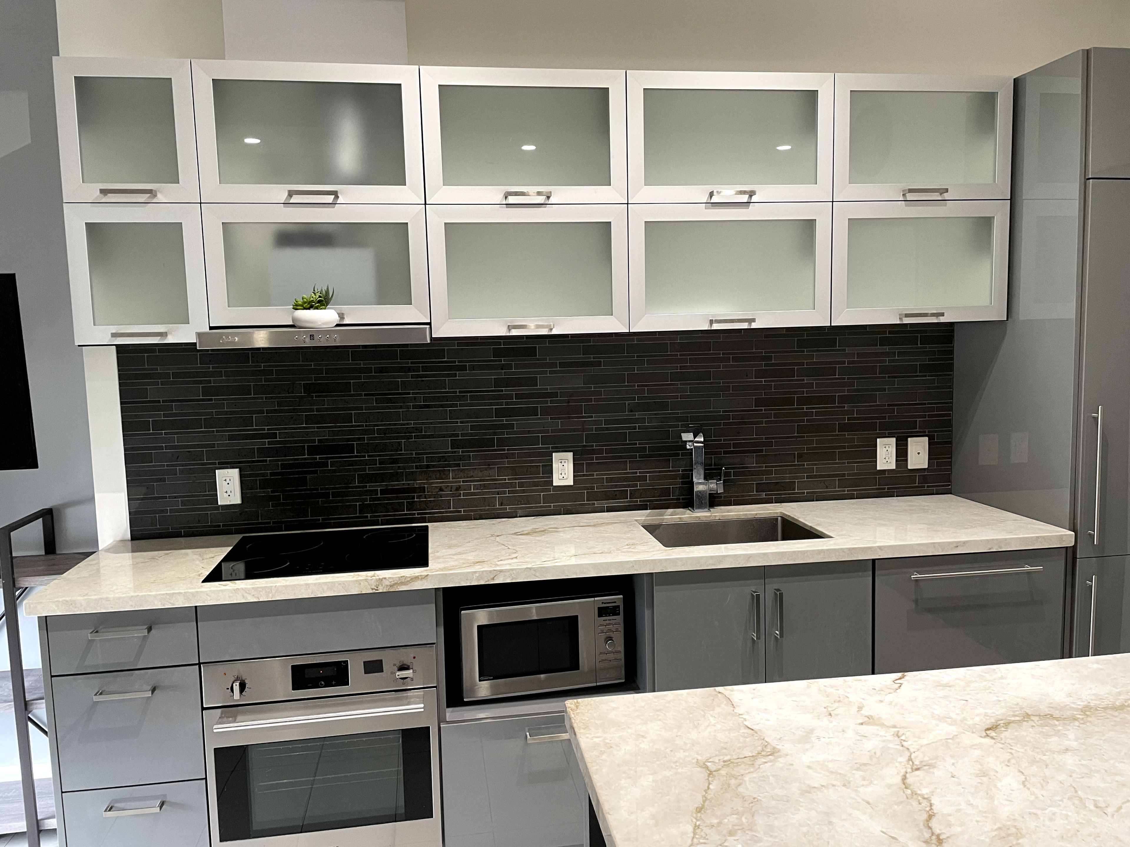 Luxury Downtown Markham Condominiums Built By The Remington Group. Semi-furnished - 1 Bedroom + 80 Sq.Ft. Large Balcony. Same Floor Parking & Locker Included. A Bright, Sun-Filled & South Facing Suite W/ 10' Ceiling, High-End Finishes. Open Concept Layout W/ Floor To Ceiling Windows. Quartz Kitchen W/ Built-In Stainless Steel Appliances & Electric Ceramic Cooktop Features A Good-Sized Kitchen Island.