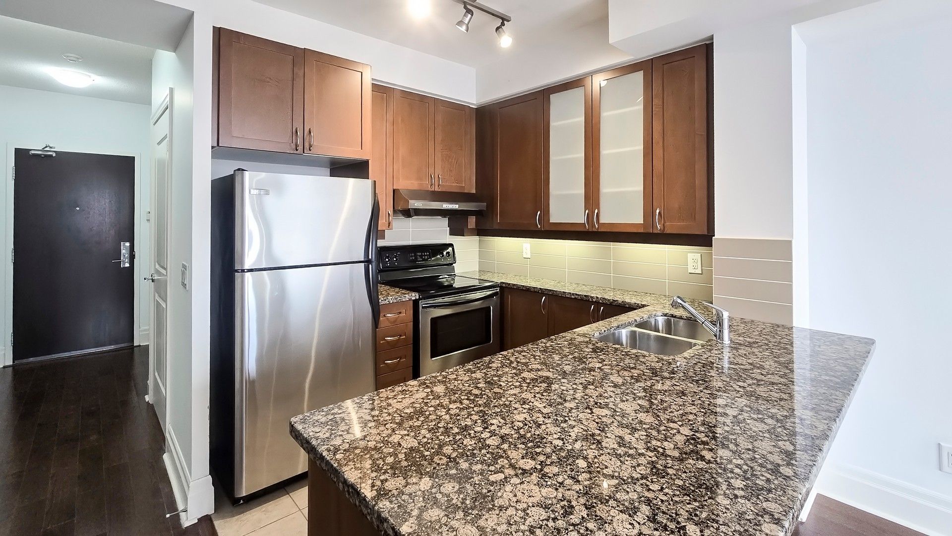 Available for lease in the heart of Downtown Markham, this bright, south-facing 1 bedroom plus den offers a spacious open layout filled with natural light. The den is versatile and can be used as a second bedroom, home office, or quiet retreat. The suite features two full bathrooms,9 ft ceilings, and a comfortable primary bedroom with a 4-piece ensuite and walk-in closet. The kitchen is finished with granite countertops and stainless steel appliances, and the unit has been freshly painted throughout. Steps to VIVA transit, the GO Train, Cineplex, 24/7 GoodLife Fitness, shops, restaurants, YMCA, and schools, with quick access to Hwy 407, this is a great opportunity to lease a well-located and comfortable home in a vibrant neighbourhood.
