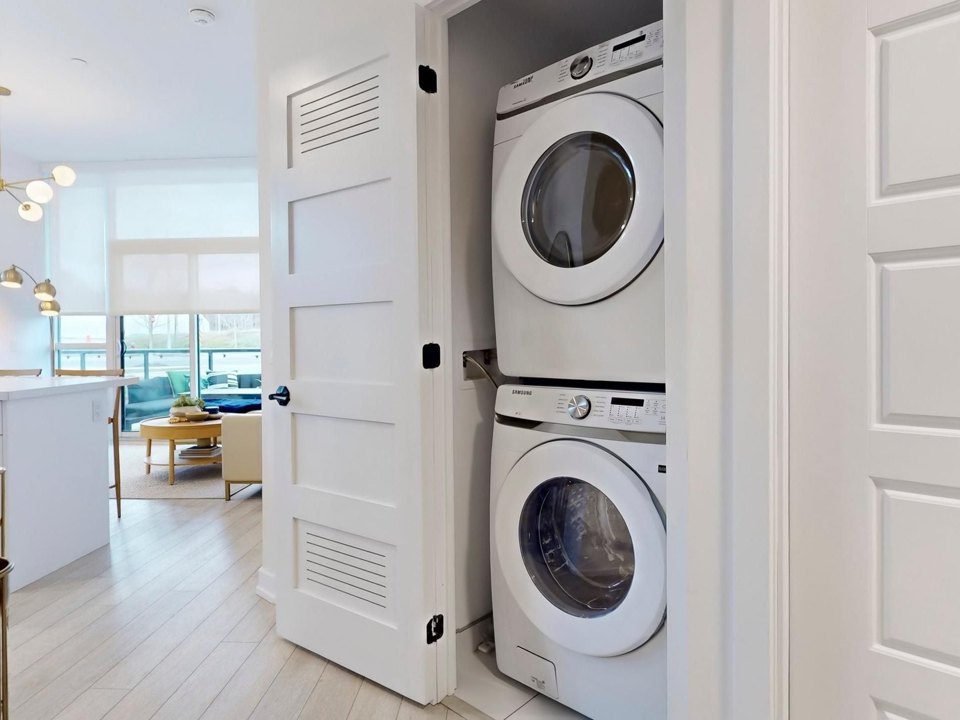 Welcome to Friday Harbour suite 151. Experience resort-style living, in the heart of beautiful Friday Harbour. This exceptional two-bedroom, two-bathroom condo has been completely updated from top to bottom. Perfectly positioned with one of the largest patios in all of Friday Harbour, overlooking a tranquil nature preserve, offering privacy and peaceful views all year-round. Expansive floor-to-ceiling windows bathe the home in natural light while framing a lush green backdrop that instantly creates a sense of calm the moment you step inside. Designed for effortless living, the open layout flows seamlessly to a spacious balcony-ideal for morning coffee, evening relaxation, or simply soaking in the serene surroundings. The primary suite serves as a private retreat, complete with a spa-inspired ensuite that blends comfort with sophistication. Each bedroom is thoughtfully placed to maximize both space and scenic views. As part of the Friday Harbour resort community, enjoy access to outstanding amenities including a year-round hot tub, outdr pool, and a wide range of activities for every season. A fully furnished option is available, making this a perfect turn-key opportunity for homeowners and investors alike. Whether you're dreaming of a peaceful getaway or a vibrant resort lifestyle, this condo offers the best of both worlds in an unforgettable setting.