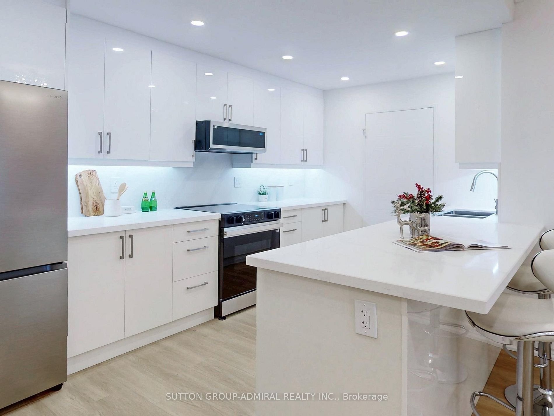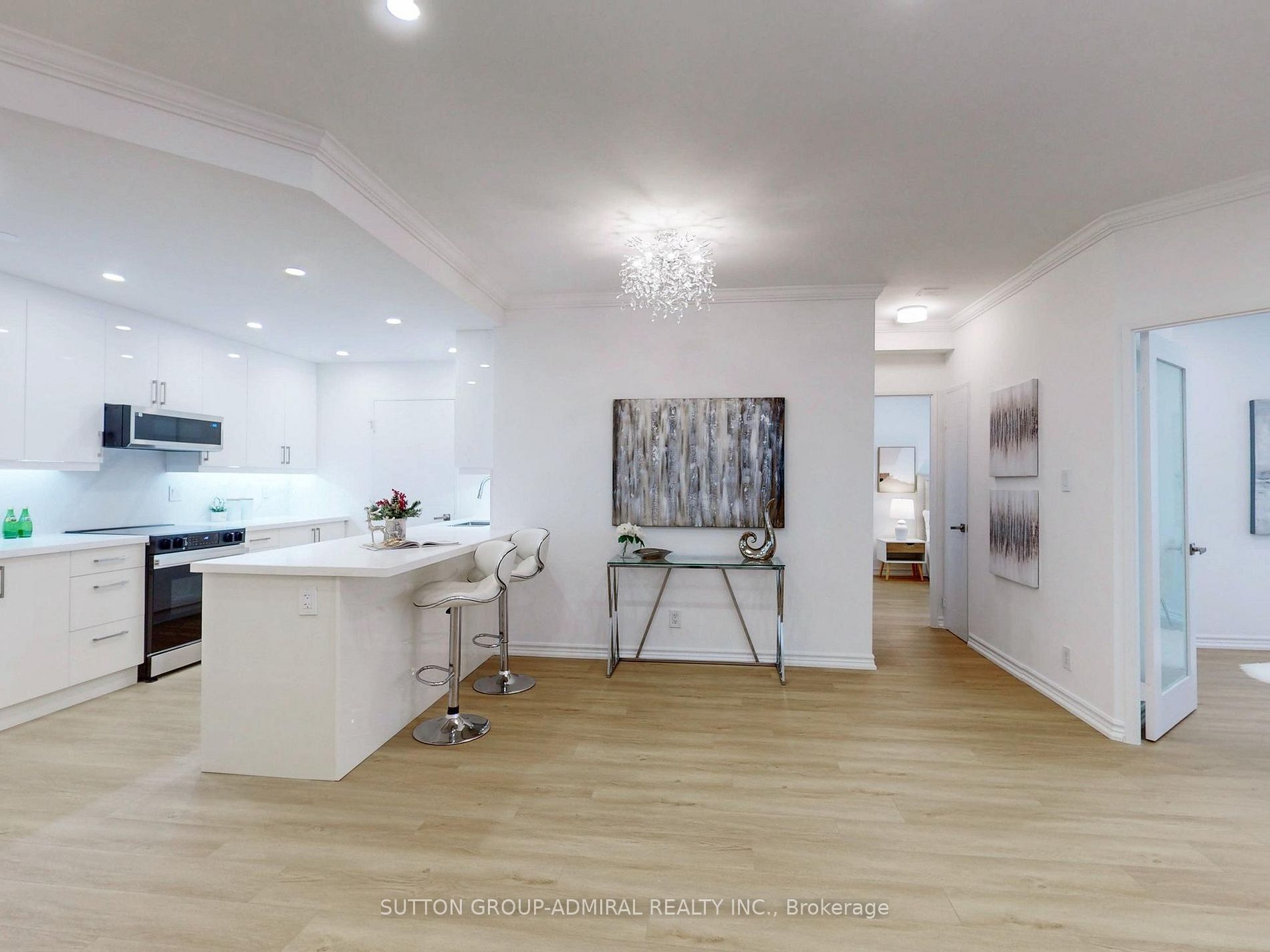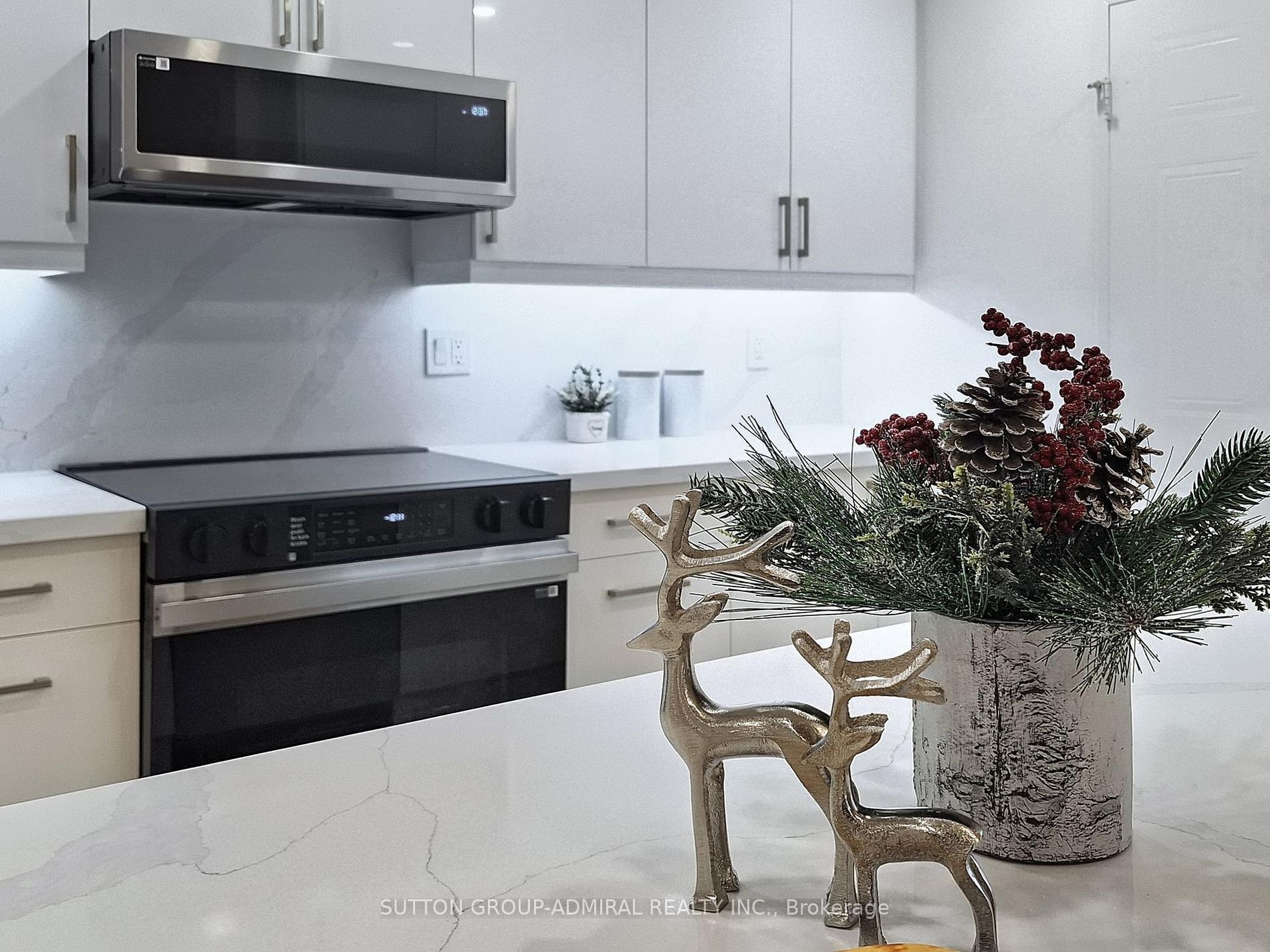 Welcome to a fully renovated, professionally designed 2-bedroom, 2-bathroom luxury suite spanning over 1,200 sq. ft. 9' ceilings, PENTHOUSE. Experience breathtaking panoramic views in the heart of Richmond Hill! Every inch of this unit has been upgraded with high-end custom finishes, including crown mouldings, smooth ceilings, pot lights throughout, and premium waterproof vinyl flooring.The stylish, modern custom kitchen features quartz countertops and backsplash, a breakfast island, ample storage, and brand-new, never-used stainless steel appliances (fridge, slide-instove, over-the-range microwave, dishwasher), plus a washer & dryer. Two bright bedrooms with a walk-out to a large balcony, custom closet organizers and two beautifully custom proffesionally renovated bathrooms. Enjoy a spacious open-concept living and dining area perfect for entertaining, with seamless access to your private balcony showcasing unobstructed panoramic views. Additional highlights include custom curtains, modern light fixtures, 1 owned parking spot, and 1 locker. Ideally located just steps from Yonge St., shops, restaurants, transit, and top-rated schools. This penthouse offers the perfect blend of luxury, comfort, style, and convenience. Move inand start living your dream lifestyle today!
