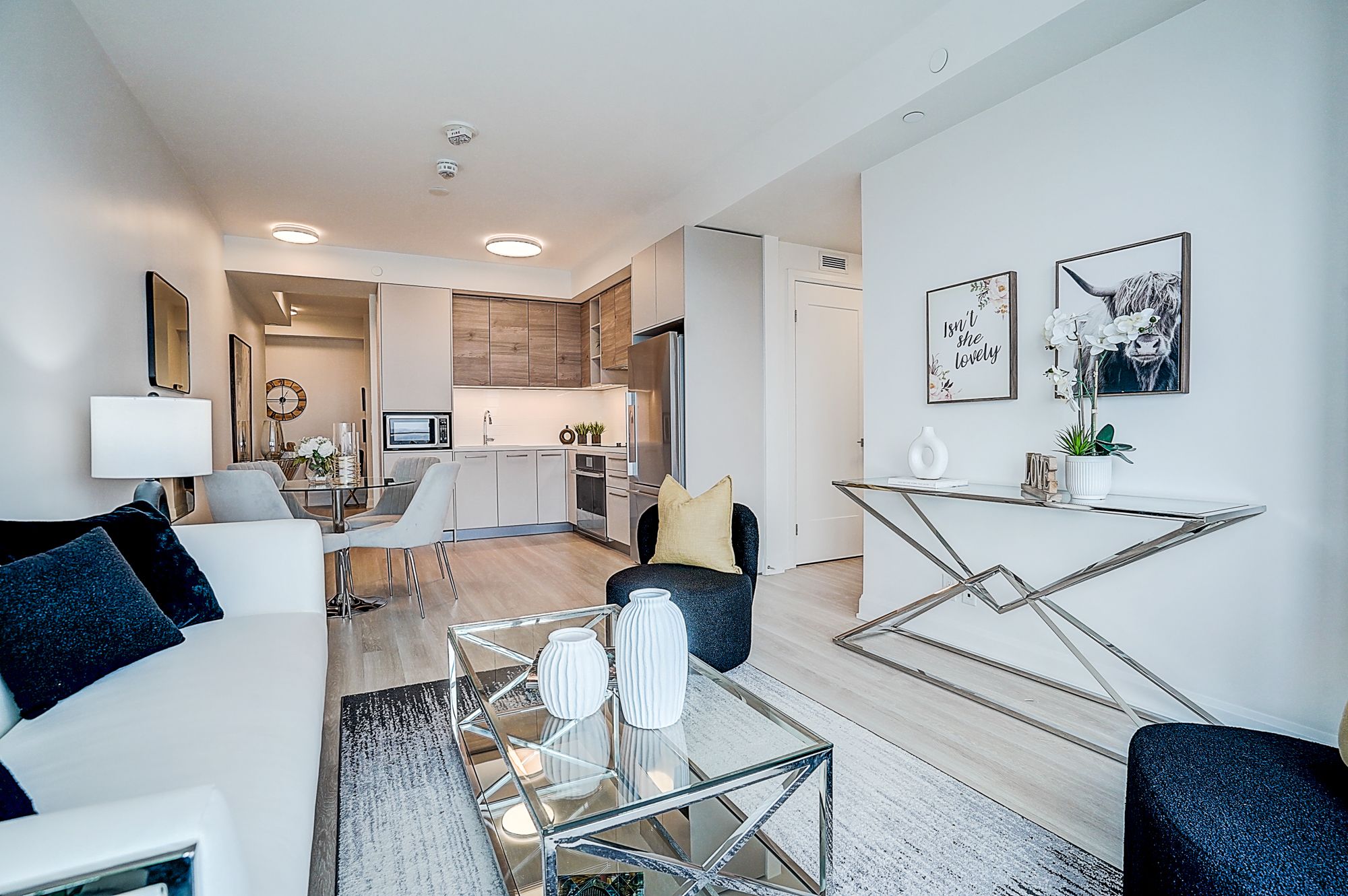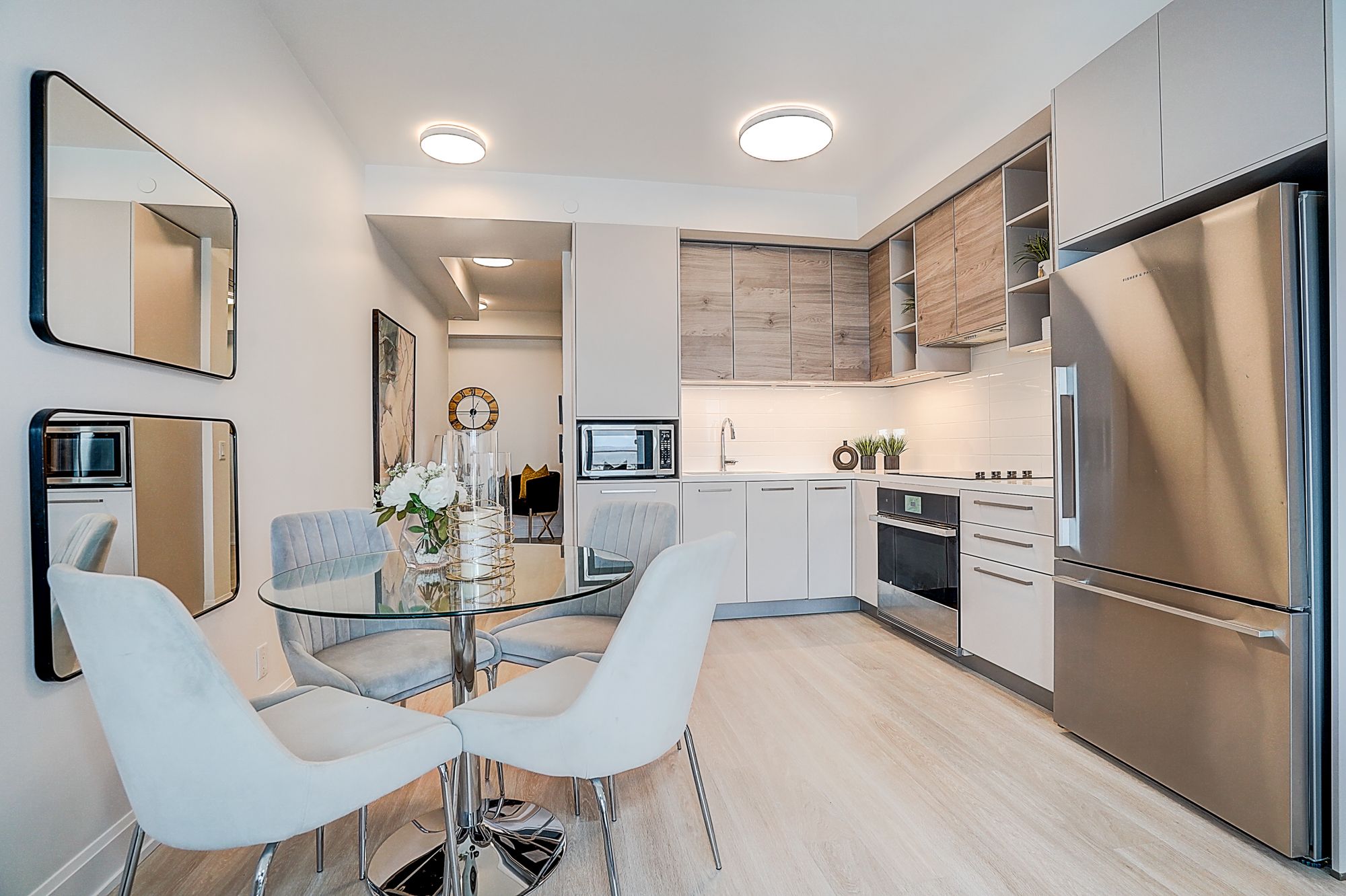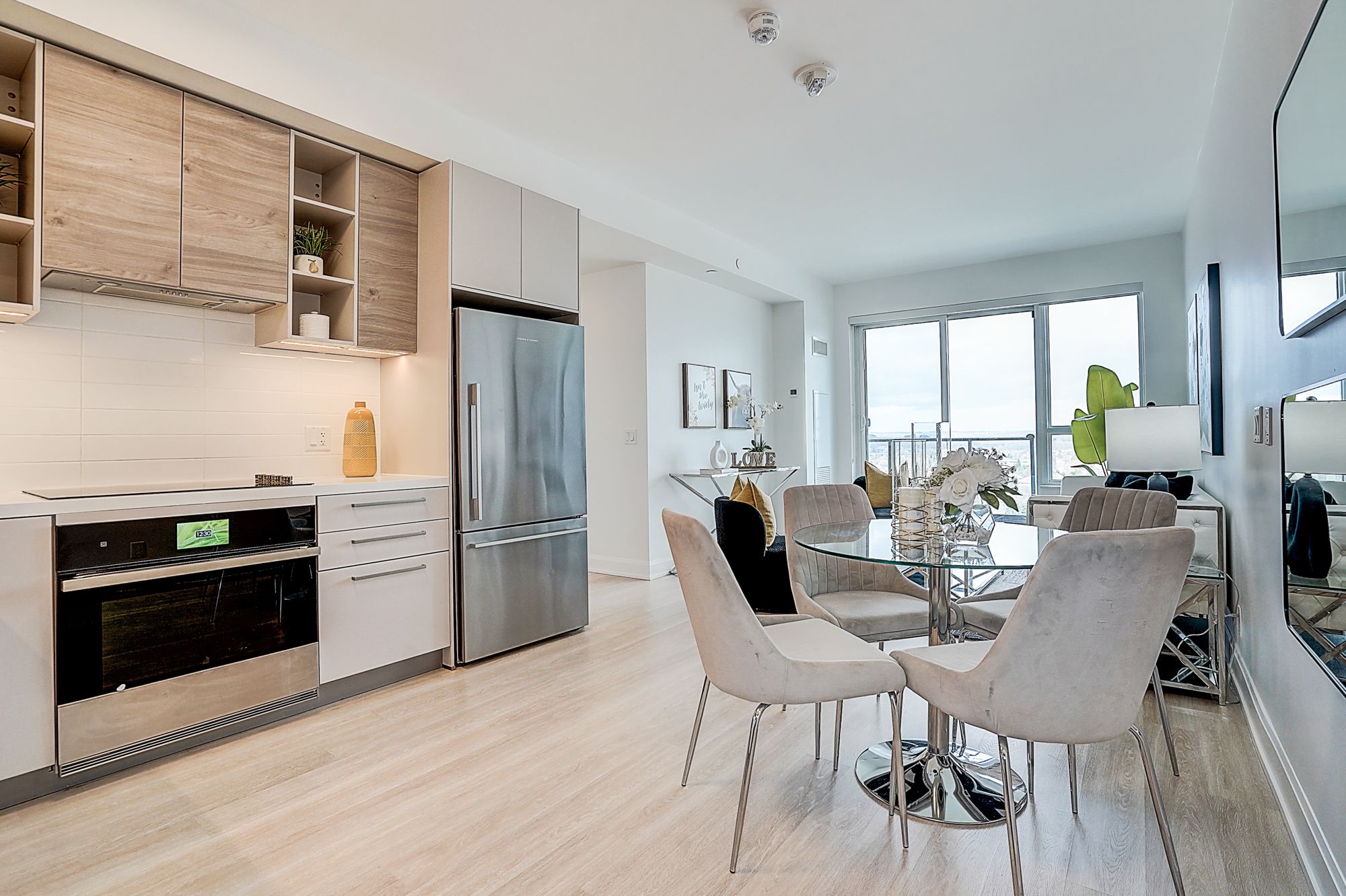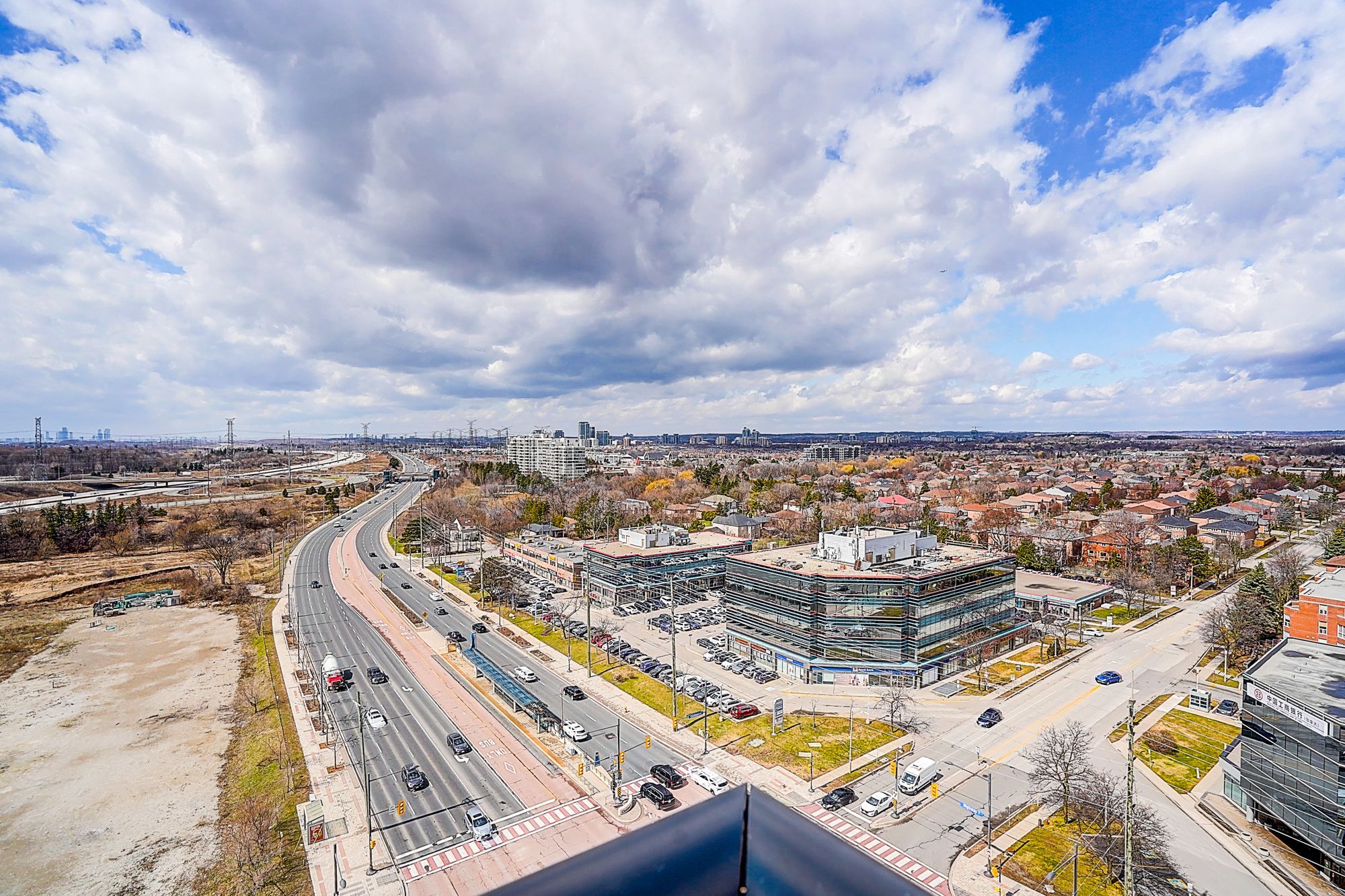 Step into refined urban living at this iconic condominium residence in the vibrant heart of Thornhill. This bright corner suite offers 882 sq ft of well-designed interior space, paired with an impressive 252 sq ft wrap-around balcony. Featuring soaring 9-foot ceilings and stunning panoramic skyline views, the unit blends comfort with contemporary elegance. The thoughtfully planned layout includes 2 spacious bedrooms and 2 full bathrooms. The modern open-concept kitchen is outfitted with quartz countertops, built-in appliances, and premium cabinetry, making it both stylish and functional. Enjoy exceptional convenience with VIVA Transit just steps from the building, along with easy access to Highways 407 and 404. Surrounded by a wide range of restaurants, banks, and shopping plazas, this location truly offers the best of city living. Includes 1 parking and 1 locker.