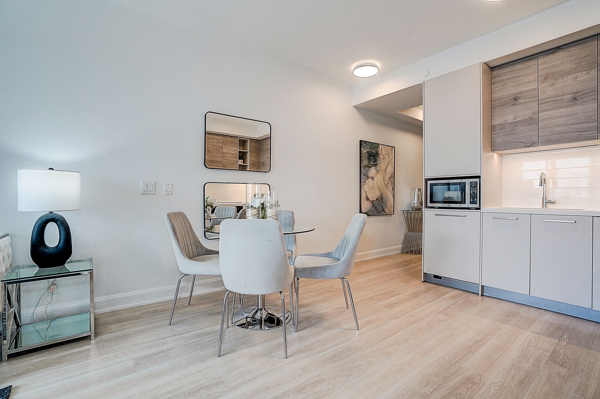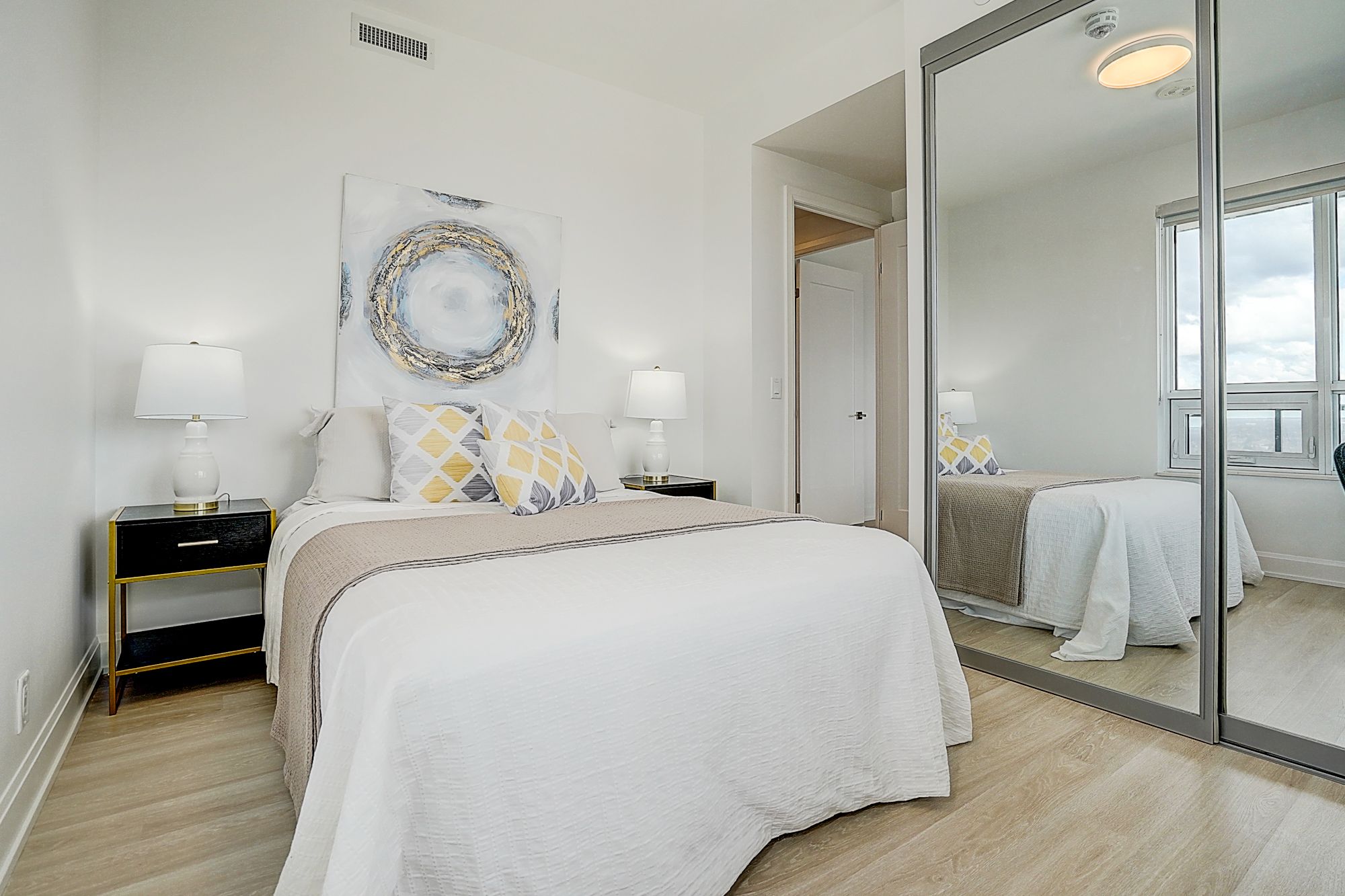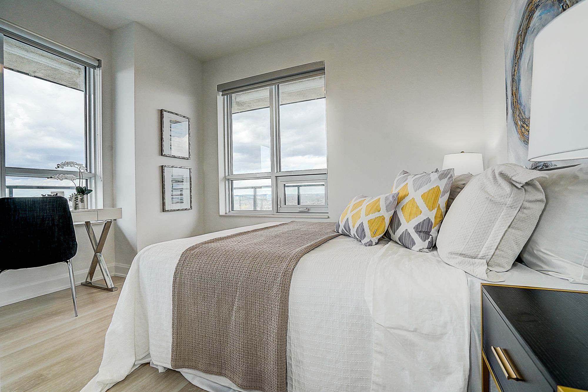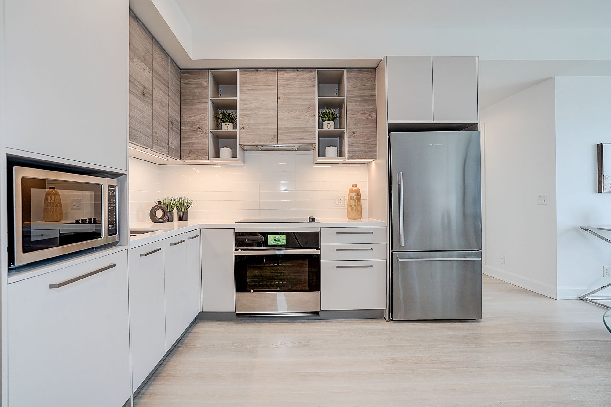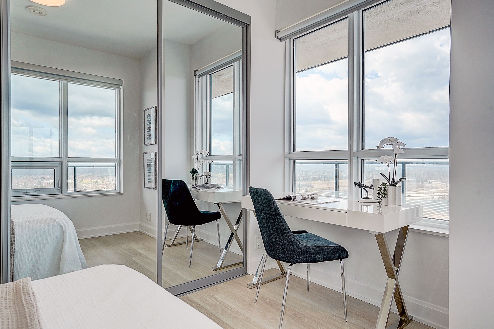 Step into refined urban living at this iconic condominium residence in the vibrant heart of Thornhill. This bright corner suite offers 882 sq ft of well-designed interior space, paired with an impressive 252 sq ft wrap-around balcony. Featuring soaring 9-foot ceilings and stunning panoramic skyline views, the unit blends comfort with contemporary elegance. The thoughtfully planned layout includes 2 spacious bedrooms and 2 full bathrooms. The modern open-concept kitchen is outfitted with quartz countertops, built-in appliances, and premium cabinetry, making it both stylish and functional. Enjoy exceptional convenience with VIVA Transit just steps from the building, along with easy access to Highways 407 and 404. Surrounded by a wide range of restaurants, banks, and shopping plazas, this location truly offers the best of city living. Includes 1 parking and 1 locker.