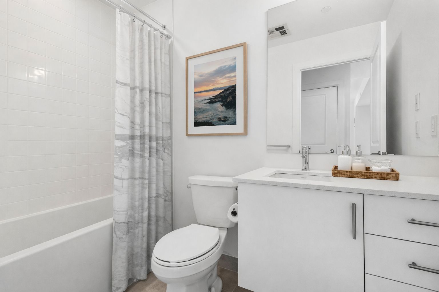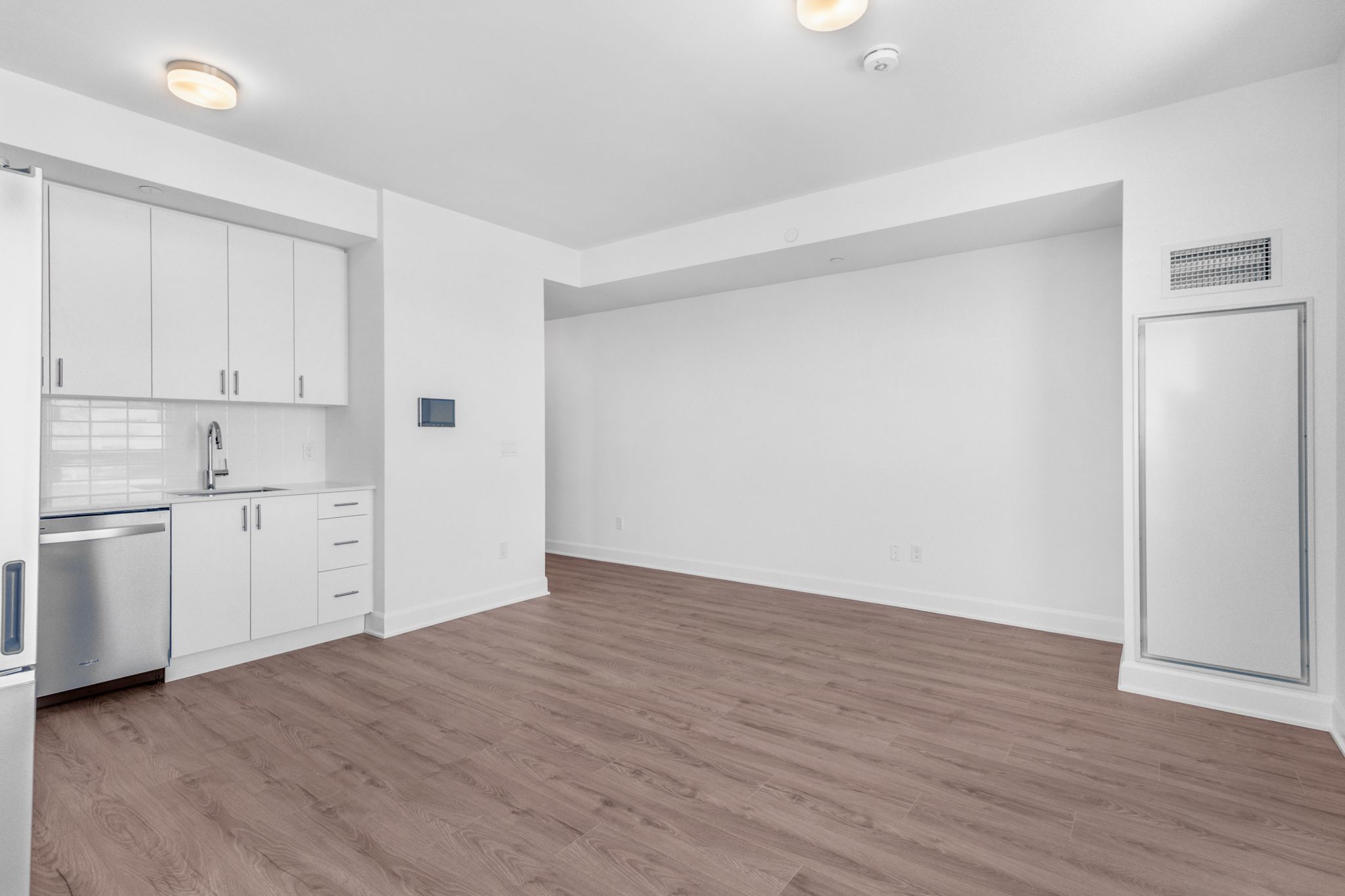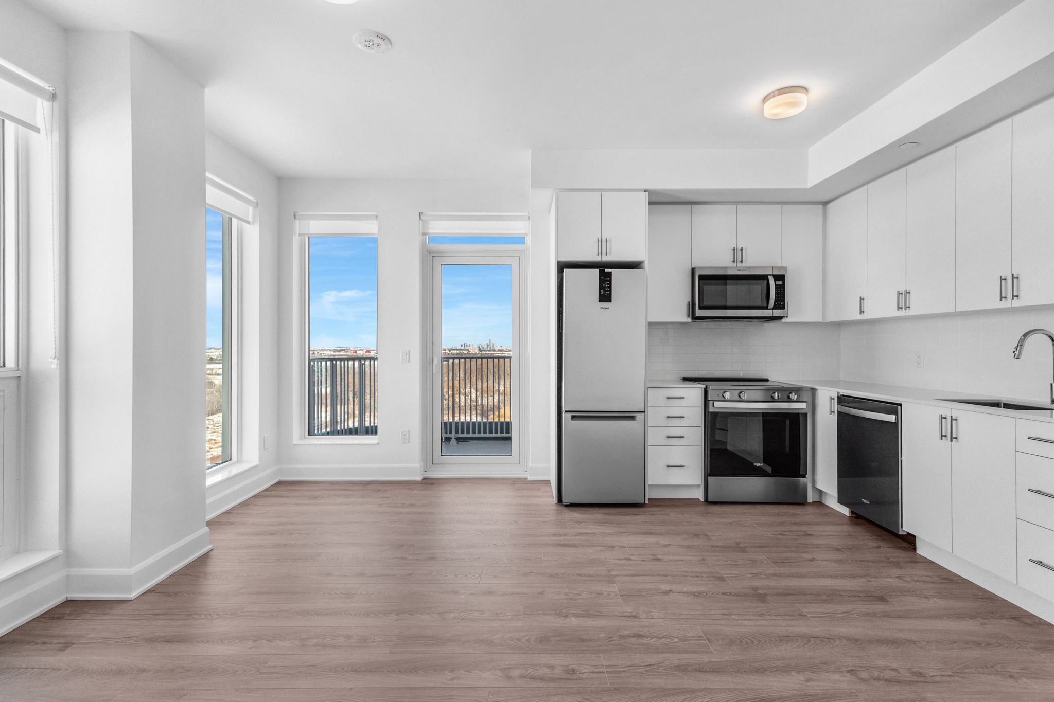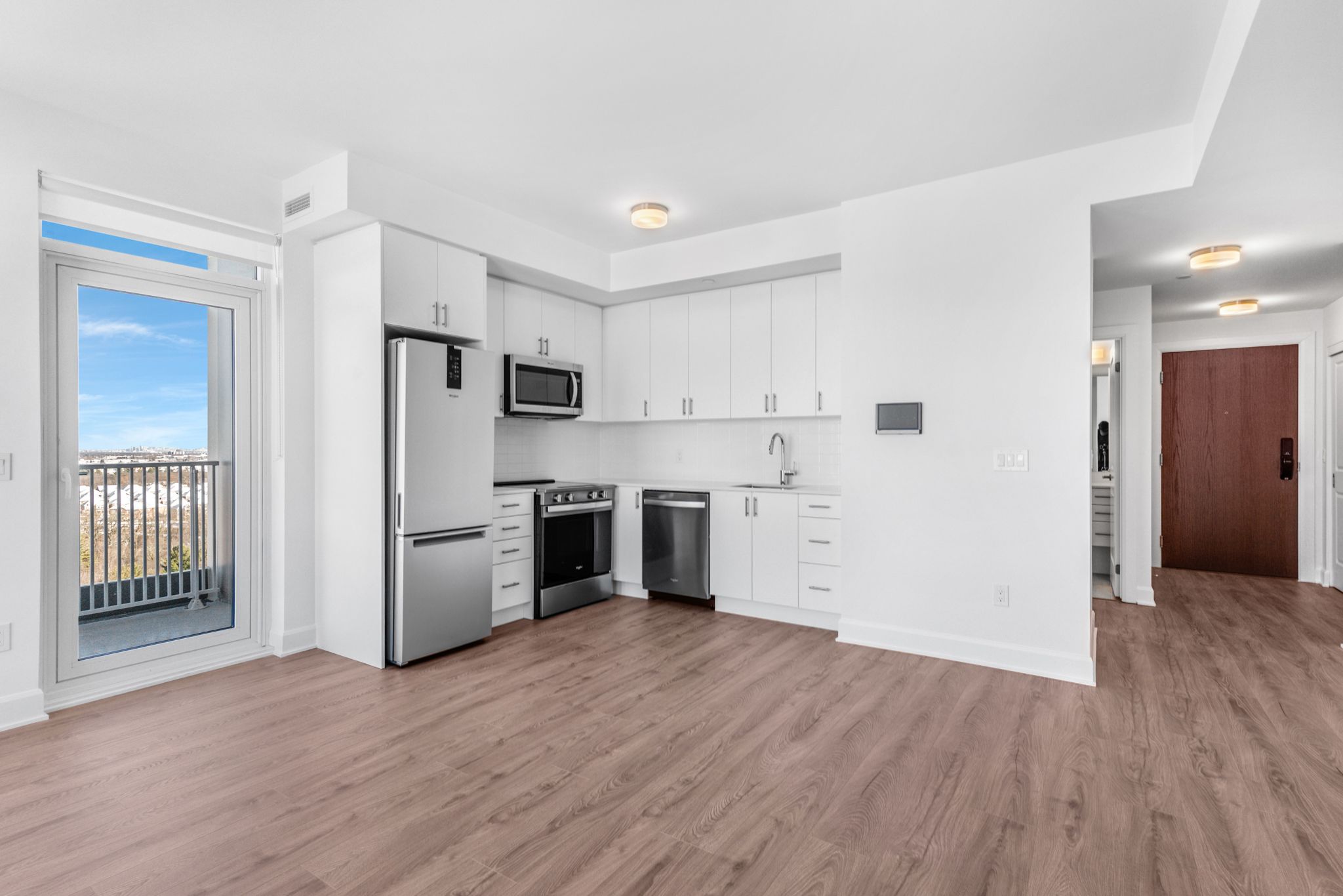 Welcome to The Walker, a bright and thoughtfully designed 1-bedroom + den suite offering 730 sq. ft. of modern living space. The open-concept kitchen, dining, and living areas create a comfortable layout ideal for both everyday living and entertaining. A spacious bedroom and versatile den provide flexible living options, perfect for a home office or guest space. Contemporary finishes, great natural light, and access to premium building amenities complete this inviting home, conveniently located near shopping, transit, and major highways.