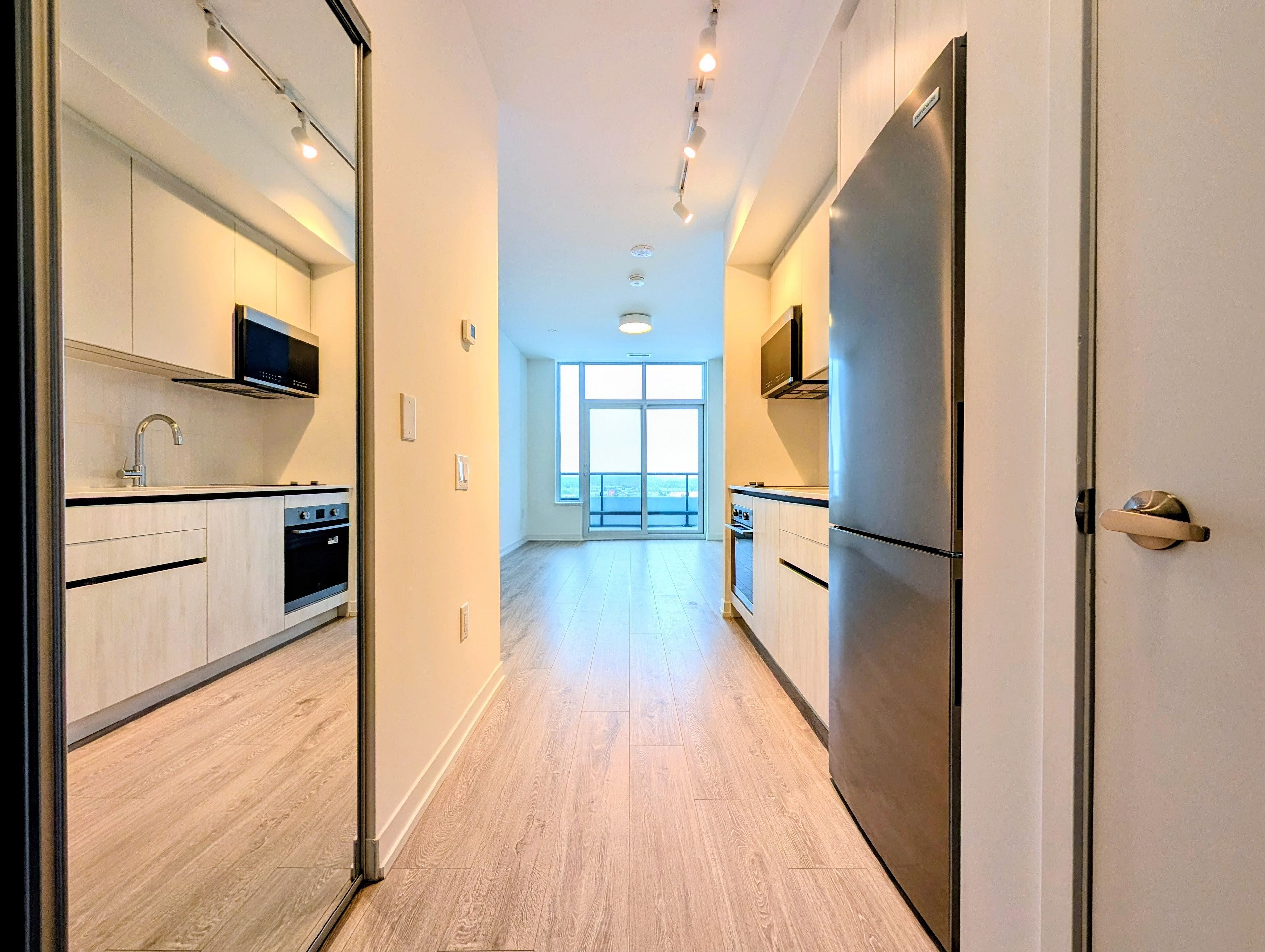 Welcome to this brand-new 1-bedroom suite at The Kith Condos, a signature residence by award-winning developer The Daniels Corporation, BILD's 2025 Home Builder of the Year, ideally located in the vibrant Erin Mills community. Thoughtfully designed with a large and efficient open-concept layout, this modern home features 9-foot ceilings, stylish finishes, and floor-to-ceiling windows that fill the space with natural light while offering serene open skyline views. The contemporary kitchen is beautifully appointed with quartz countertops, sleek cabinetry, and stainless steel appliances, seamlessly flowing into the spacious living and dining area-perfect for both everyday living and entertaining. Step out onto the oversized private balcony, an ideal extension of your living space for relaxing or hosting guests. The generously sized primary bedroom offers ample closet space, while in-suite laundry adds everyday convenience. Residents enjoy an impressive collection of resort-style amenities, including a fully equipped fitness centre, gymnasium for basketball or pickleball, walking track, co-working and meeting spaces, theatre room, party lounges, pet wash, outdoor courtyard, and an expansive terrace with BBQs and lounge areas, all complemented by a concierge-attended lobby. Location is truly unmatched-steps to Credit Valley Hospital and LifeLabs, directly across from Erin Mills Town Centre, and within walking distance to major retailers such as Loblaws and Home Sense. Commuting is effortless with quick access to Highway 403, Erin Mills Transitway, and nearby Streetsville and Clarkson GO Stations. Surrounded by parks, trails, and top-rated schools, including John Fraser Secondary School and the University of Toronto Mississauga, this exceptional residence offers the perfect balance of modern design, premium amenities, and unbeatable convenience-an outstanding opportunity to enjoy contemporary condo living in one of Mississauga's most sought-after locations.