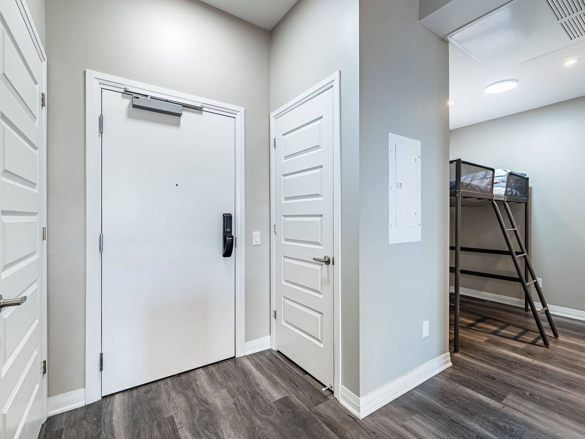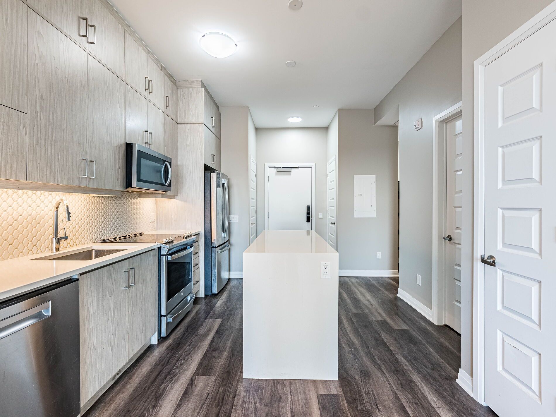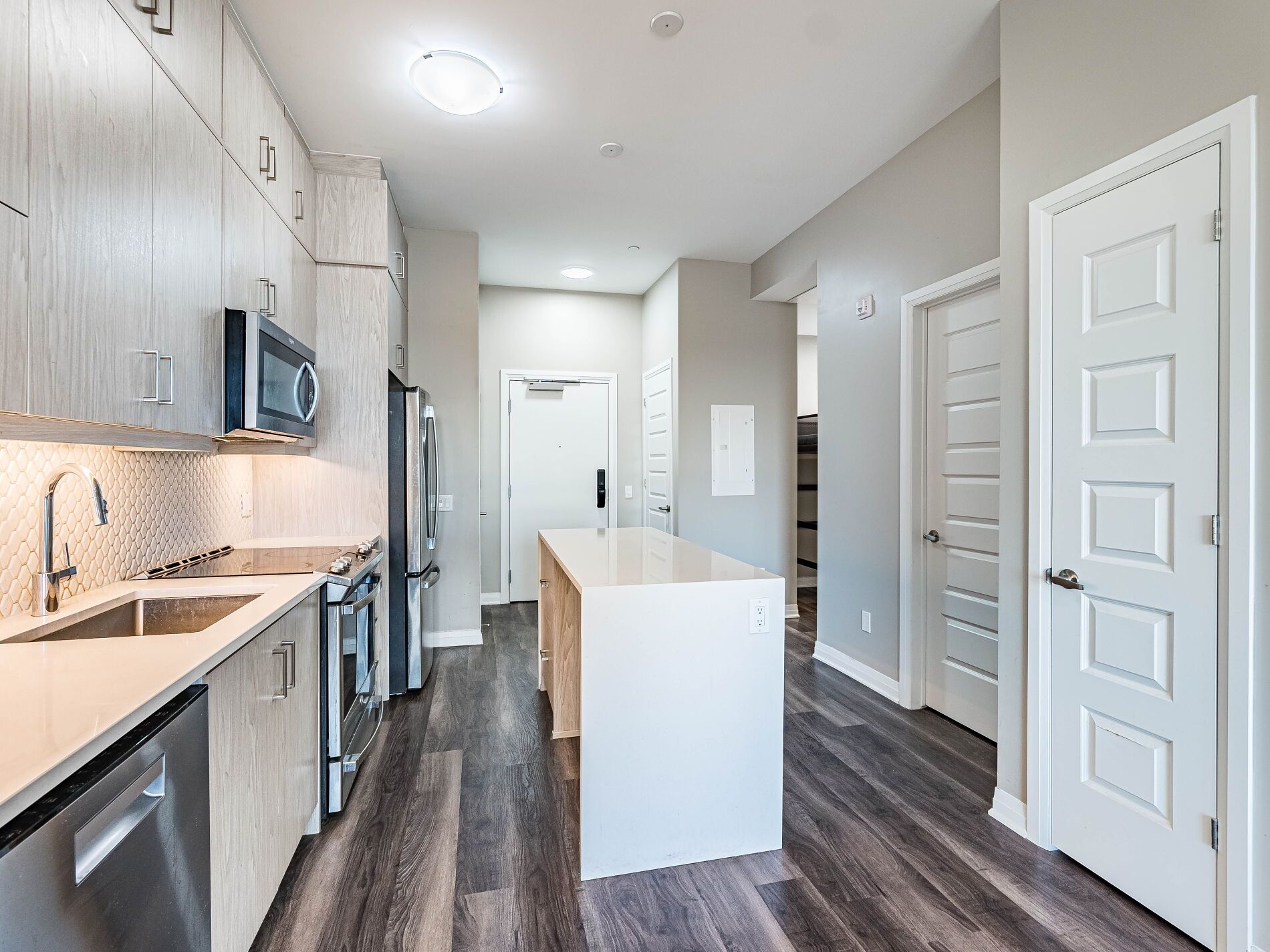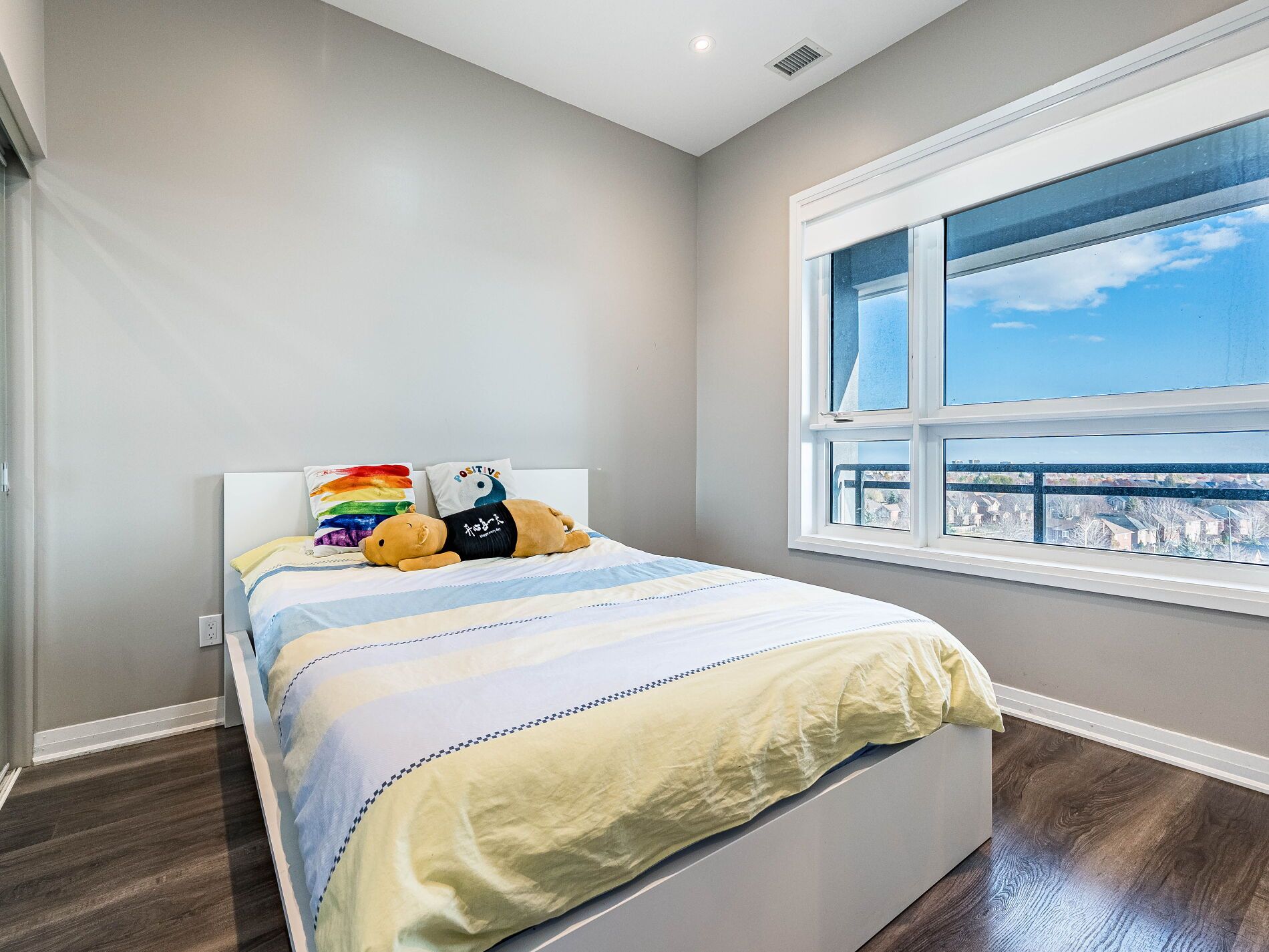 Welcome to 5 North! This Lovely Mattamy built Condo comes with rare 2 Parking spots, one underground, along with your 2 motorcycle parking spots, and the second on the main level outside the building, plus 1 Locker. A Fantastic 1+1 Mattamy built Home, 676 sqft suite area plus (37 Sqft) Balcony. This Spectacular State-Of-The-Art Condo Penthouse has many Amazing and Smart Features You Are Going To Love! High 10' Ceilings, Bright Open Concept Living Space with Wide Plank Vinyl Floors, Extra Tall & Modern cabinets in the Kitchen, Breakfast Bar/Centre Island, and SS Appliances. The main bedroom has a Spacious Closet and ensuite 3 pc WR with a glass shower door. A decent-sized den may be used as a Bedroom. Facing south for a full Ontario Lake view! The Smart Home Integration with Wall-Mounted Touch Screen Controls Heating & Cooling, Smoke Alarm System, Lighting, and More. The Entry Door also includes a Smart Suite Pad for Keyless Entry and Fingerprint Technology. Lovely Condo comes with Easy Access To All Major Highways, shopping centers, Schools, trails, Trails And The Hospital! Don't Miss This Rare Gem!