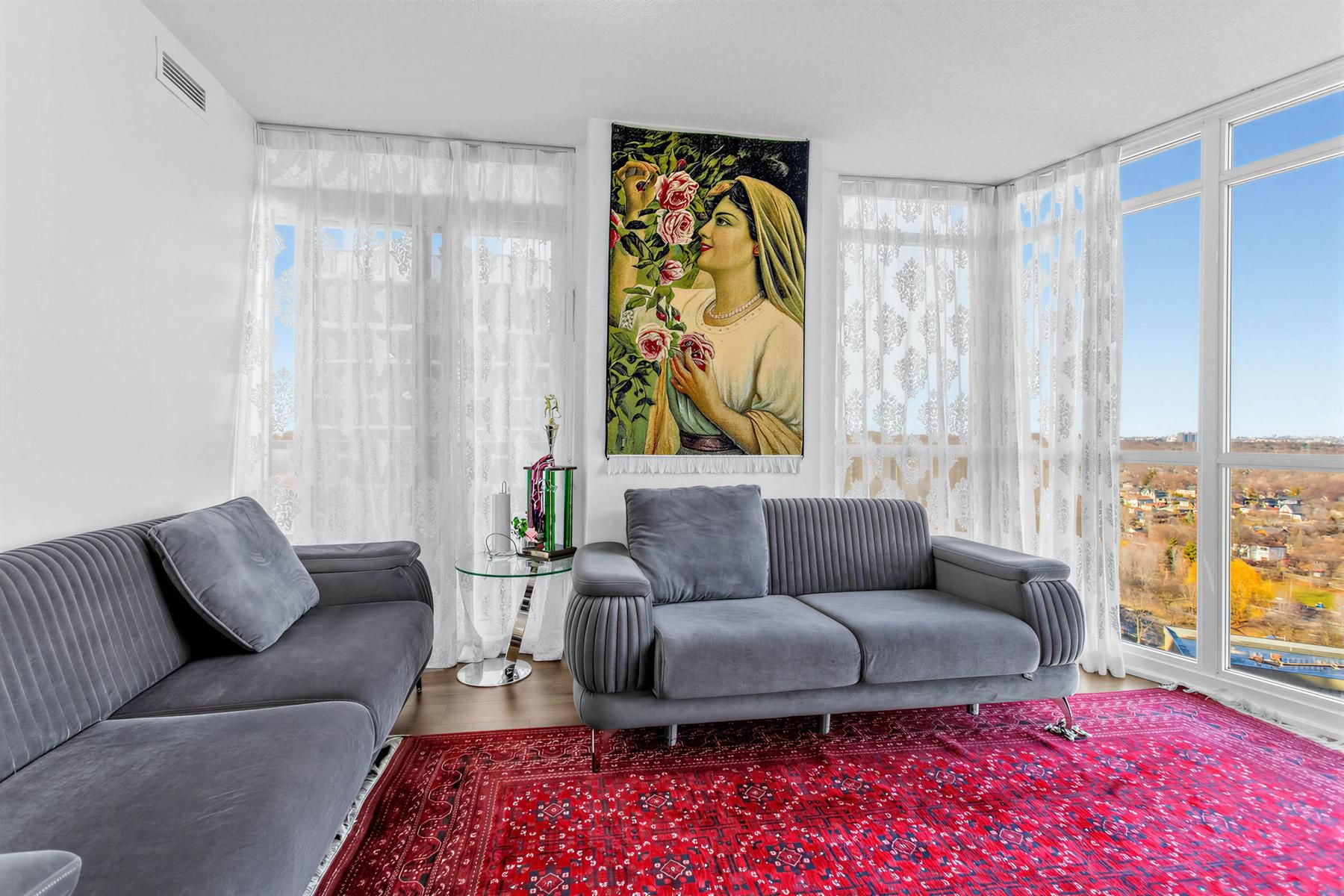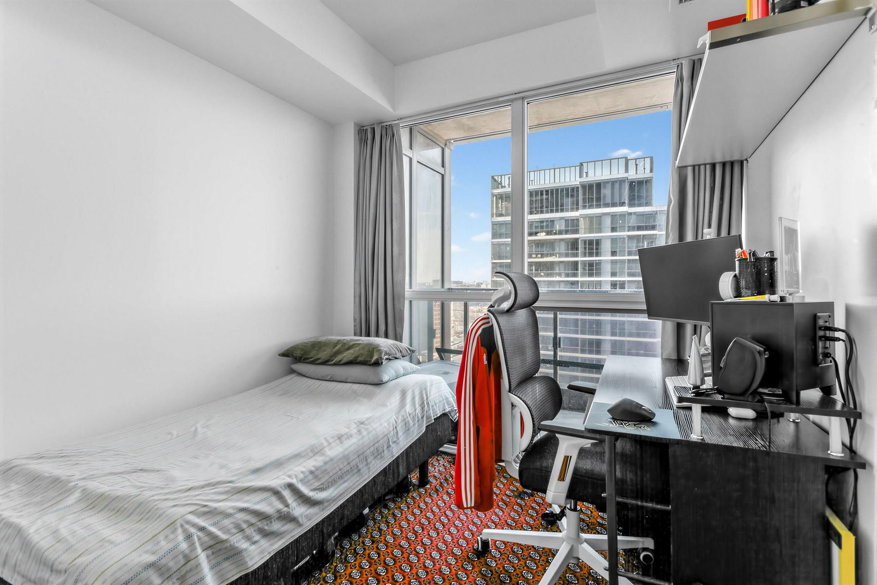 Welcome to The Triumph at Valhalla-where comfort meets convenience in a prime Etobicoke neighbourhood. This bright and spacious east-facing 2 bedroom unit offers abundant natural light and unobstructed views, making it ideal for first-time buyers, down-sizers, or investors. The large den features large window and door, offering added privacy. The stylish kitchen features modern cabinetry, stainless steel appliances, and granite countertops, complemented by laminate flooring throughout the living/dining area and bedroom. Enjoy unbeatable accessibility to downtown Toronto, Highways 427/401/400, Gardiner Expressway, TTC transit, Pearson Airport, Sherway Gardens, restaurants, corporate offices, and nearby parks. Residents enjoy exceptional amenities including an indoor pool, whirlpool, sauna, fully equipped gym, and party room. A beautiful, move-in-ready condo you won't want to miss !
