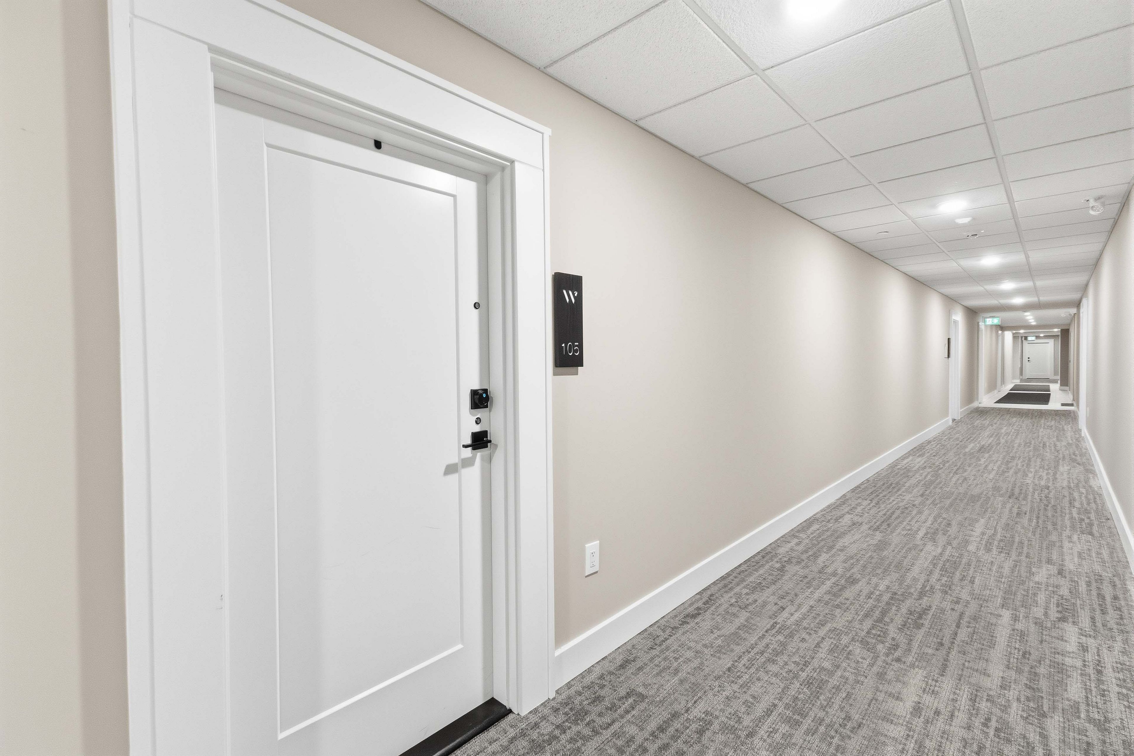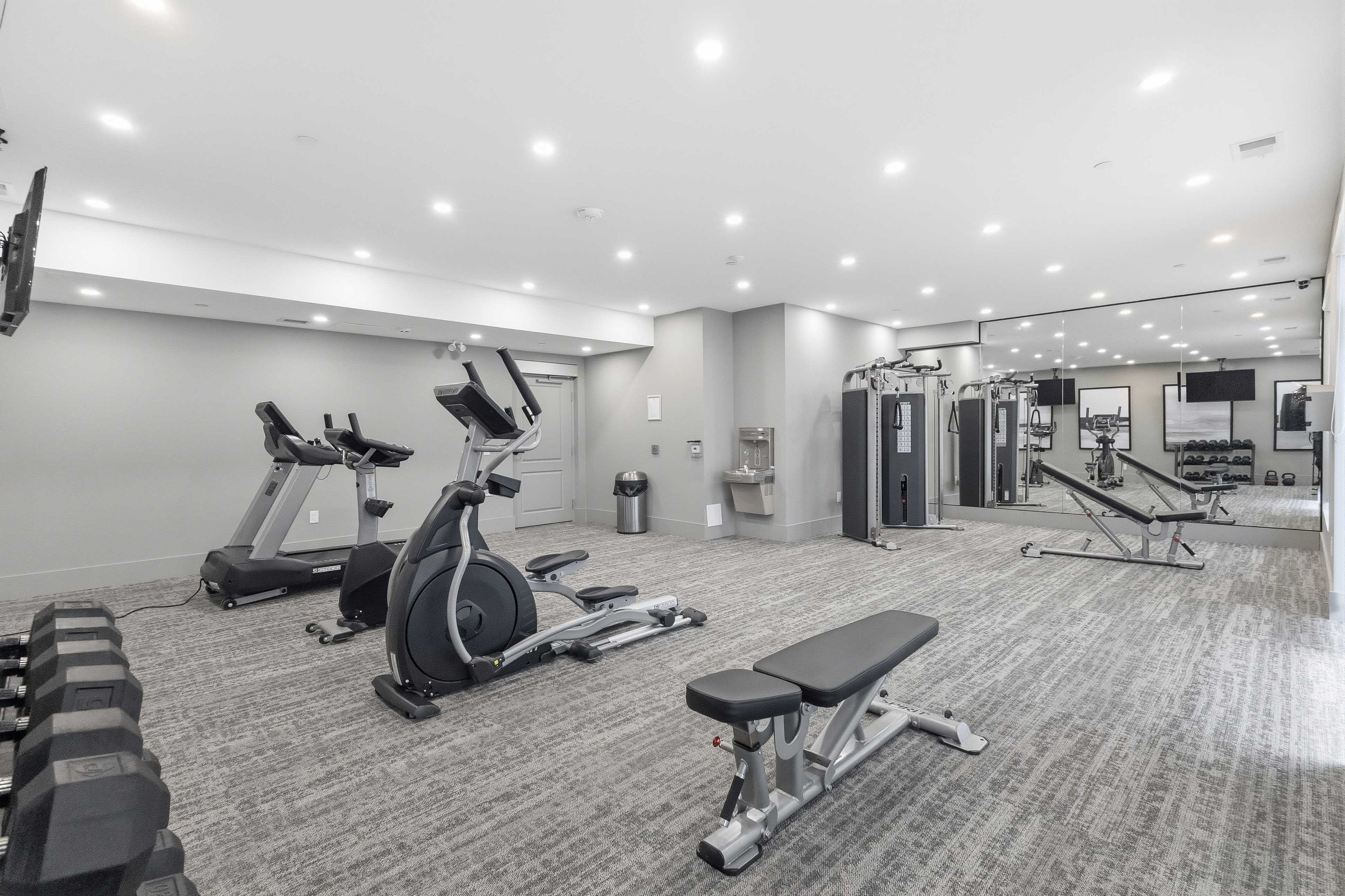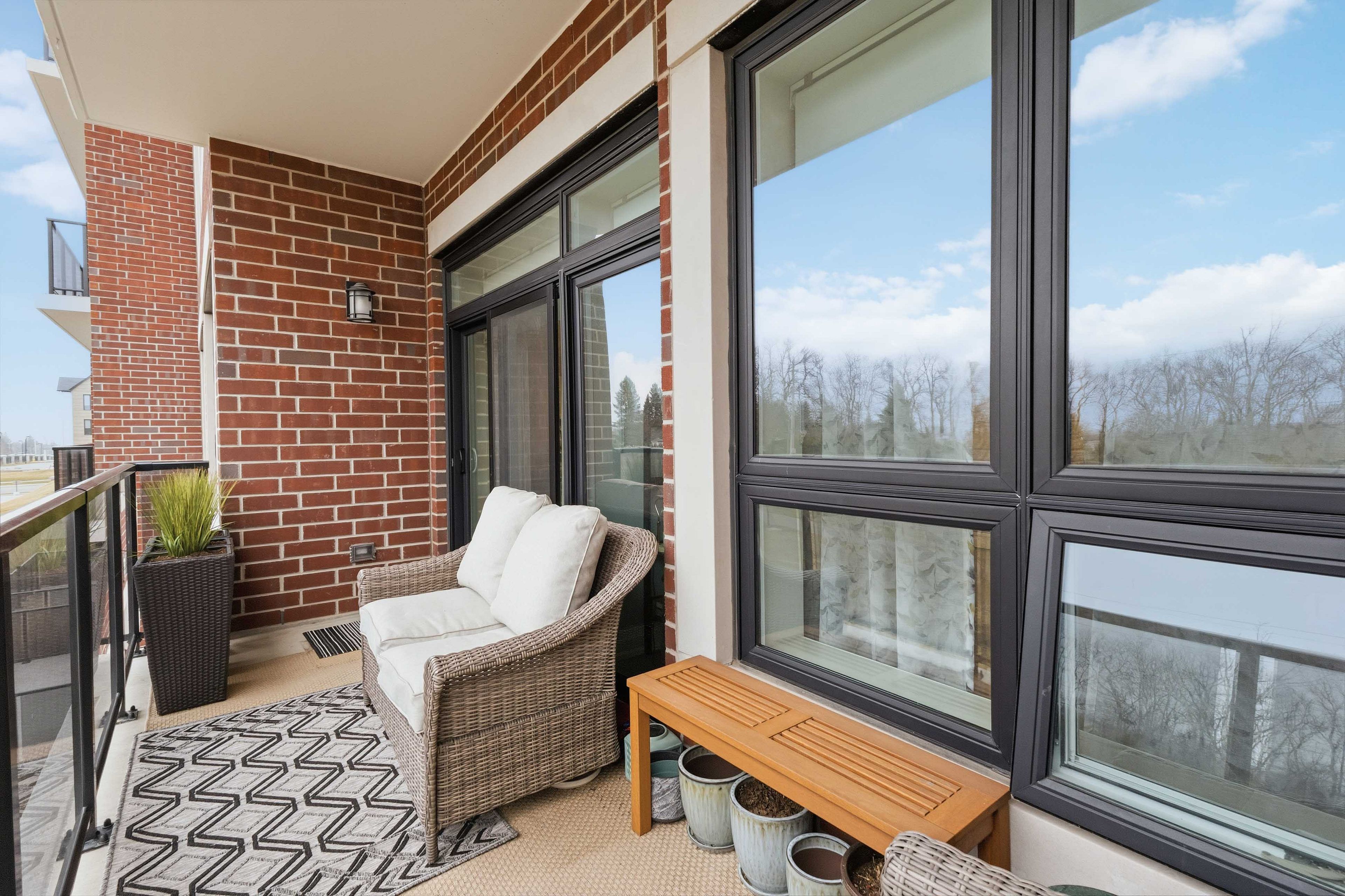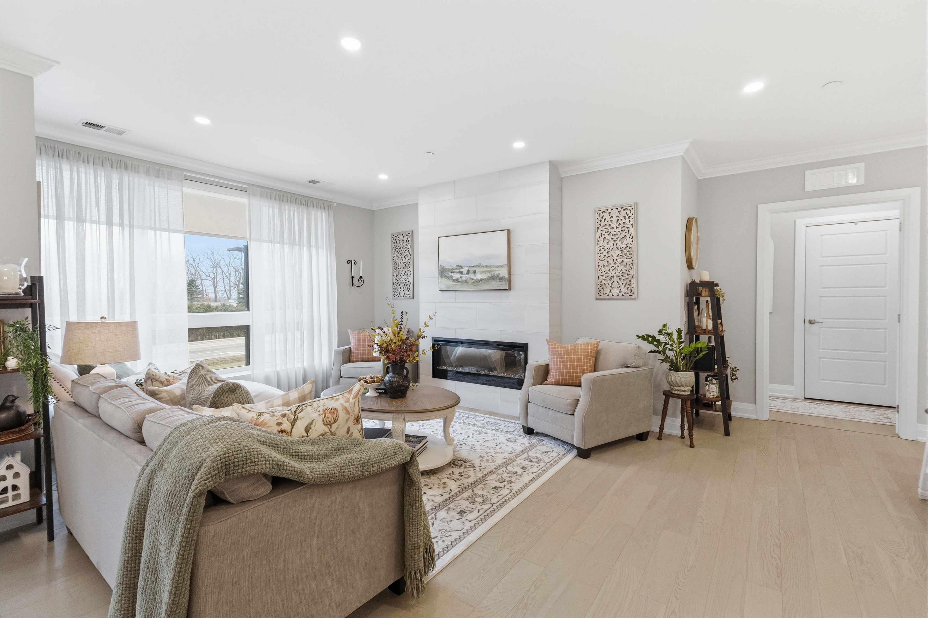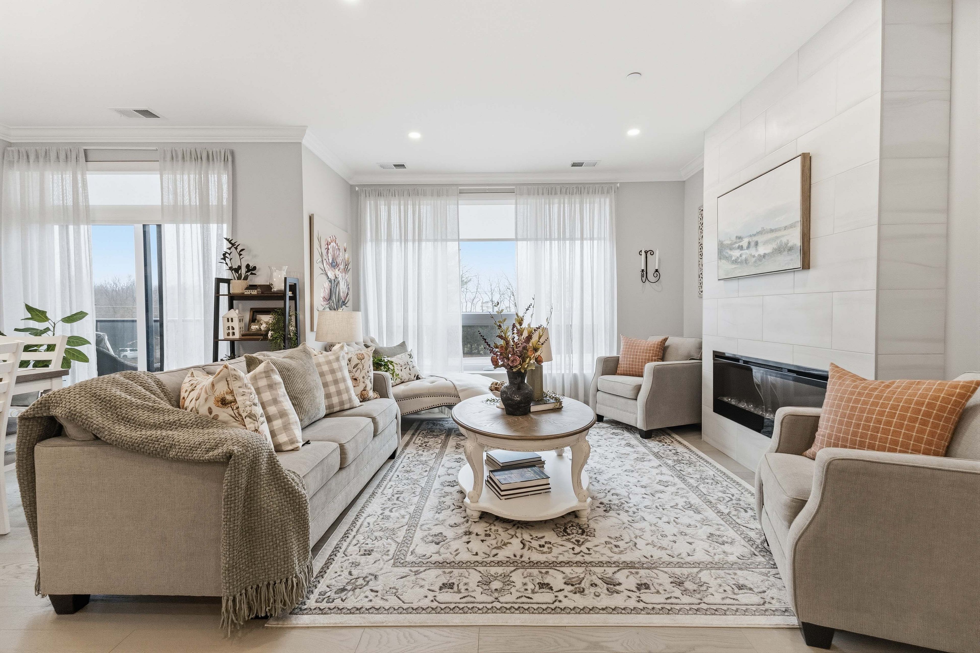 Step into this gorgeous West London, thoughtfully finished 2 bedroom suite, where modern comfort meets timeless elegance. Recently built by renowned Tricar, every detail has been carefully curated by the owner and builder, creating a warm, inviting home. The open-concept layout features engineered hardwood and porcelain tile throughout, accented by crown molding, flat ceilings, and upgraded light fixtures. Large windows fill the space with natural light, enhancing the cozy atmosphere. The living room is a welcoming retreat, centered around a 50" built-in electric fireplace with custom surround, perfect for relaxing or entertaining. Enjoy walk-out access to a private outdoor space with peaceful views of surrounding nature and forested areas, ideal for morning coffee, quiet evenings, or hosting friends. The kitchen is a dream, with custom cabinetry, soft-close drawers, under-cabinet lighting, quartz countertops, a stylish backsplash, and stainless steel appliances. The bathrooms are beautifully finished with custom vanities, quartz countertops, designer faucets, frameless mirrors, and porcelain tile. The ensuite bathroom features a sleek walk-in shower and in-floor heating, while the second bathroom offers a full tub. Comfort is effortless with centralized boiler heating, individual air conditioning, and in-suite laundry with full-size washer and dryer. Set in a boutique four-storey building in desirable West London, amenities include a billiards lounge, wet bar, fitness center, media room, private guest suite, and multi-use sports courts. This suite comes with one owned underground parking space (option to purchase a second) and the balance of the new home warranty is transferable. Condo fees include heating, water, building insurance, common areas, and amenities, making ownership simple. Great opportunity to own a move-in ready, exquisitely finished home with the sold out 2B-5 floor plan, best in the building, located in West London's most desirable communities.