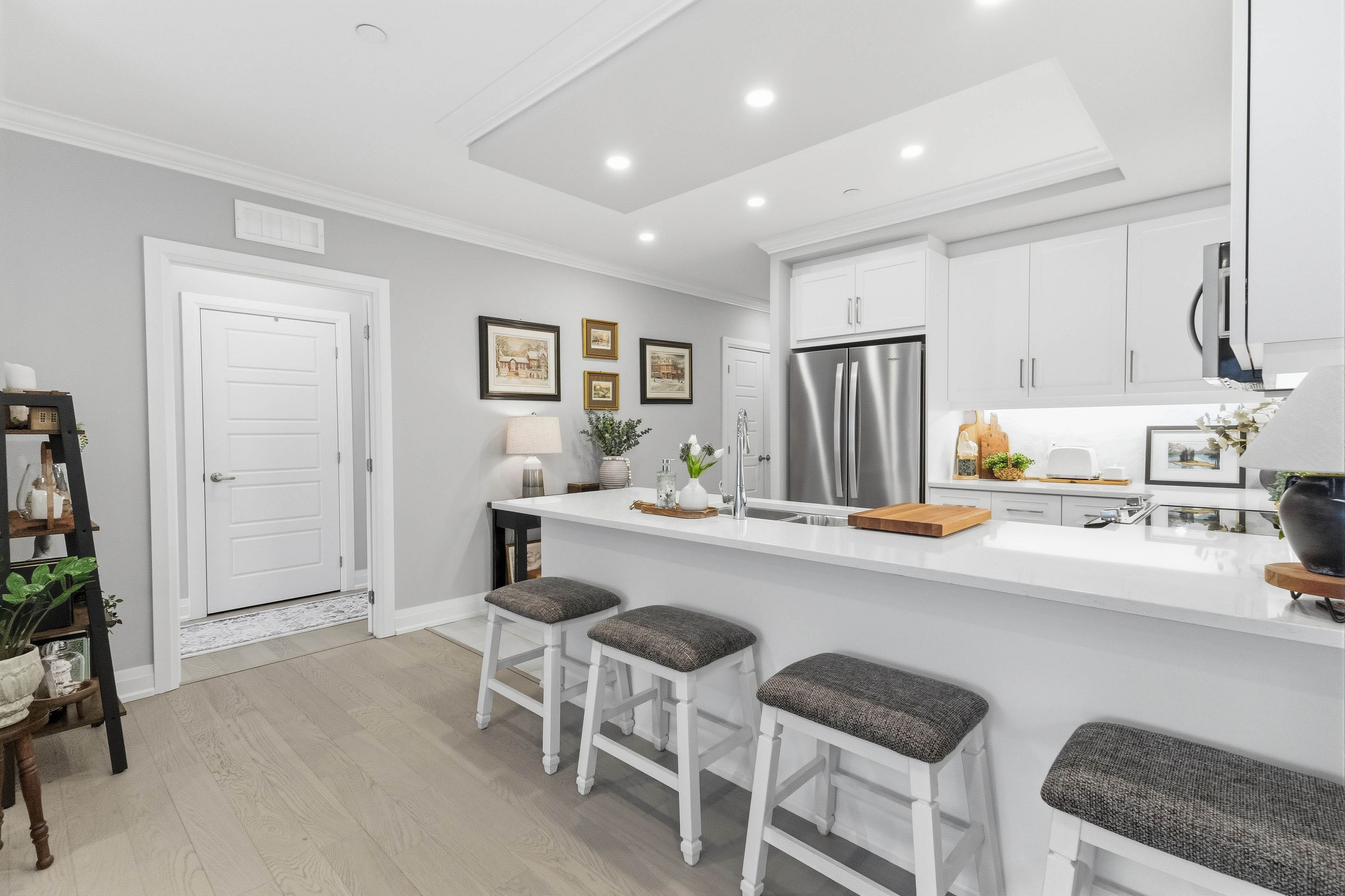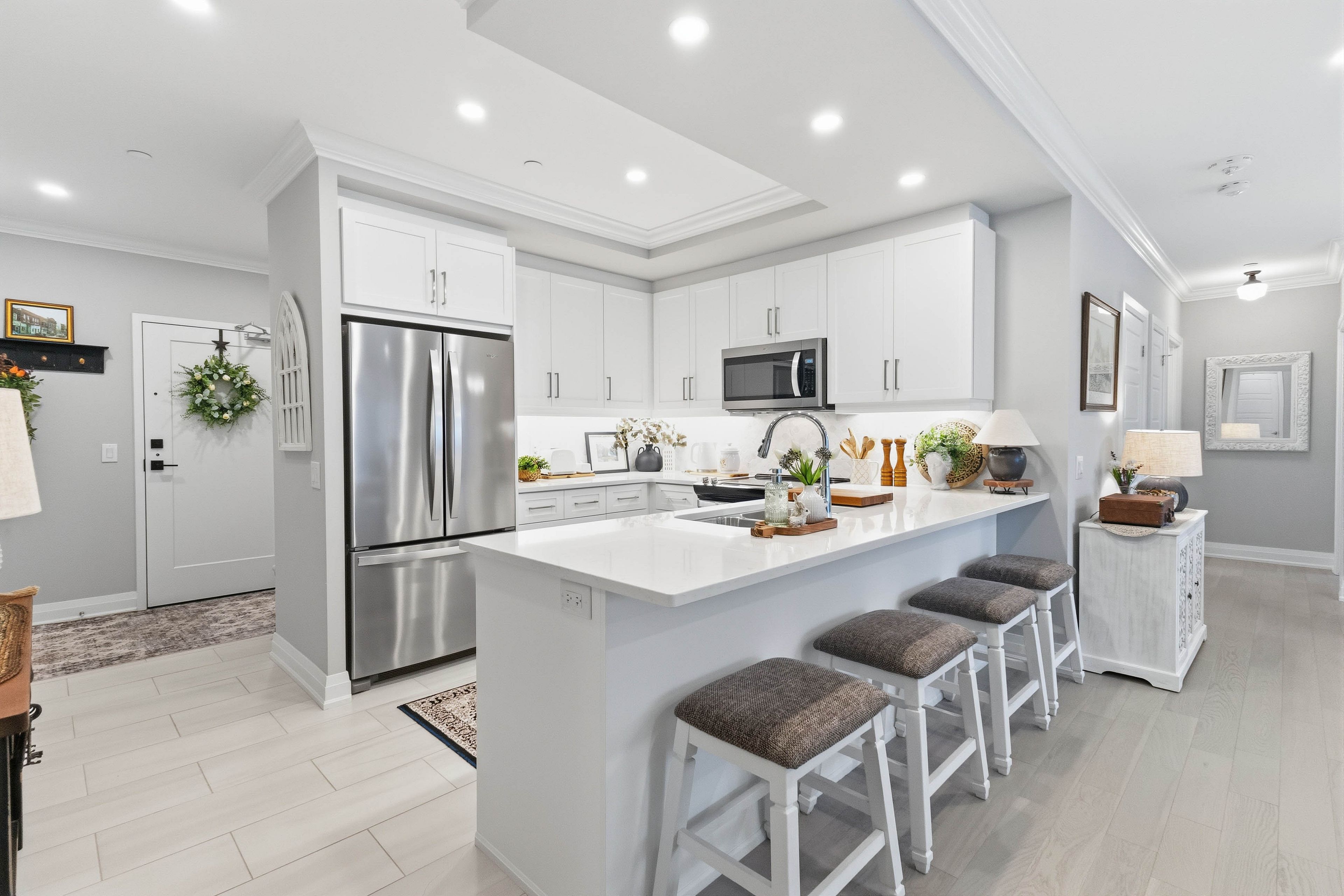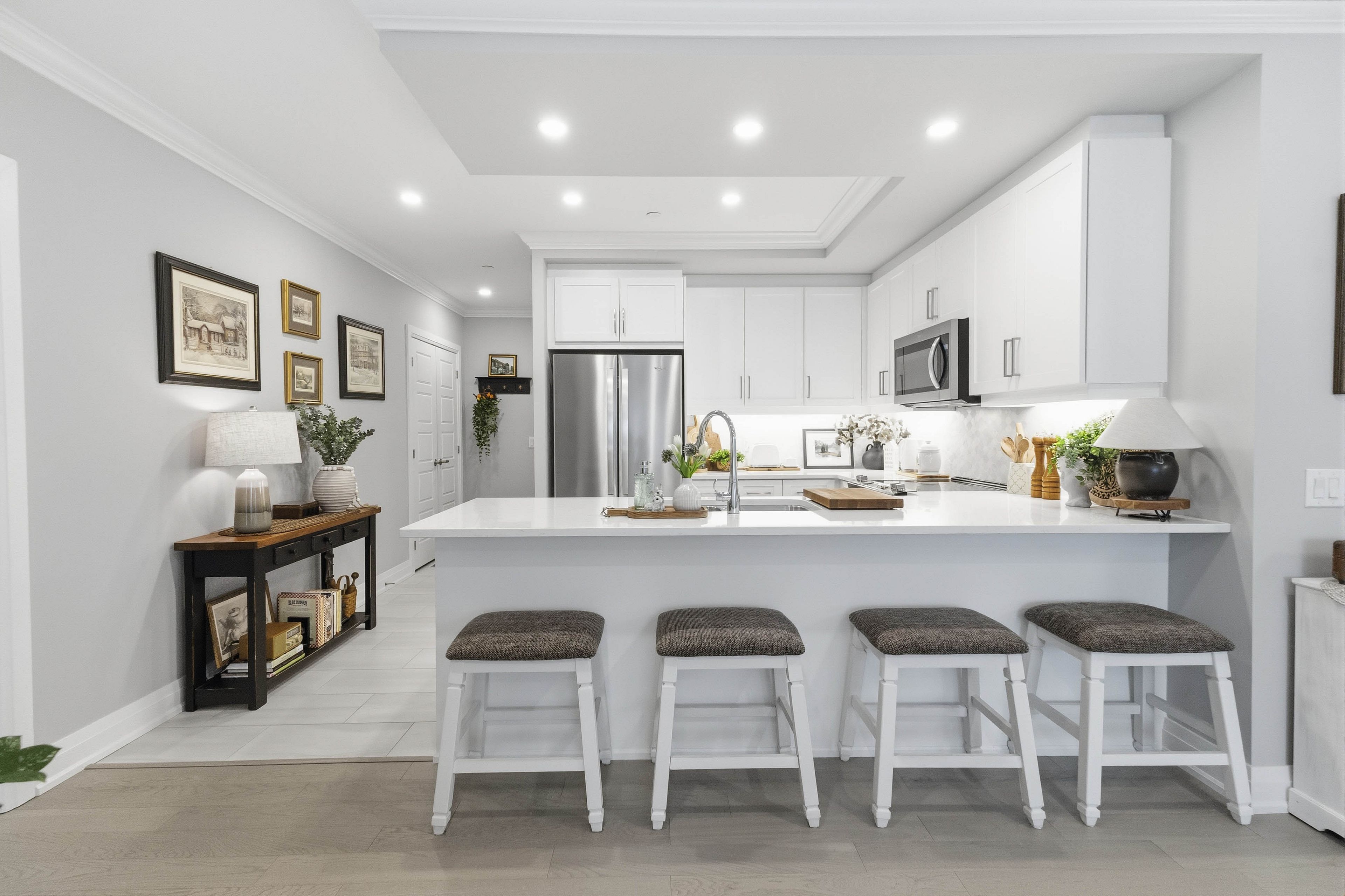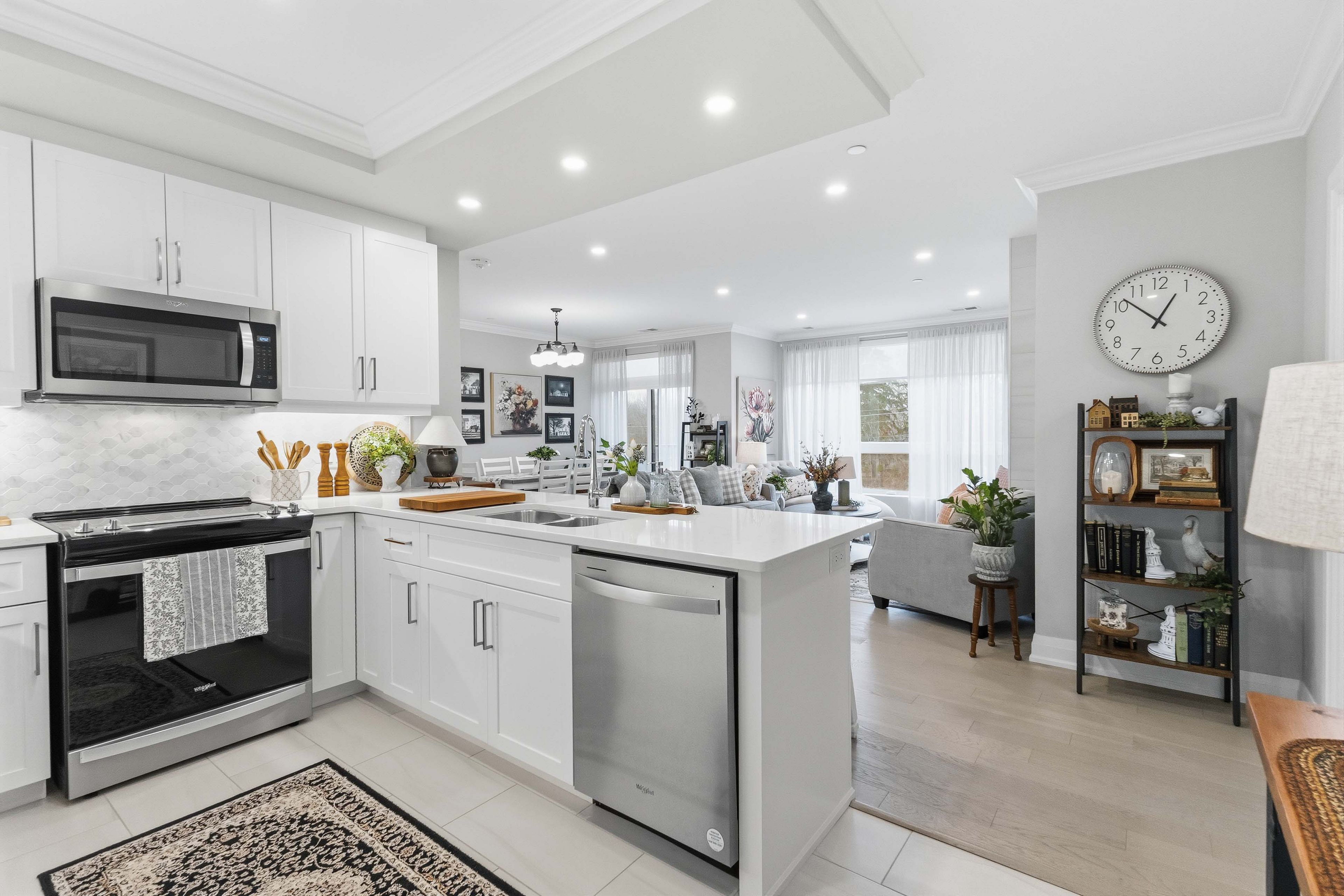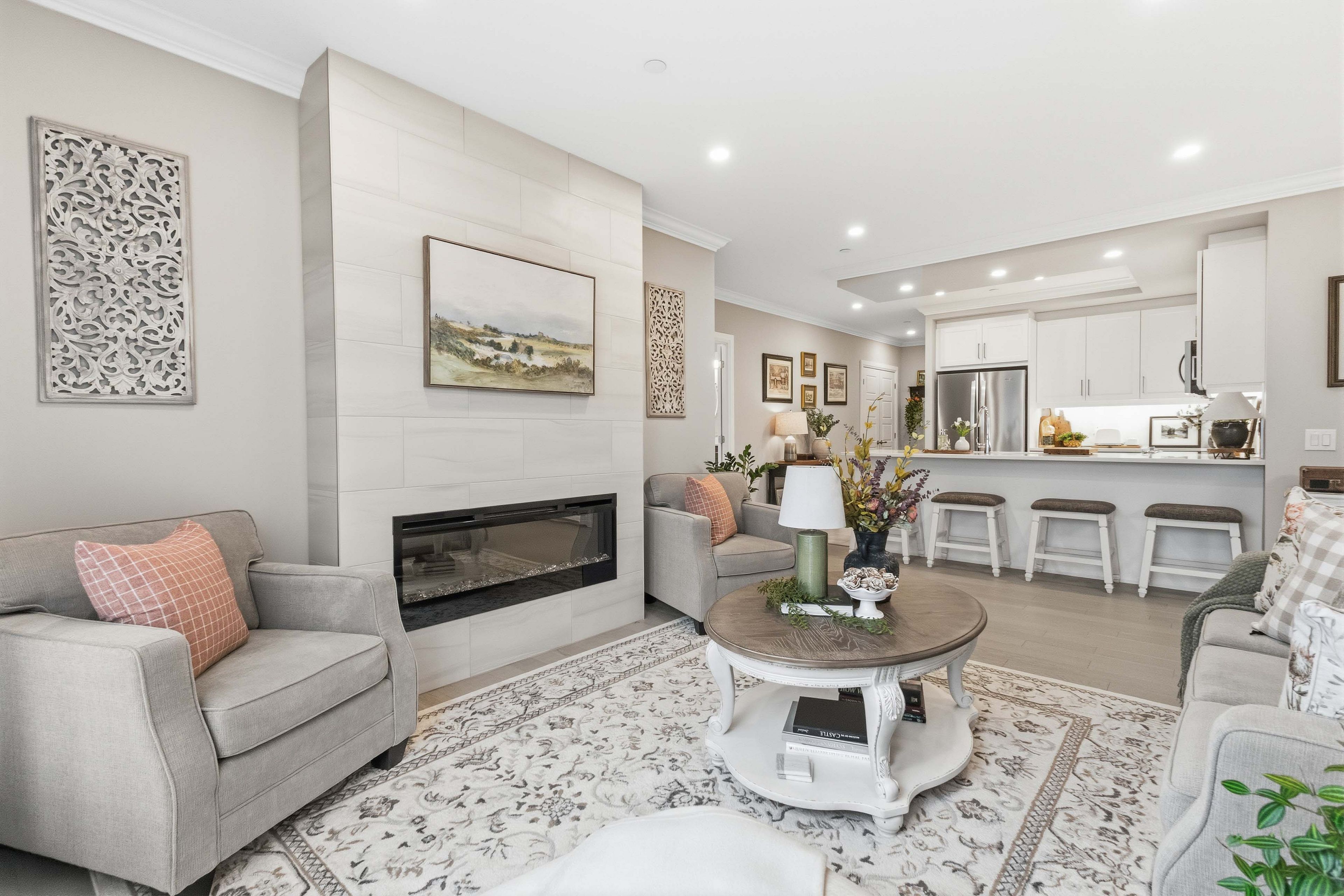 Step into this gorgeous West London, thoughtfully finished 2 bedroom suite, where modern comfort meets timeless elegance. Recently built by renowned Tricar, every detail has been carefully curated by the owner and builder, creating a warm, inviting home. The open-concept layout features engineered hardwood and porcelain tile throughout, accented by crown molding, flat ceilings, and upgraded light fixtures. Large windows fill the space with natural light, enhancing the cozy atmosphere. The living room is a welcoming retreat, centered around a 50" built-in electric fireplace with custom surround, perfect for relaxing or entertaining. Enjoy walk-out access to a private outdoor space with peaceful views of surrounding nature and forested areas, ideal for morning coffee, quiet evenings, or hosting friends. The kitchen is a dream, with custom cabinetry, soft-close drawers, under-cabinet lighting, quartz countertops, a stylish backsplash, and stainless steel appliances. The bathrooms are beautifully finished with custom vanities, quartz countertops, designer faucets, frameless mirrors, and porcelain tile. The ensuite bathroom features a sleek walk-in shower and in-floor heating, while the second bathroom offers a full tub. Comfort is effortless with centralized boiler heating, individual air conditioning, and in-suite laundry with full-size washer and dryer. Set in a boutique four-storey building in desirable West London, amenities include a billiards lounge, wet bar, fitness center, media room, private guest suite, and multi-use sports courts. This suite comes with one owned underground parking space (option to purchase a second) and the balance of the new home warranty is transferable. Condo fees include heating, water, building insurance, common areas, and amenities, making ownership simple. Great opportunity to own a move-in ready, exquisitely finished home with the sold out 2B-5 floor plan, best in the building, located in West London's most desirable communities.