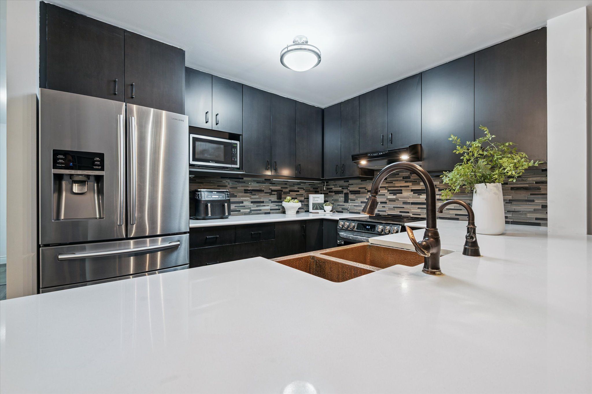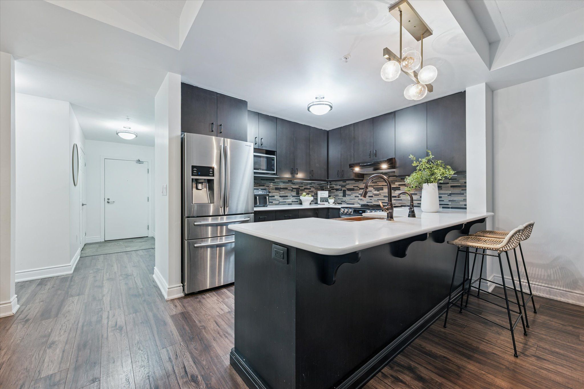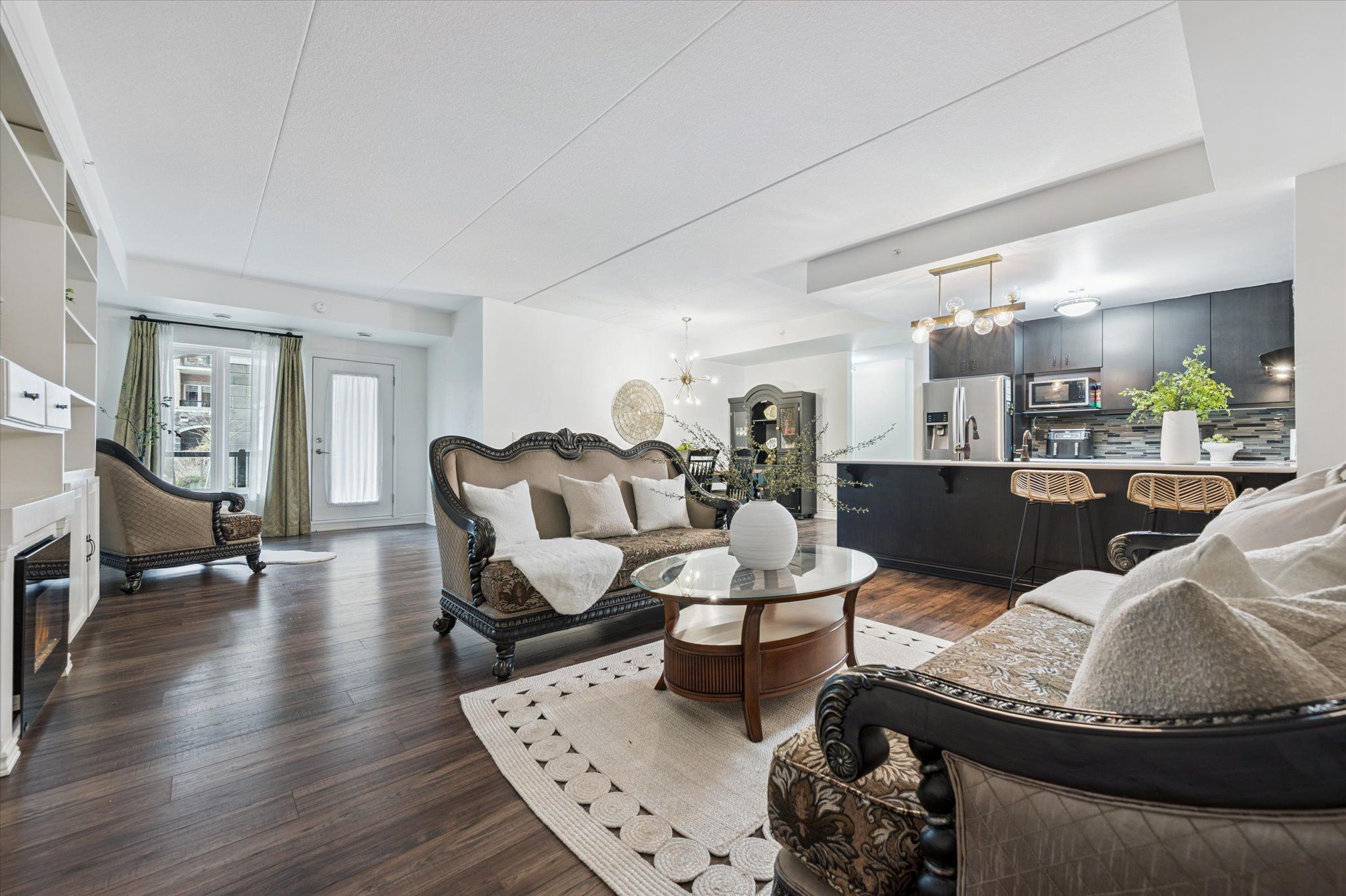 Welcome to this spacious condo located in Guelph's highly desirable Pineridge/Westminster Woods neighbourhood. Offering over 1,600 sq ft of thoughtfully designed living space, this unit features a versatile and functional layout with 3 bedrooms and 2 full bathrooms, along with the rare benefit of 3 parking spaces (1 underground and 2 surface) and a private balcony, providing both comfort and practicality for everyday living. The open-concept main living area is bright and inviting, with expansive windows that fill the space with natural light and an electric fireplace that anchors the room. The layout offers excellent separation while maintaining flow between the living, dining, and kitchen areas, making it well-suited for both daily living and entertaining. The kitchen is finished with quartz countertops, stainless steel appliances, a custom copper sink, and generous cabinetry, offering a clean and functional workspace with thoughtful detail. The primary bedroom is generously sized and features a walk-in closet and a private ensuite complete with a double copper vanity. Two additional bedrooms provide flexibility for family, guests, or a dedicated home office, while the ensuite laundry adds to the overall convenience. Constructed in 2015, the building is well maintained and offers a range of amenities including a fully equipped exercise room, party room, rooftop terrace, and ample visitor parking. Situated in Guelph's south end, this location is known for its strong sense of community and access to everyday essentials. You're within close proximity to shopping, restaurants, schools, parks, and the University of Guelph, with public transit directly nearby and convenient access to Highway 401 and the GO Train for commuters. Perfect for first-time home buyers, commuters, and downsizers seeking a low-maintenance lifestyle in a well-connected and established neighbourhood.