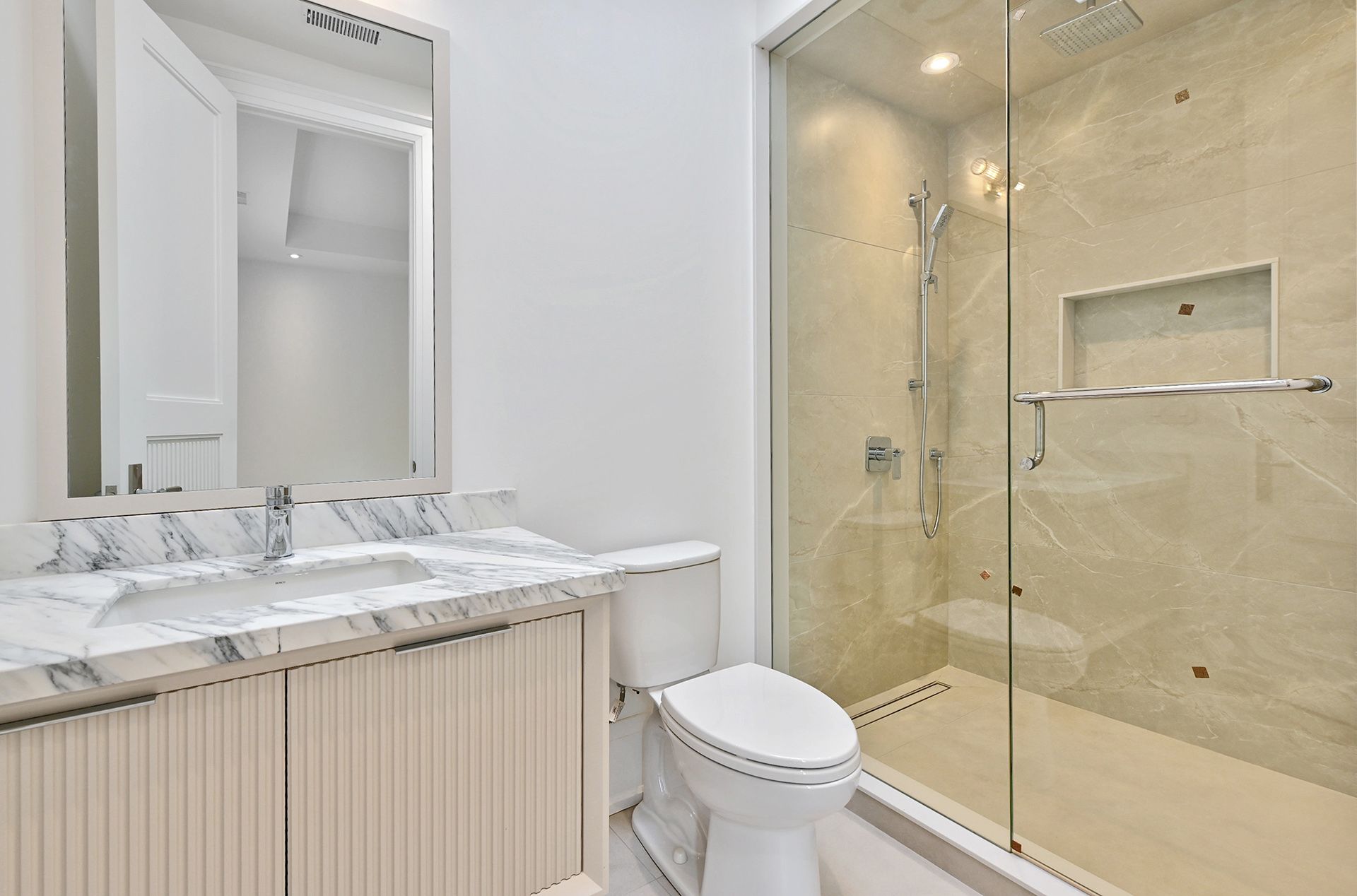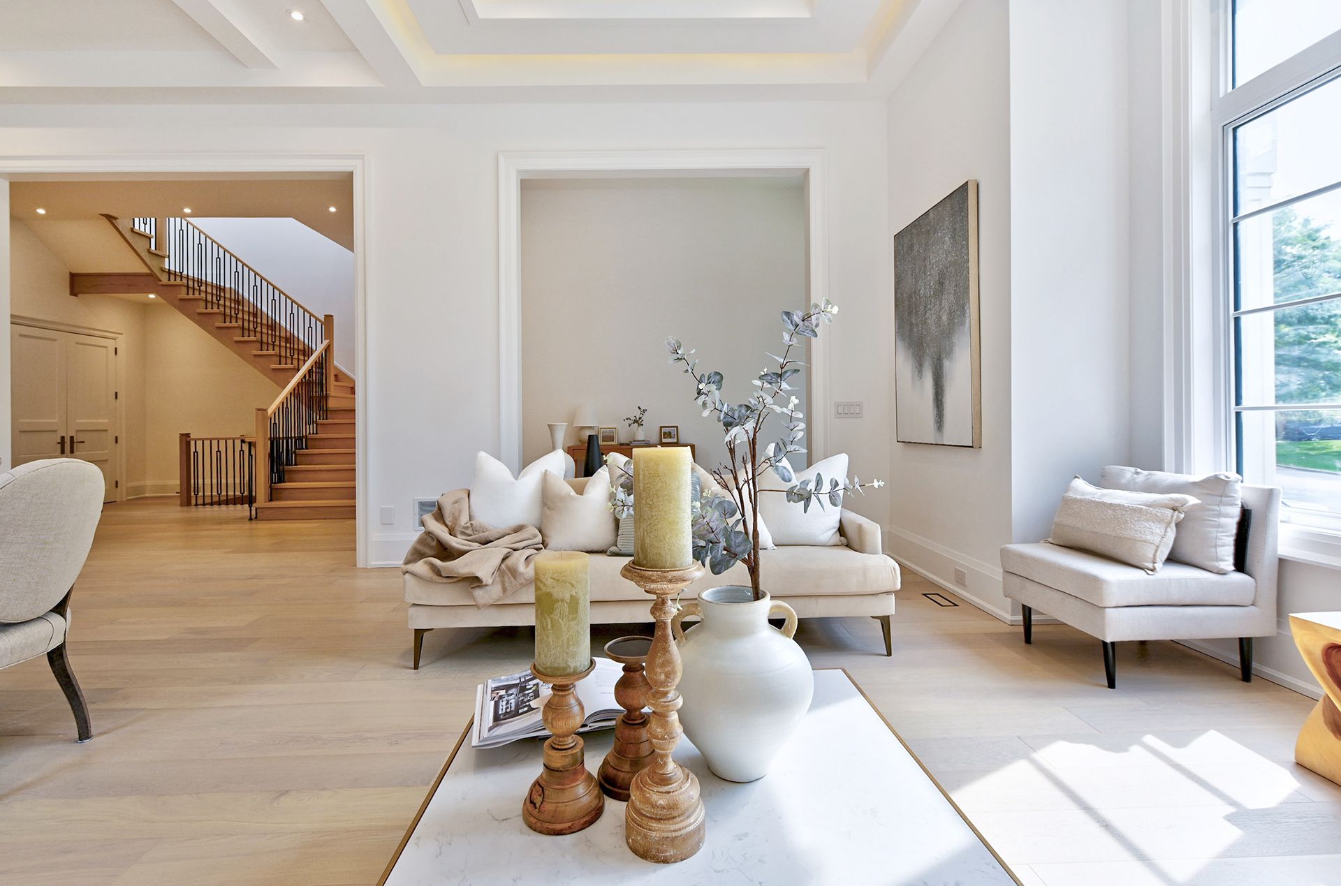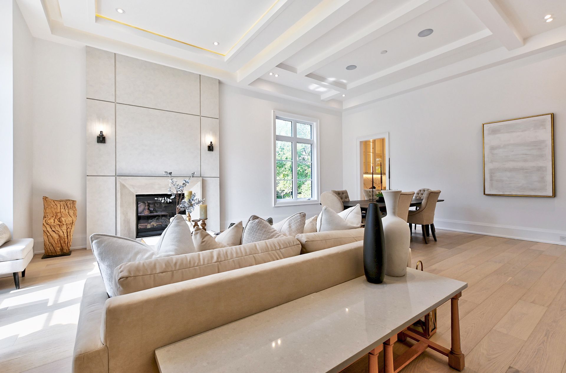 Brand new, never lived in luxury family home in a desirable neighbourhood! Rare opportunity to own a 5,381 sq ft luxury home (+2,086 sq ft finished basement), 7,467 total living space, on a 13,928 sq. ft. lot with mature trees in one of the city's most prestigious, family-oriented neighbourhoods. Highly sought-after DENLOW PUBLIC SCHOOL, St. Andrews MS, Windfields MS & York Mills CI catchment. Ideal for families with young children. Designed with exceptional attention to detail, combines comfort and elegance with modern sophistication, offering expansive living spaces and soaring ceilings. Features a massive gourmet chef's kitchen for family & entertaining, featuring double islands, premium integrated appliances, and elegant custom cabinets, an adjoining prep kitchen, and a servery. A large main-floor office with a separate entrance (ideal for professionals or in-laws), with a versatile den that can serve as a sixth bedroom & a full bath. 5 spacious bedrooms with full baths, a main-floor office with a private entrance, and a large den (6th bedroom option) with a full bath. An oversized, serene primary suite with a boutique-style walk-in closet and a spa-like en-suite. Heated floors throughout the basement. Tandem 3-car garage plus parking for six more on the driveway (total 9). The expansive backyard offers incredible potential to add a swimming pool, a private tennis court, or a fully detached accessory dwelling unit - subject to city approvals. Mature trees provide privacy.