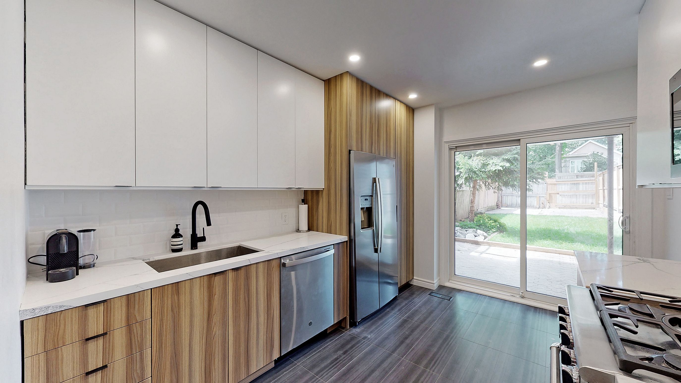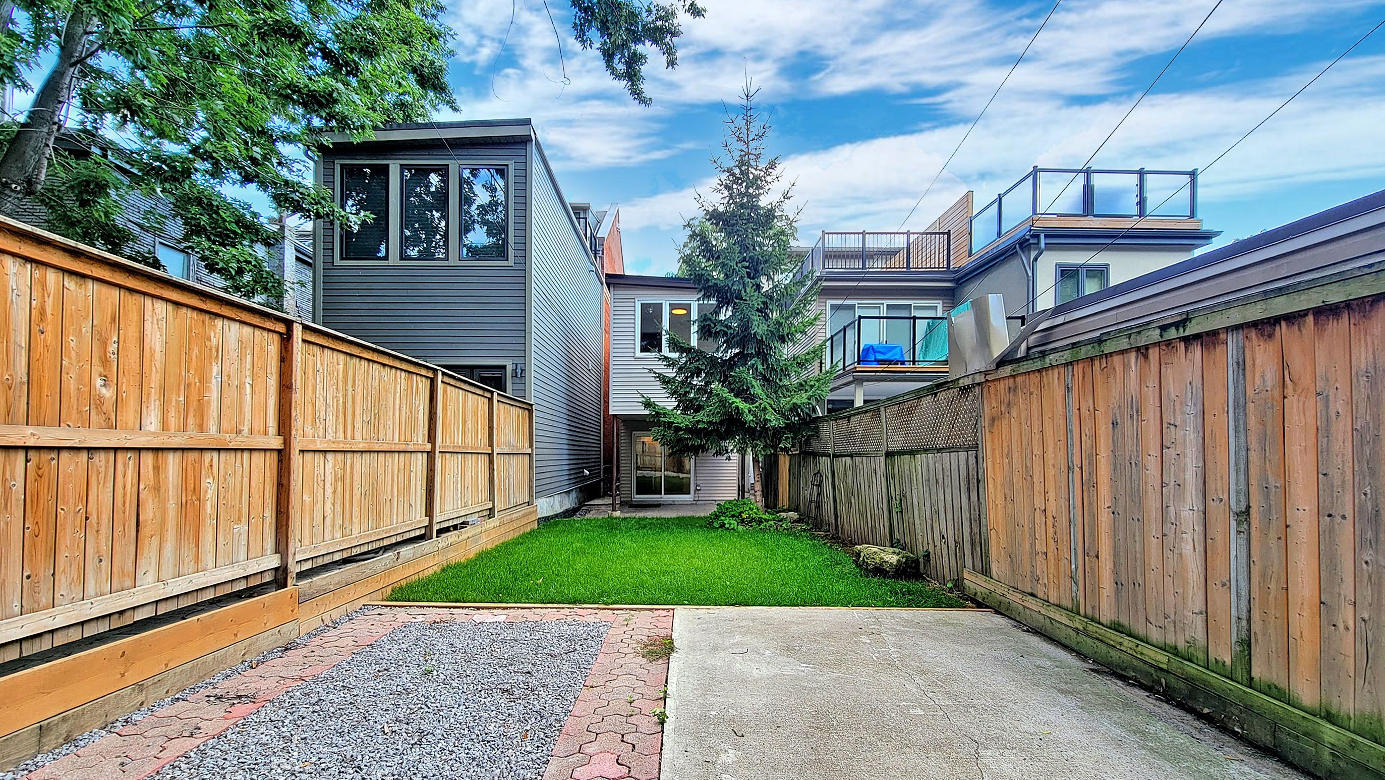 2-Storey Classic Semi-Detached Nestled in Historic Cabbagetown. This beautifully renovated home offers perfect mix of modern finishes and conveniences ideal for urban dwellers. 3 spacious bedrooms plus a den and 2-car parking via laneway. Open concept living and dining area features stained glass accents, hardwood floors, and high panelled ceilings creating a warm and inviting atmosphere. Ultra sleek family size kitchen is equipped with stainless steel appliances, quartz countertops, gas stove, pot lights, and a walk-out leading to large backyard and covered patio, perfect for outdoor dining and entertaining. Light filled primary bedroom boasts cathedral ceilings, exposed brick wall and a large double closet. Main bathroom is fitted with a double vanity and a soaker tub. Additional highlights include a main floor powder room, ensuite laundry, and central air conditioning. Located directly across from Lord Dufferin Public School, and within walking distance to Winchester Public School, Jarvis Collegiate, the Financial District, TTC, hospitals, green spaces, and all that downtown Toronto has to offer.