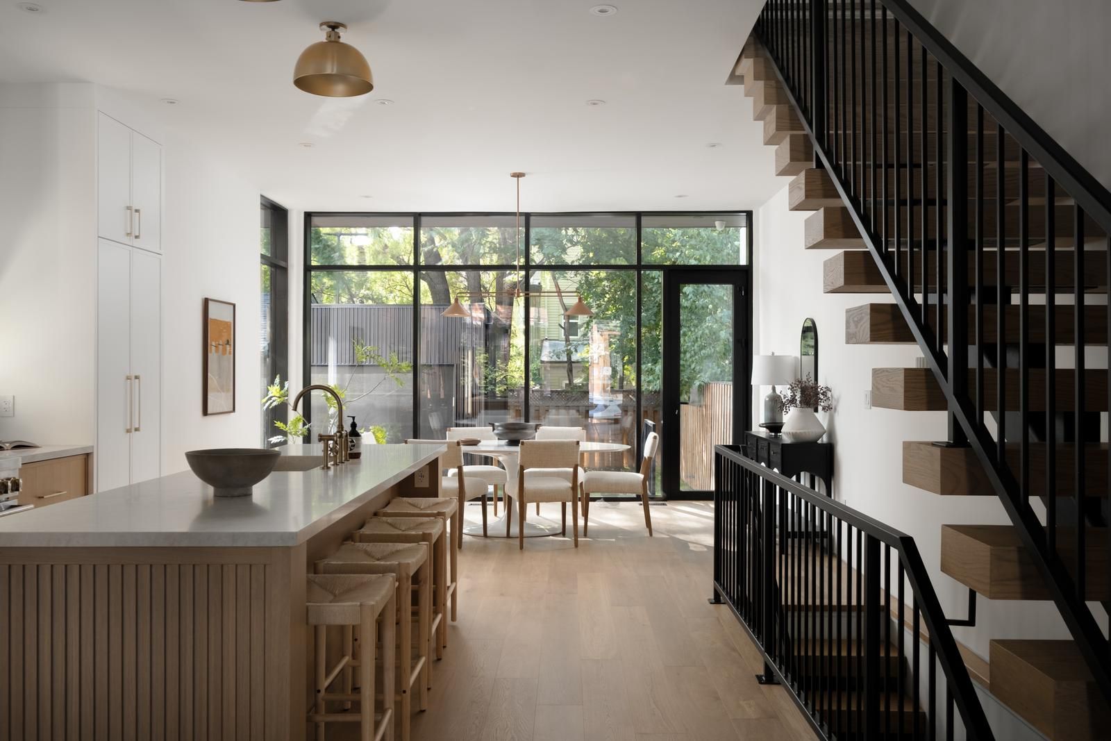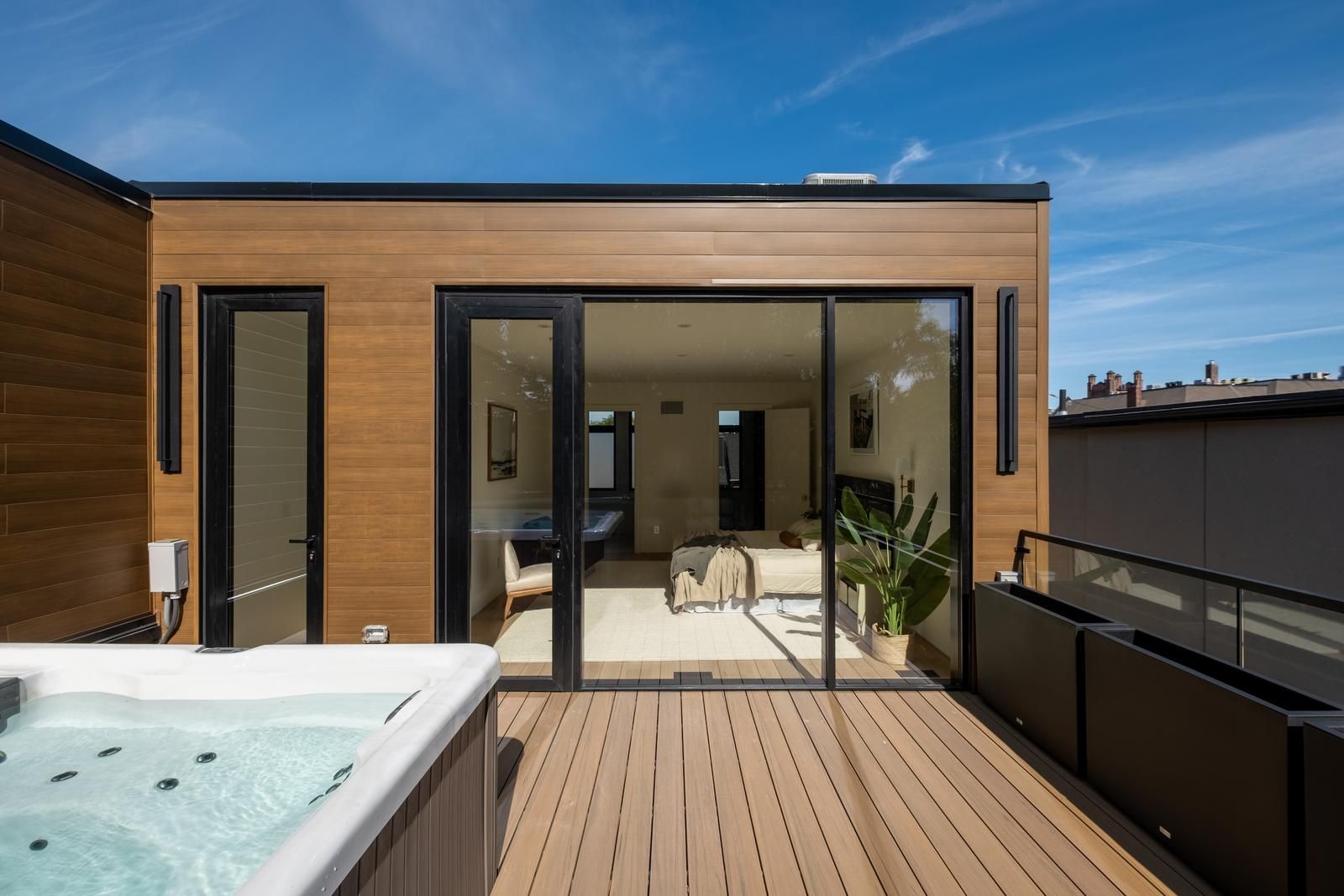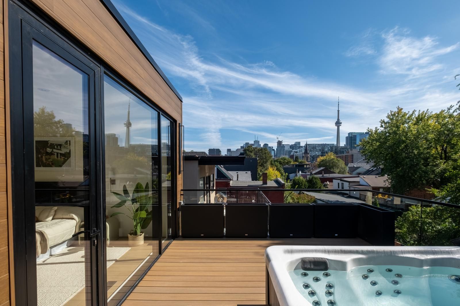 An exceptional luxury residence offering a true sense of arrival, this striking three-storey detached home is a modern architectural statement in the heart of the city. Thoughtfully designed for both everyday living and elevated entertaining, the open-concept main floor features wide-plank hardwood flooring, soaring ceilings, and a custom floating steel-and-oak staircase that anchors the space as a sculptural focal point.The chef's kitchen is both refined and functional, showcasing a large centre island, premium integrated appliances, and a dramatic wall of floor-to-ceiling glass that creates a seamless connection to the outdoors.Upstairs, the private quarters offer a tranquil retreat. The primary suite is a standout, complete with a spa-inspired five-piece ensuite, a generous custom walk-in closet with integrated lighting, and peaceful, tree-lined views.Crowning the home is a spectacular rooftop terrace-an expansive private oasis featuring a hot tub and breathtaking, unobstructed views of the city skyline, including the iconic CN Tower.This is more than a home-it's a rare offering that delivers modern design, refined comfort, and an exceptional lifestyle in one of Toronto's most vibrant neighbourhoods.Property taxes not yet assessed.