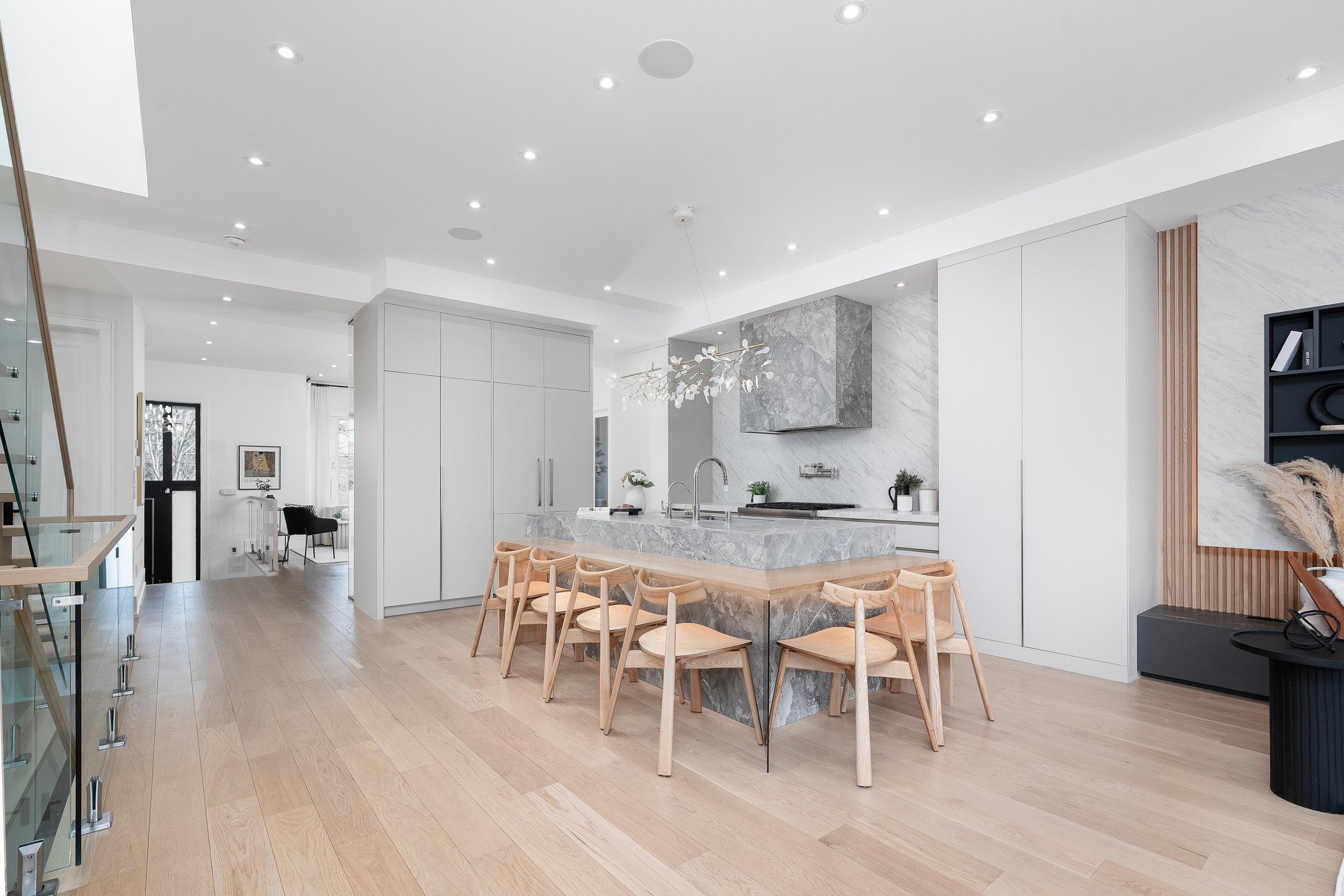 OPEN HOUSE SAT April 4 11AM-1PM & SUN April 5 2-4PM. A rare opportunity to own an exceptional three-year-new custom residence in the heart of Midtown Toronto, just moments from top-ranked independent and public schools and within walking distance to vibrant urban conveniences.Nestled in the historic and Chaplin Estates, this elegant two-storey home offers approximately 2,760 sq ft (MPAC) of refined above-grade living space, plus an additional 1,393 sq ft on the lower level.The main level features 10-ft ceilings, wide-plank white oak flooring, and a bright, welcoming foyer and a striking custom wine display. Expansive windows with innovative dual tilt-and-turn functionality provide enhanced comfort and security.The open-concept chef's kitchen completes with custom cabinetry, valance lighting, pot filler, and premium built-in appliances. A dramatic waterfall island with a six-seat breakfast bar serves as the centerpiece-perfect for entertaining and everyday living.Seamlessly connected, the family room showcases a unique asymmetrical design, a stunning three-sided panoramic gas fireplace, and custom built-in shelving-creating a warm & sophisticated gathering space.The luxurious primary suite offers a serene retreat, featuring a spa-inspired five-piece ensuite with steam shower, floating vanity, heated floors, and a freestanding tub overlooking the garden. A walk-in closet with skylight enhances the suite, while dual skylights in the hallway fill the 9-ft ceiling upper level with abundant natural light.The lower level boasts soaring 12-ft ceilings, large-format white porcelain heated floors, custom built-in bookcase and refined valance lighting. Double glass doors provide direct access to the private backyard. Perfectly positioned just steps to Yonge Street, Eglinton Park, the LRT, and Davisville Station, and surrounded by boutique shops and fine dining, this residence is located in one of Toronto's most desirable neighbourhoods-an extraordinary place to call home.