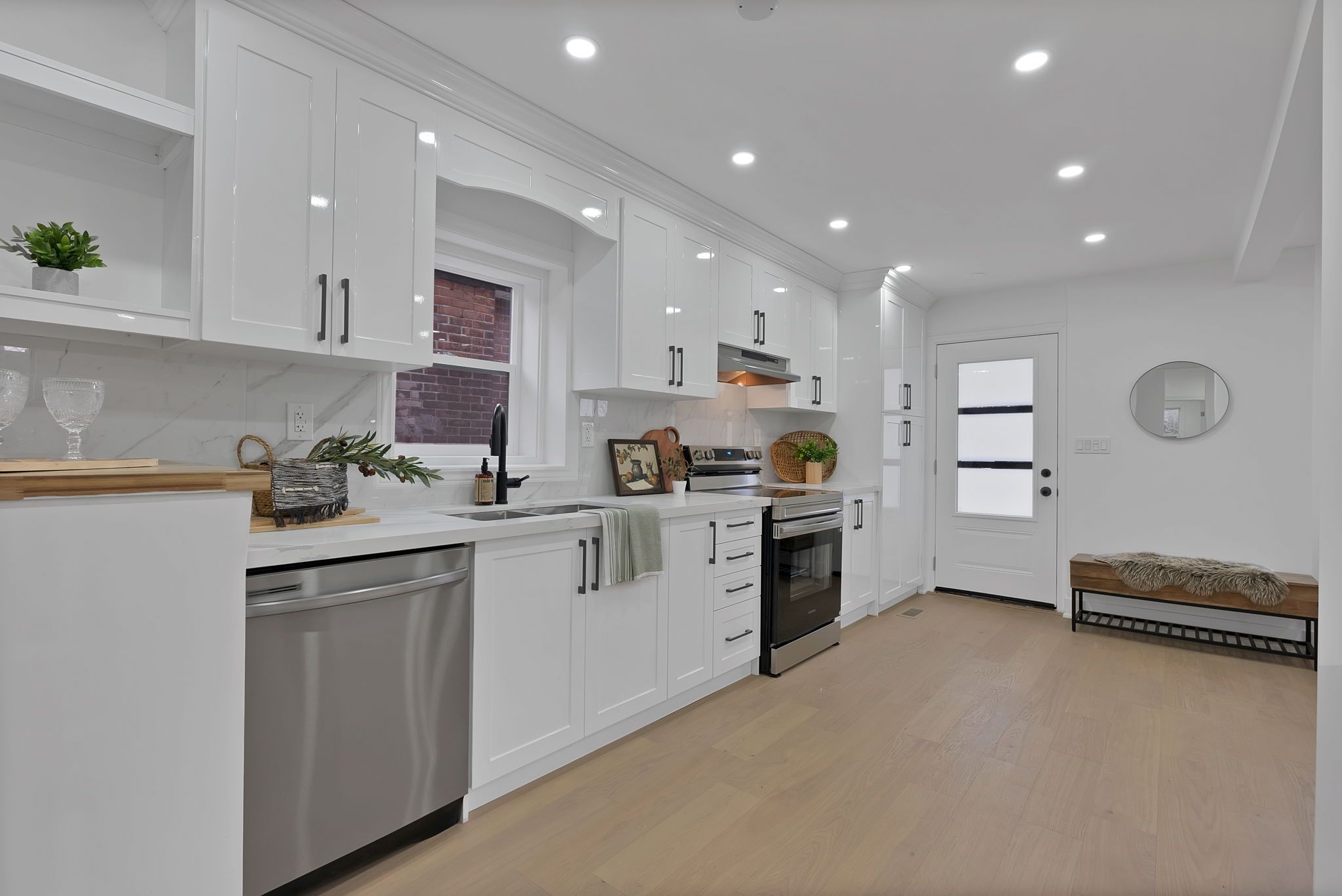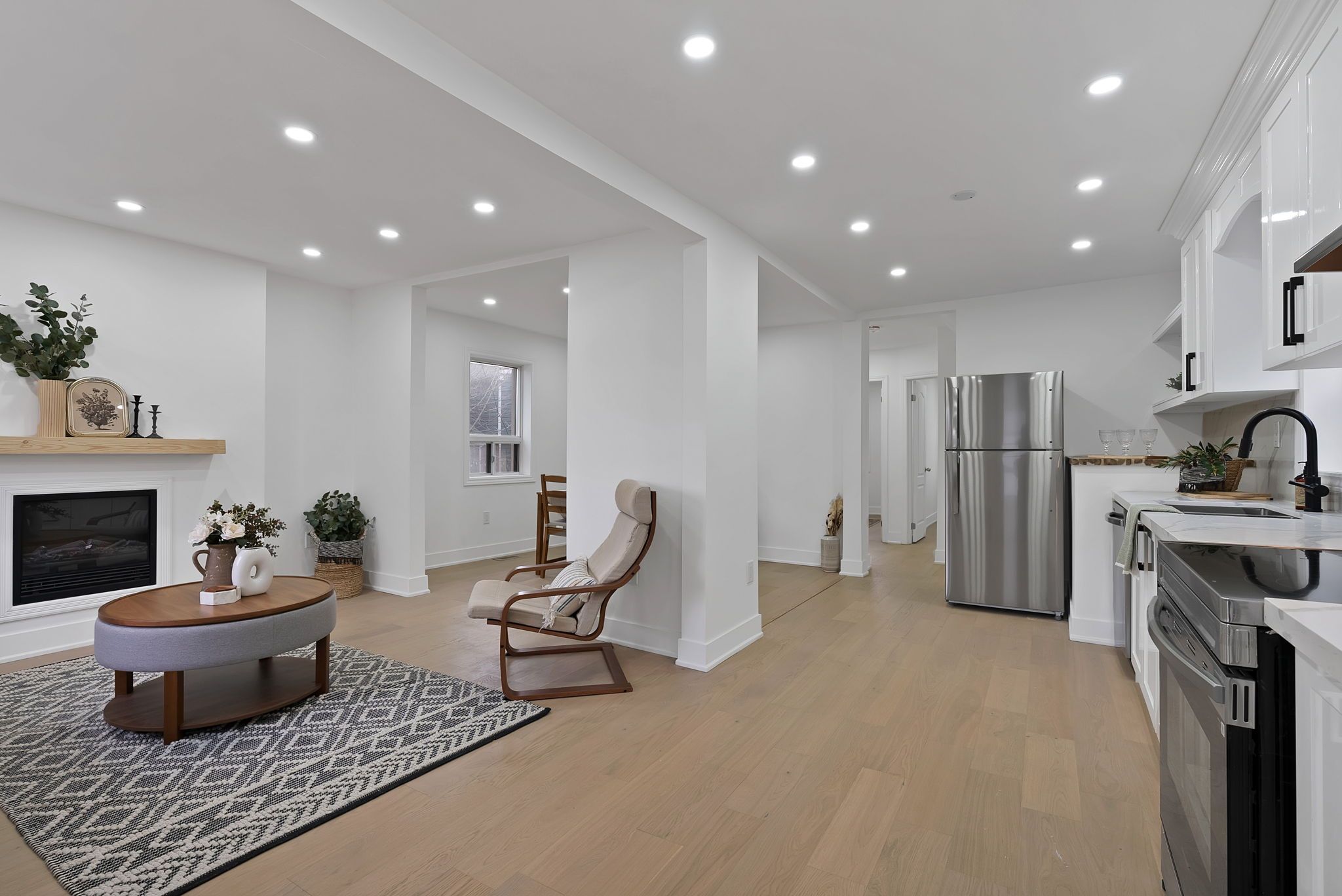 Welcome to this 1.5-storey East York home, updated down to the studs with quality workmanship. Featuring 3+1 bedrooms, 2 full baths, a finished basement with an extra bedroom and den, separate entrance, and second kitchen with in-law suite potential. Primary bedroom has a walk in closet/den. All appliances are brand new and a new electric fireplace adds modern comfort ESA-approved electrical with added sub-panel. Set on a good-sized lot surrounded by luxury rebuilds, with new grass front and back. Detached garage with potential for a garden suite and driveway parking for up to four vehicles. Steps to Danforth, TTC, parks, top-tier schools, and easy access to the DVP. Ideal for end users, multi-generational living, or long-term value seekers.