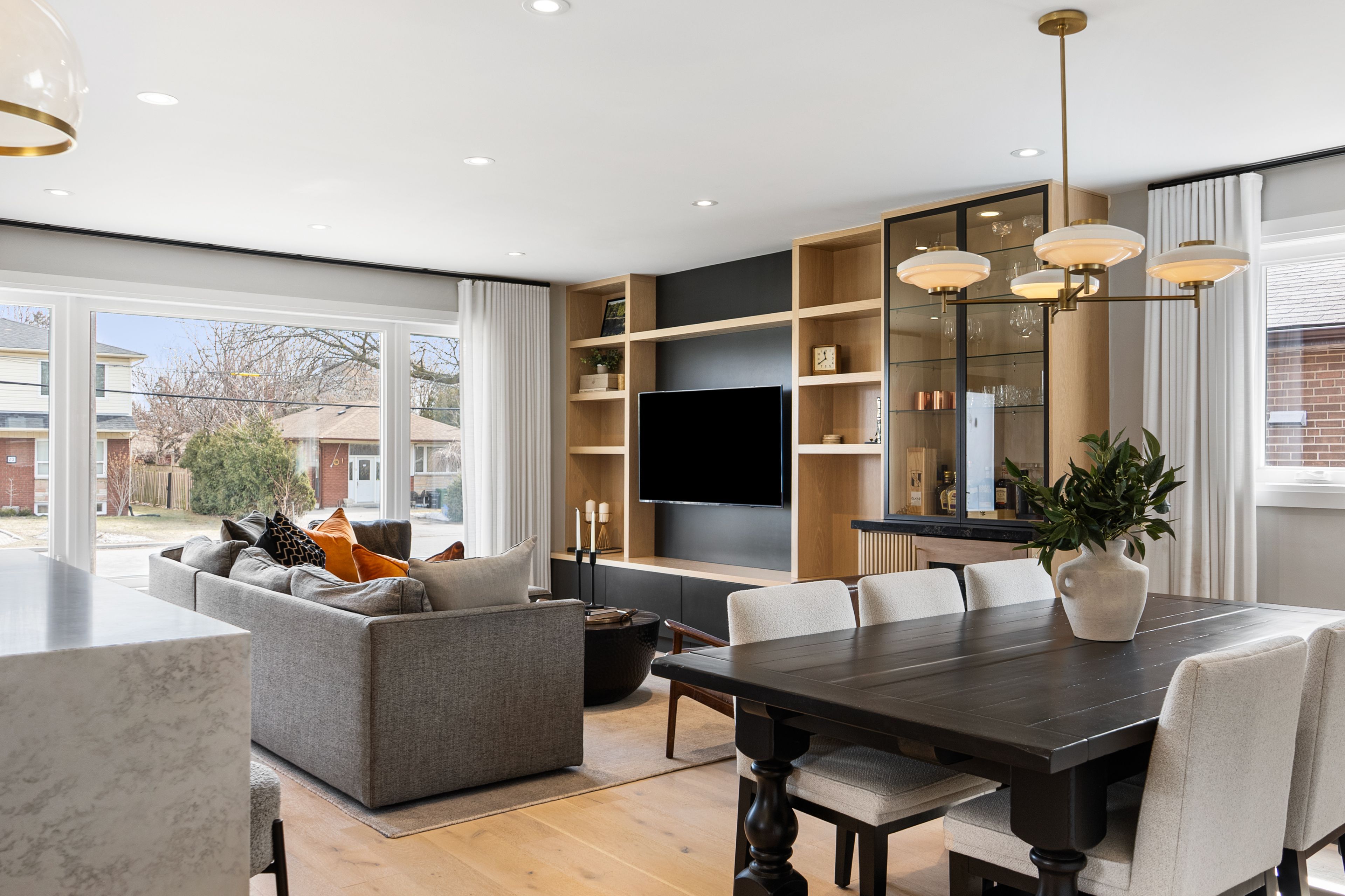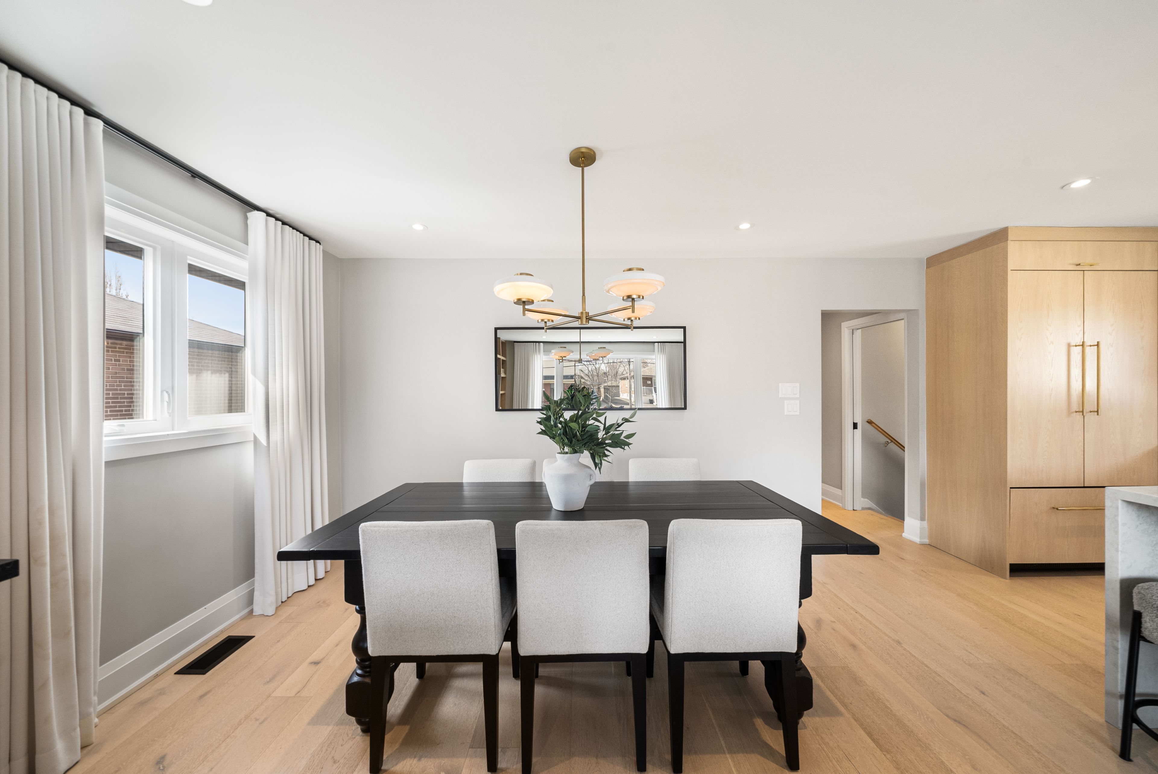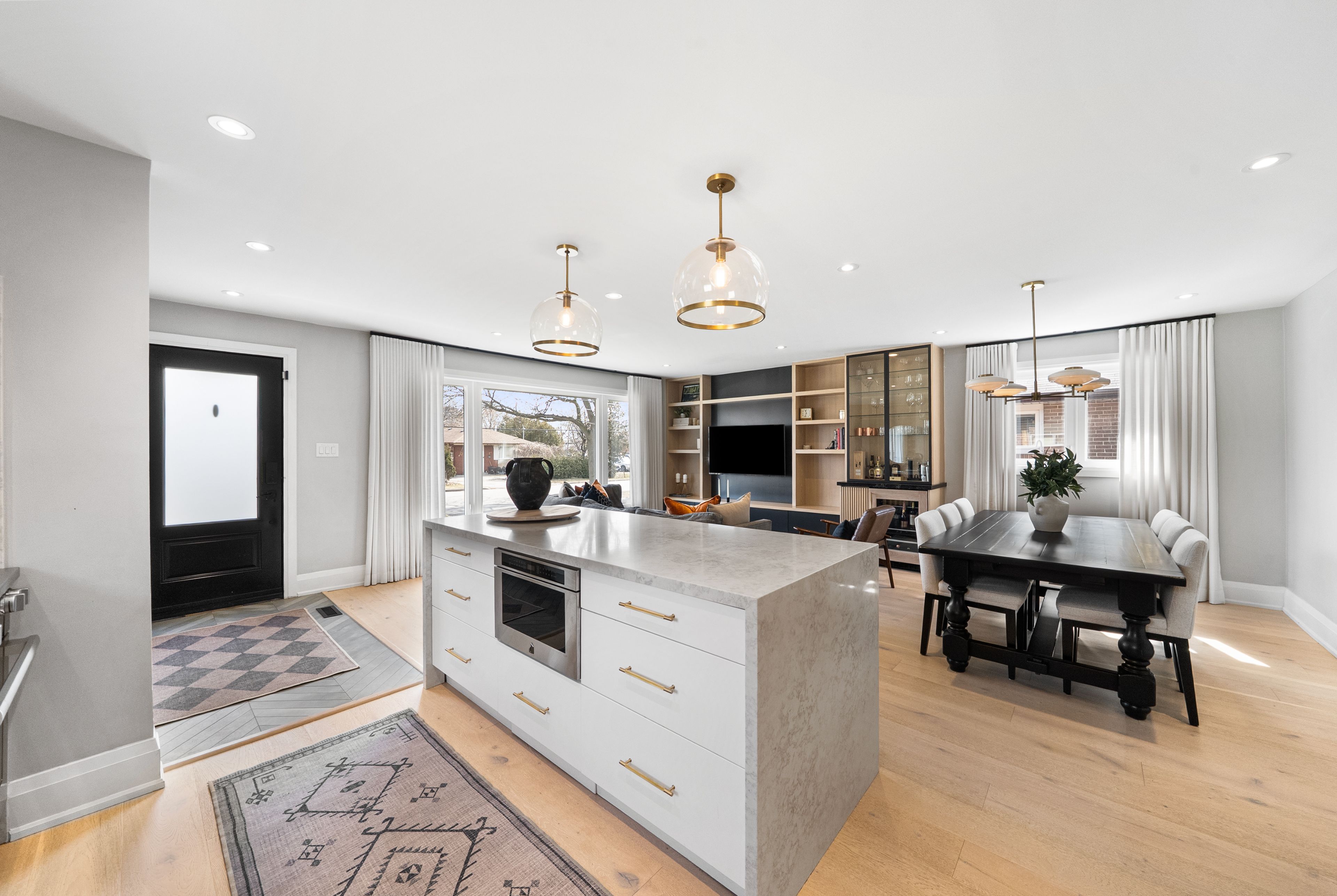 12 Elinor Ave is a masterfully renovated bungalow that blends refined design, premium finishes, and outstanding functionality. Completed in 2022 and further enhanced through 2025, this turn-key home offers exceptional quality throughout.The main floor features three spacious bedrooms plus a den, with white oak engineered hardwood, solid-core doors, heated bathroom floors, and custom linen drapery throughout. At the heart of the home is a stunning chef's kitchen with fully integrated JennAir and Miele appliances, while custom millwork elevates every space, including a built-in entertainment unit, dining room bar with tempered glass, entry closet with bench seating, den cabinetry, and a custom primary bedroom closet.A beautiful rear addition showcases vaulted ceilings and two walk-outs to the professionally landscaped backyard, complete with a composite deck, glass railings, boulder retaining wall, Armstrong Gold Red Maples, and a 6-foot privacy fence.The lower level, with convenient side entrance access, offers a private bedroom, full kitchen, bathroom, and living area, making it ideal for multi-generational living, guests, or excellent income potential.Every major system has been updated, including 200-amp and 100-amp panels (2024) with EV plug-in, furnace, A/C, HRV, tankless hot water heater, plumbing, electrical, roof, windows, and doors (2022). Hardie Board cladding, a separate garage, and new asphalt driveway (2025) complete this exceptional offering.