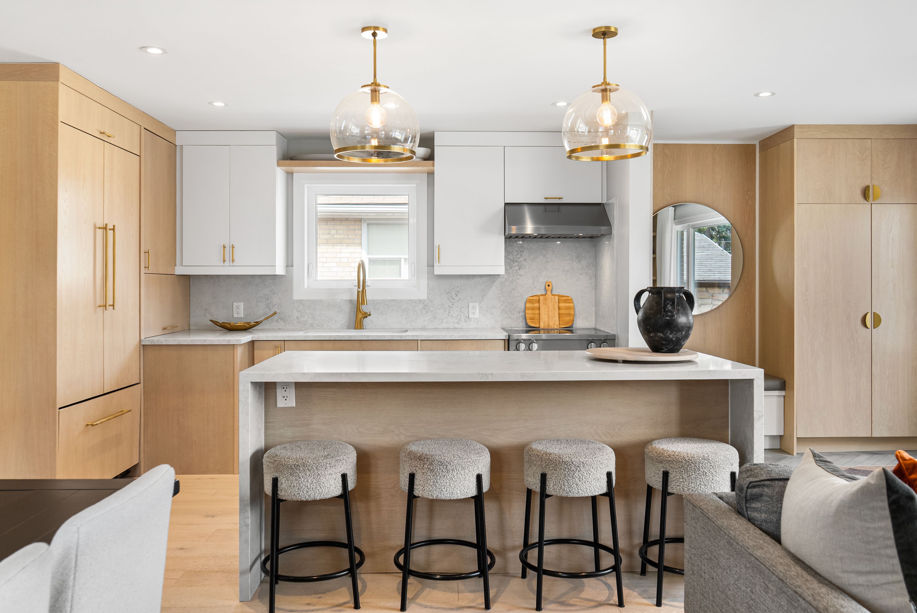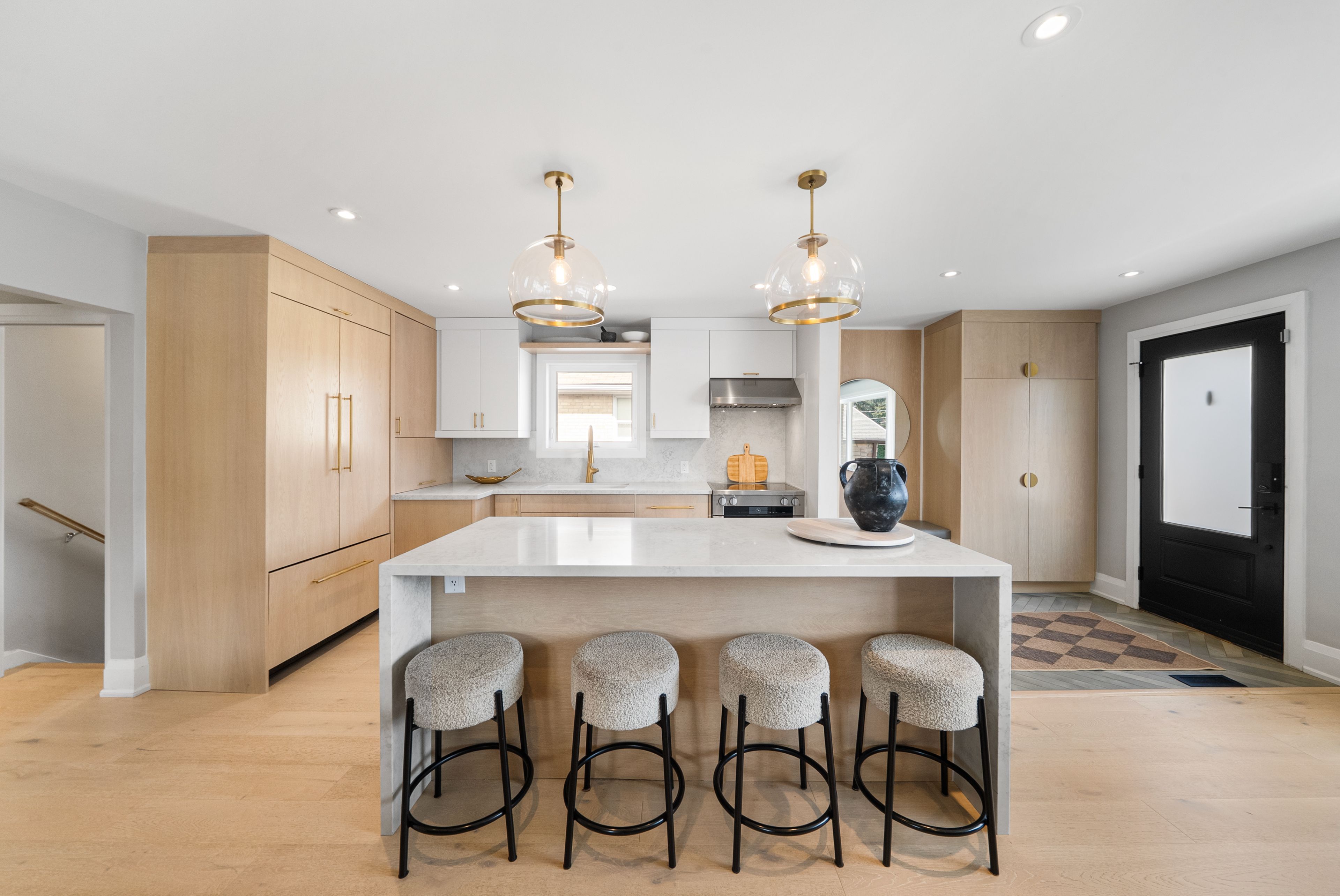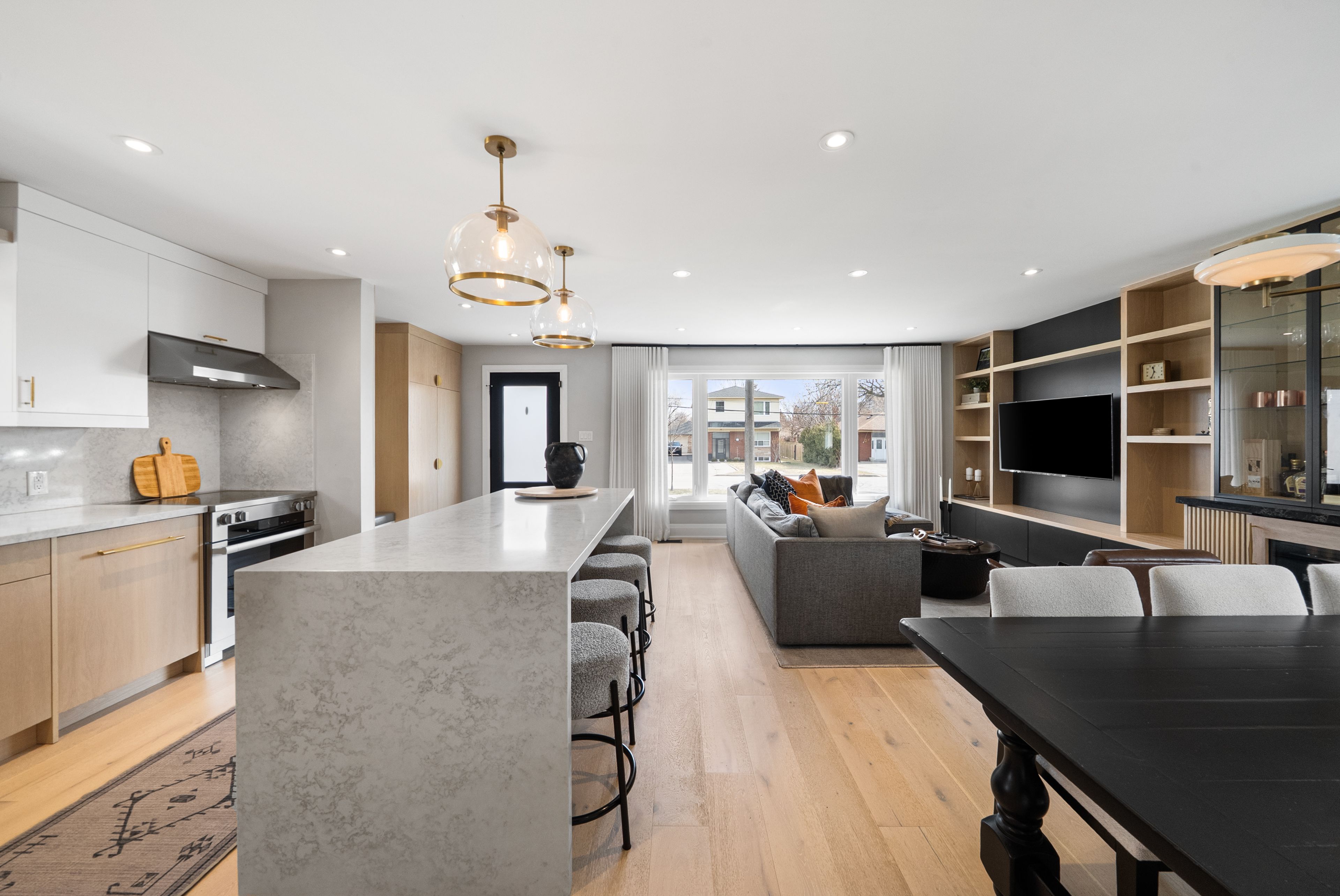12 Elinor Ave is a masterfully renovated bungalow that blends refined design, premium finishes, and outstanding functionality. Completed in 2022 and further enhanced through 2025, this turn-key home offers exceptional quality throughout.The main floor features three spacious bedrooms plus a den, with white oak engineered hardwood, solid-core doors, heated bathroom floors, and custom linen drapery throughout. At the heart of the home is a stunning chef's kitchen with fully integrated JennAir and Miele appliances, while custom millwork elevates every space, including a built-in entertainment unit, dining room bar with tempered glass, entry closet with bench seating, den cabinetry, and a custom primary bedroom closet.A beautiful rear addition showcases vaulted ceilings and two walk-outs to the professionally landscaped backyard, complete with a composite deck, glass railings, boulder retaining wall, Armstrong Gold Red Maples, and a 6-foot privacy fence.The lower level, with convenient side entrance access, offers a private bedroom, full kitchen, bathroom, and living area, making it ideal for multi-generational living, guests, or excellent income potential.Every major system has been updated, including 200-amp and 100-amp panels (2024) with EV plug-in, furnace, A/C, HRV, tankless hot water heater, plumbing, electrical, roof, windows, and doors (2022). Hardie Board cladding, a separate garage, and new asphalt driveway (2025) complete this exceptional offering.