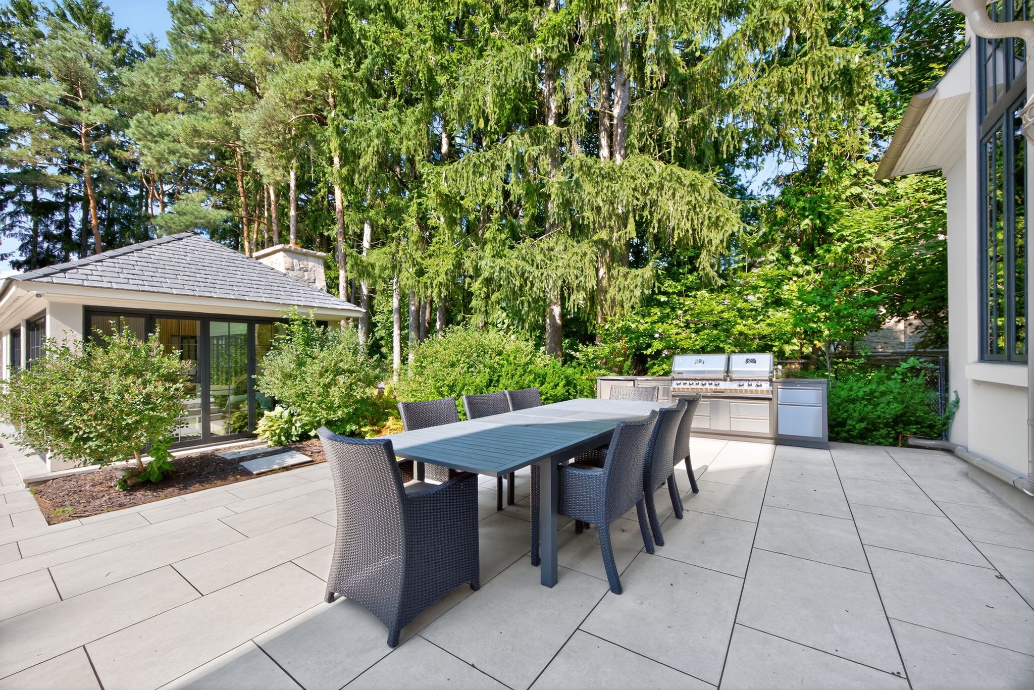 An Iconic Estate on Prestigious Kennedy Street West. Set on 1.18 private acres in the heart of Old Aurora, this one-of-a-kind residence embodies refined elegance and modern glamour. Behind its timeless façade, interiors are curated with a designers eye, wide-plank custom elm hardwoods, exquisite chandeliers, and architectural ceiling heights that flood the home with natural light. At the centre, the show-stopping Cameo Kitchen blends luxury and function with bespoke cabinetry, professional-grade appliances, and statement finishes worthy of a magazine spread. Formal and casual spaces alike are anchored by multiple fireplaces, creating warmth and sophistication throughout. The upper level boasts four bedrooms, highlighted by a lavish primary suite with a custom walk-in dressing room and spa-inspired ensuite retreat. On the lower level, two additional bedrooms, a dramatic stone fireplace, a wet bar designed as a secondary kitchen, and a private gym extend the homes lifestyle experience. Outdoors, the grounds transform into a resort-worthy escape: a glistening pool framed by multiple terraces, a designer outdoor kitchen, a custom designed cabana with retractable doors for seamless indoor-outdoor entertaining, floor to ceiling stone fireplace, 2 pc ensuite, wet bar and a stand-alone sauna that elevates relaxation to art form. A four-car garage with handcrafted wood doors, lead in to from a custom mudroom with walnut floor to ceiling cabinetry, completes this rare offering. This is more than a home, it is a statement of prestige, privacy, and unparalleled design in one of Auroras most coveted enclaves.