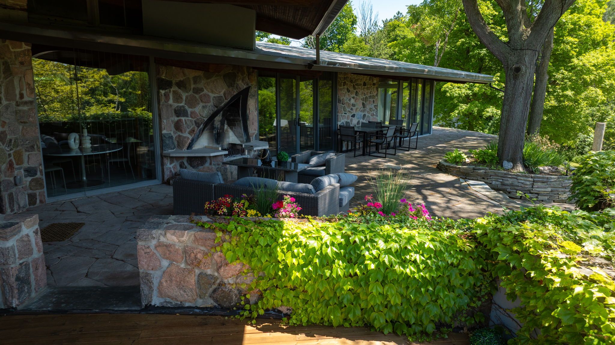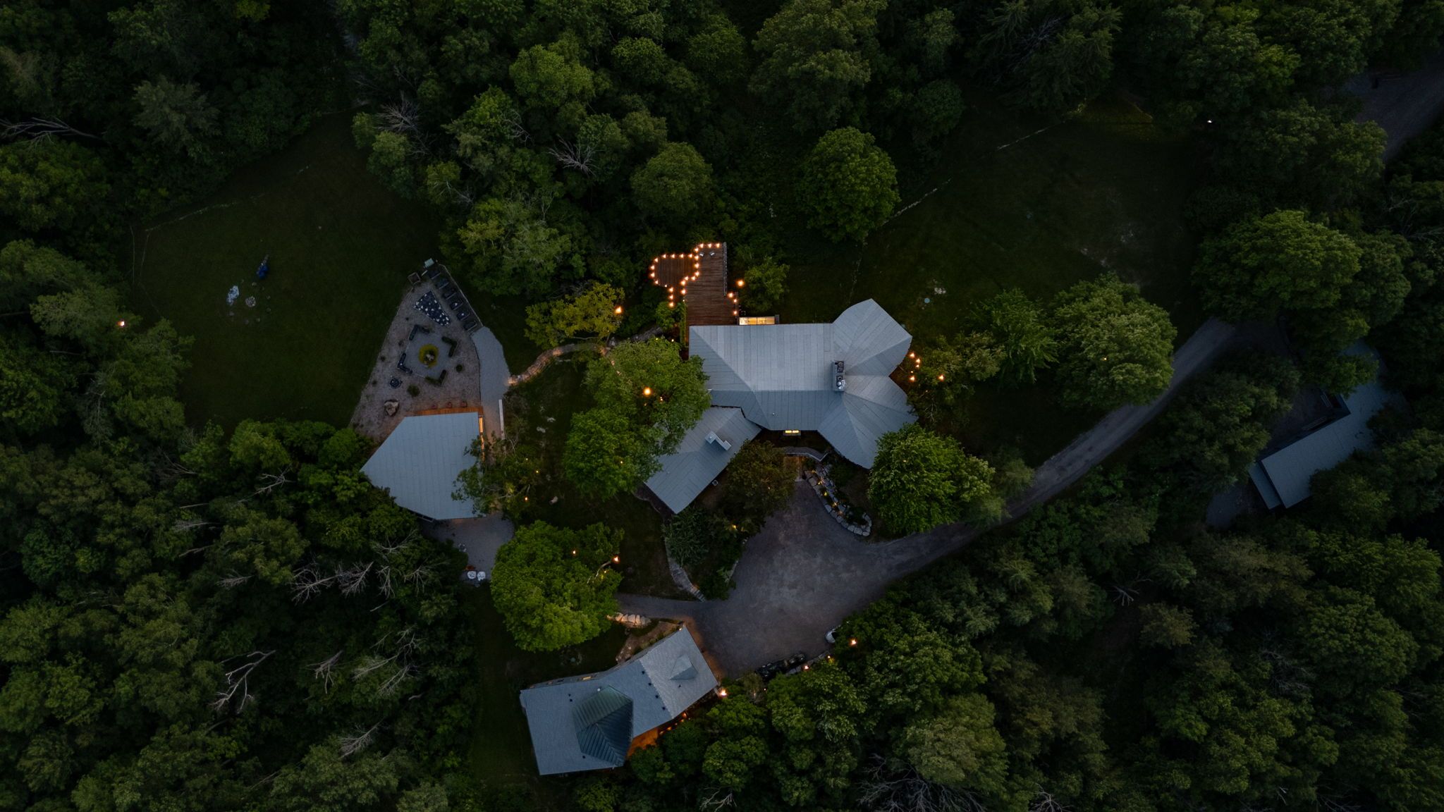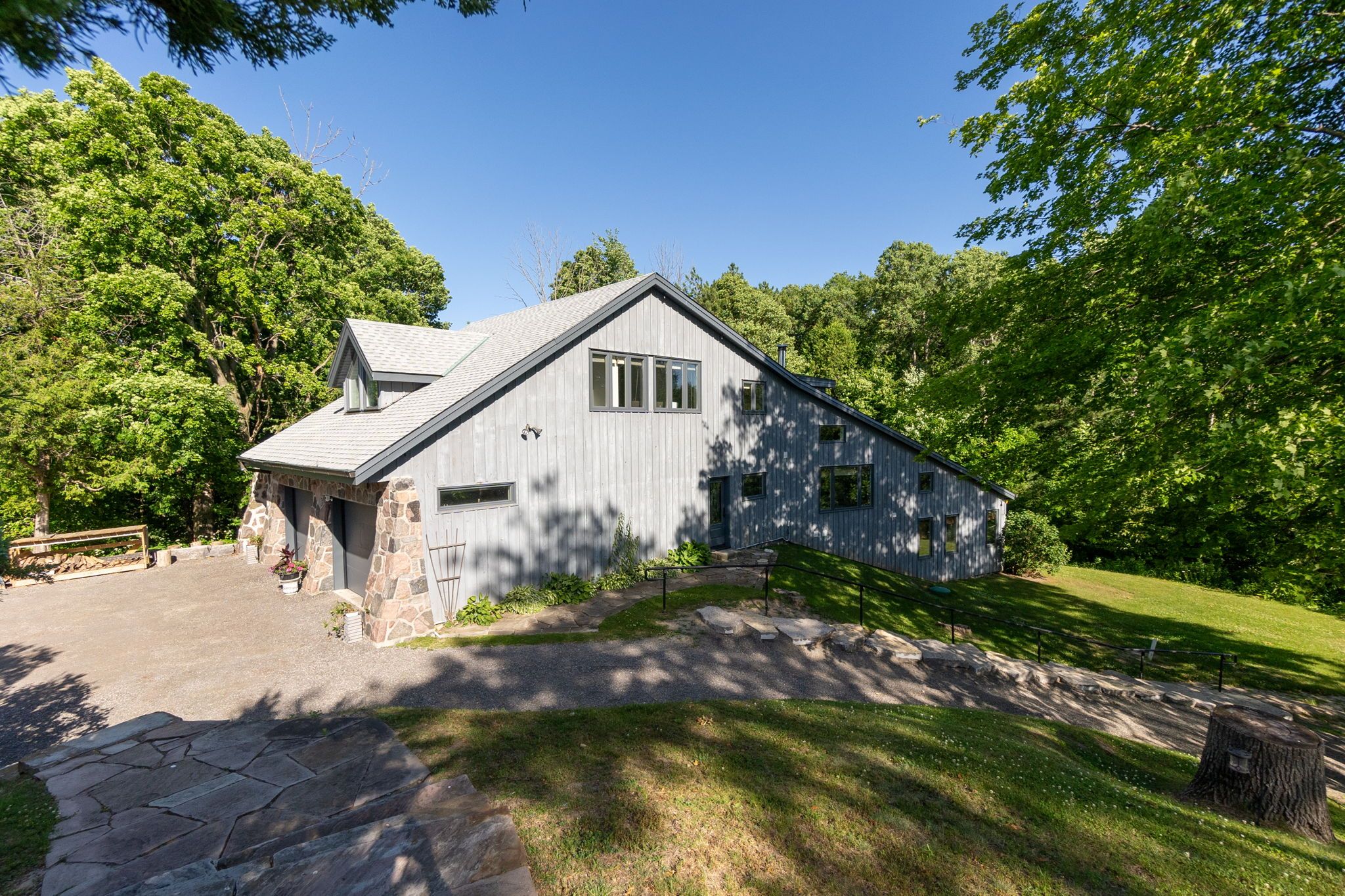 Welcome to an extraordinary estate tucked away behind welcoming stone pillars and a winding forested driveway! This is a work of art designed by the legendary Grant Whatmough and Gardiner Cowan, with distinctive Frank Lloyd Wright style of Architecture. This iconic Mid-Century Modern residence is gracefully integrated into 32 acres of majestic land, where nature and architecture exist in perfect harmony. From the moment you approach the stunning entry door, you're drawn into a world of timeless design and serene beauty. This home is lovingly maintained with extensive renovations, while preserving the character and soul of this home, Including Floor-to-ceiling windows bring the outdoors in, Stone fireplaces indoor and out, original stone walls and impressive wood beams throughout. Spanning approximately 5,000 sq ft, the main residence features 6 bedrooms, 7 bathrooms, an office, a meditation room, and a separate nanny suite. Multiple terraces and decks surround the home, offering breathtaking views of the land, and a tranquil lake creating the feel of a private luxury retreat. This property features a rare second home- fully renovated and approximately 3,500 sq ft-offering 3 bedrooms, 4 bathrooms, and a massive loft space! This second home is ideal for an extended family! There is an additional Yoga studio with an outdoor shower! a Detached garage/ workshop, a charming cedar Cabin with Sauna and Cold plunge, a Covered cabana for entertaining or relaxing on the property. This is a once-in-a-lifetime opportunity to own an architecturally significant estate in the prestigious King Township. With unmatched privacy, lush surroundings, and two beautifully appointed homes, this property is truly a timeless work of art. Don't Miss it!