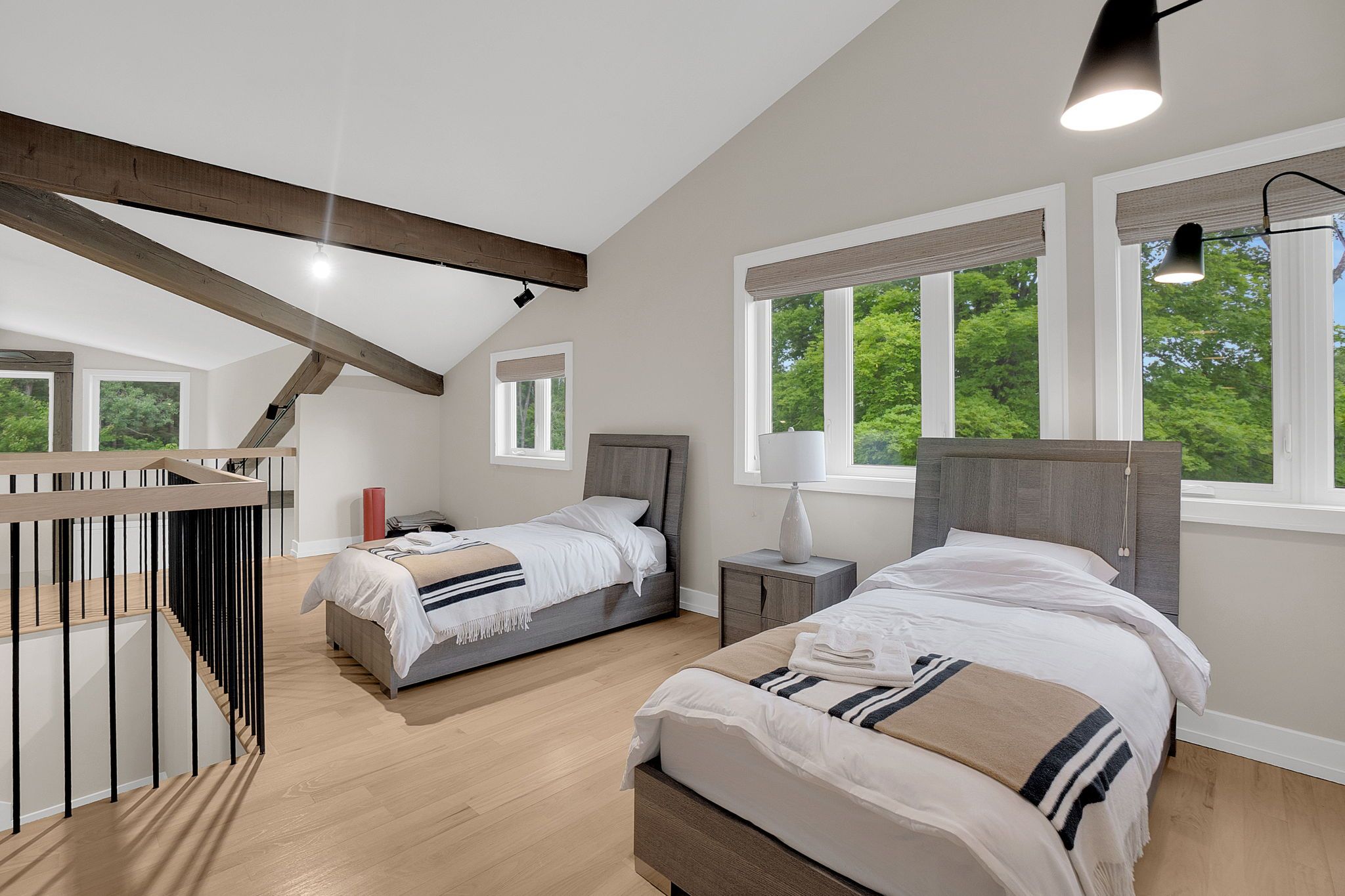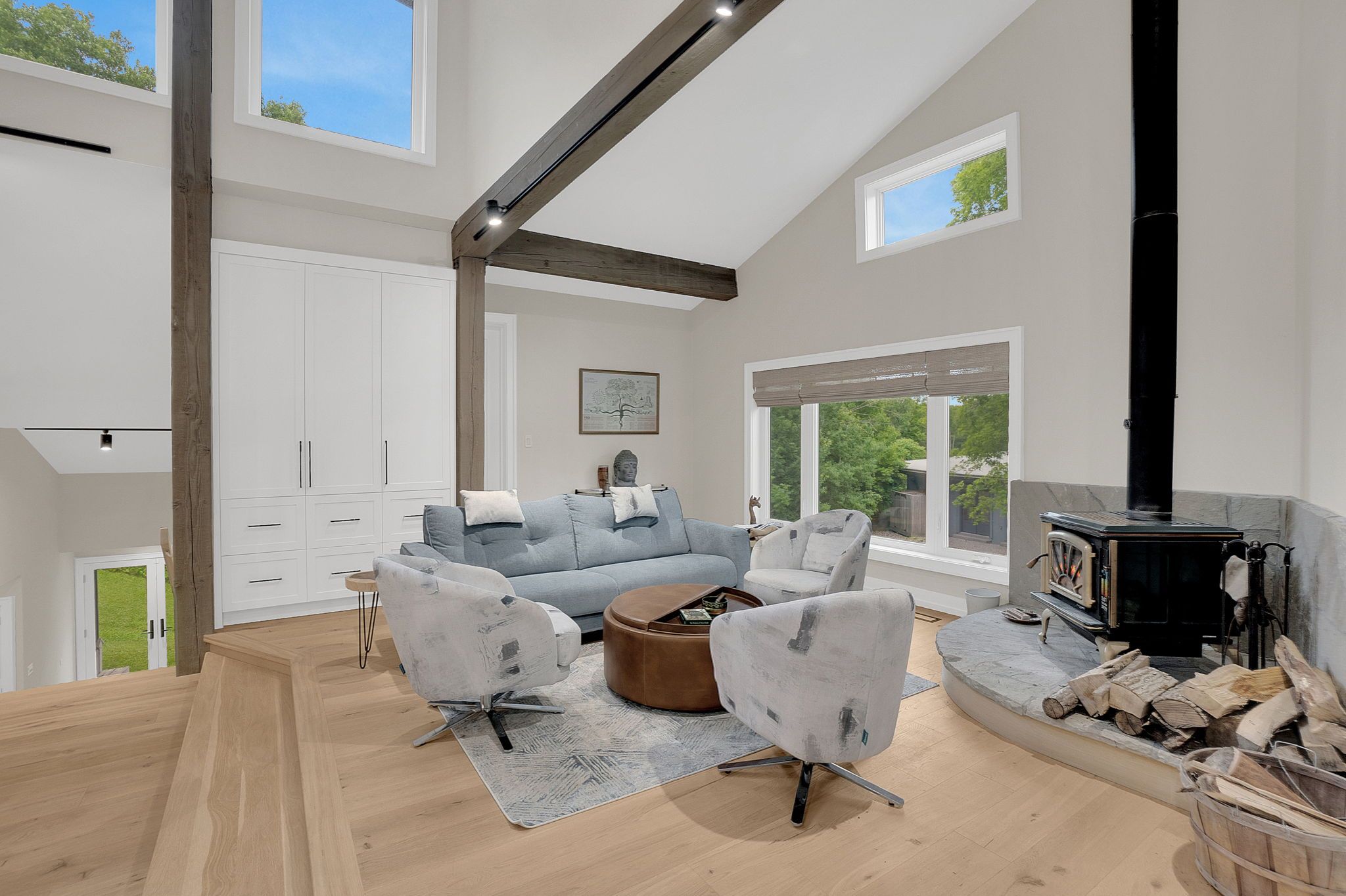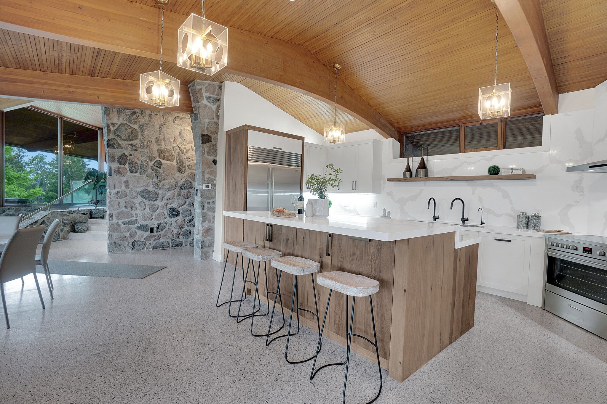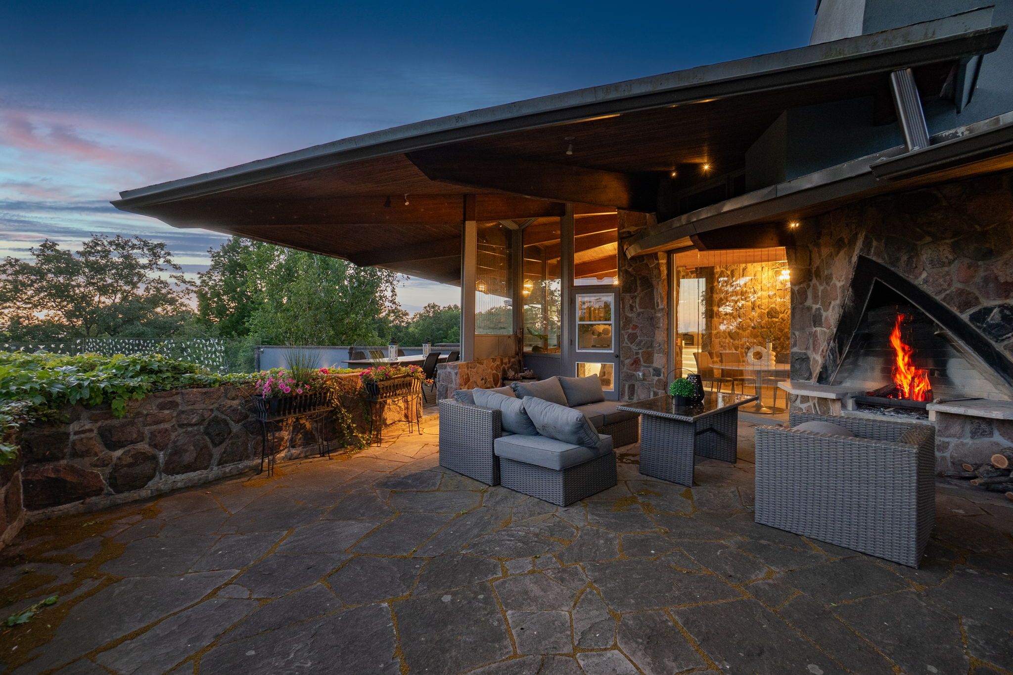 Welcome to an extraordinary estate tucked away behind welcoming stone pillars and a winding forested driveway! This is a work of art designed by the legendary Grant Whatmough and Gardiner Cowan, with distinctive Frank Lloyd Wright style of Architecture. This iconic Mid-Century Modern residence is gracefully integrated into 32 acres of majestic land, where nature and architecture exist in perfect harmony. From the moment you approach the stunning entry door, you're drawn into a world of timeless design and serene beauty. This home is lovingly maintained with extensive renovations, while preserving the character and soul of this home, Including Floor-to-ceiling windows bring the outdoors in, Stone fireplaces indoor and out, original stone walls and impressive wood beams throughout. Spanning approximately 5,000 sq ft, the main residence features 6 bedrooms, 7 bathrooms, an office, a meditation room, and a separate nanny suite. Multiple terraces and decks surround the home, offering breathtaking views of the land, and a tranquil lake creating the feel of a private luxury retreat. This property features a rare second home- fully renovated and approximately 3,500 sq ft-offering 3 bedrooms, 4 bathrooms, and a massive loft space! This second home is ideal for an extended family! There is an additional Yoga studio with an outdoor shower! a Detached garage/ workshop, a charming cedar Cabin with Sauna and Cold plunge, a Covered cabana for entertaining or relaxing on the property. This is a once-in-a-lifetime opportunity to own an architecturally significant estate in the prestigious King Township. With unmatched privacy, lush surroundings, and two beautifully appointed homes, this property is truly a timeless work of art. Don't Miss it!