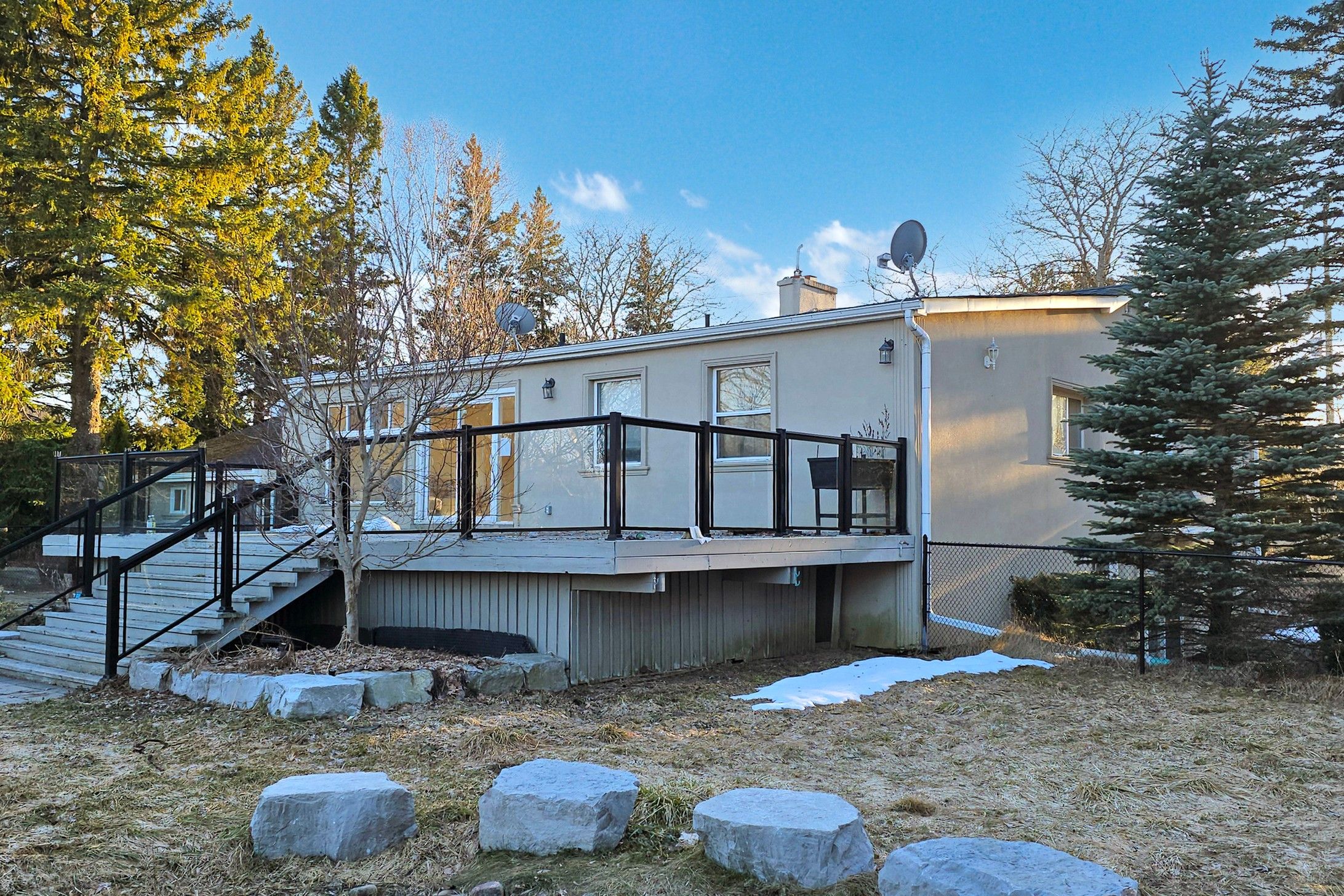 Welcome to 14489 Highway 48 A Private Country Oasis in Stouffville. Discover this extraordinary 3-acre estate, nestled among mature trees and surrounded by luxurious custom homes. This stunning 3-bedroom, 4-bathroom bungalow offers the perfect blend of privacy, modern elegance, and serene country living. Step inside to a spacious open-concept layout, where the living, dining, and family rooms seamlessly flow together ideal for entertaining. Walk out to the expansive deck and enjoy your peaceful backyard retreat. The recently renovated kitchen is a showpiece of both style and function, perfect for family gatherings or quiet mornings. The grand circular driveway sets the tone for this one-of-a-kind property and leads to four garages, providing ample parking and storage. The professionally finished lower level features two walkouts and offers versatile living space, ideal for in-law or nanny accommodations. This meticulously maintained home is more than just a place to live its a lifestyle. Experience the best of country tranquility with all the modern comforts, just minutes from town amenities.