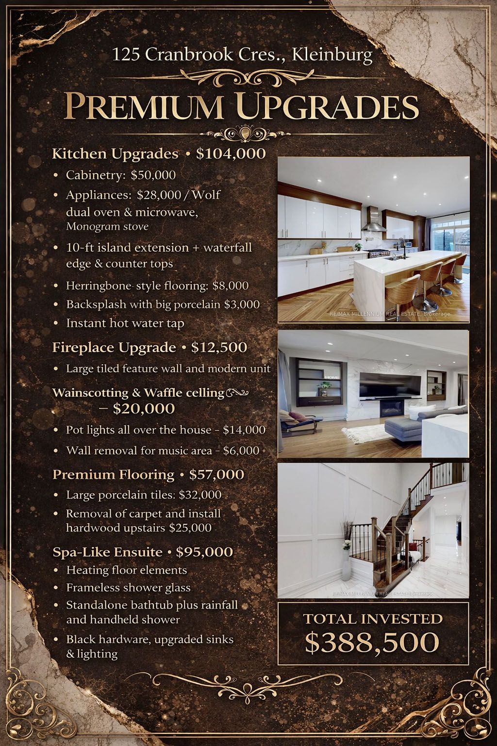 One of the finest 2-car garage detached homes currently available in Kleinburg, this stunning residence is beautifully situated on a premium ravine lot offering breathtaking natural views and ultimate privacy.This exceptional home features 4 spacious bedrooms and 3 full bathrooms on the second floor, including walk-in closets in every bedroom, and an elegant open-to-above foyer filled with natural light from oversized windows throughout the home.The main floor boasts a highly desirable open-concept layout with an office space, a large family room, and a modern gourmet kitchen featuring high-end appliances and a 10-foot oversized island. Walk out to a large deck overlooking the ravine, perfect for entertaining or relaxing in a serene setting.The home is loaded with upgrades including gleaming hardwood and porcelain floors, oak staircase with wrought-iron pickets, soaring high ceilings, and extensive pot lighting throughout.The fully finished basement offers a complete 2-bedroom in-law suite with full bathroom, separate laundry, and a walk-out / separate entrance from the backyard, making it ideal for extended family. Located in a highly sought-after neighbourhood, just minutes from the new Longo's plaza, Highway 427, Vaughan Metropolitan Centre (20 minutes), and Pearson Airport (15 minutes) - this home offers unmatched convenience and lifestyle.A truly rare offering combining luxury, space, income potential, and an unbeatable ravine location - GOLD PARK built this is a must-see home.