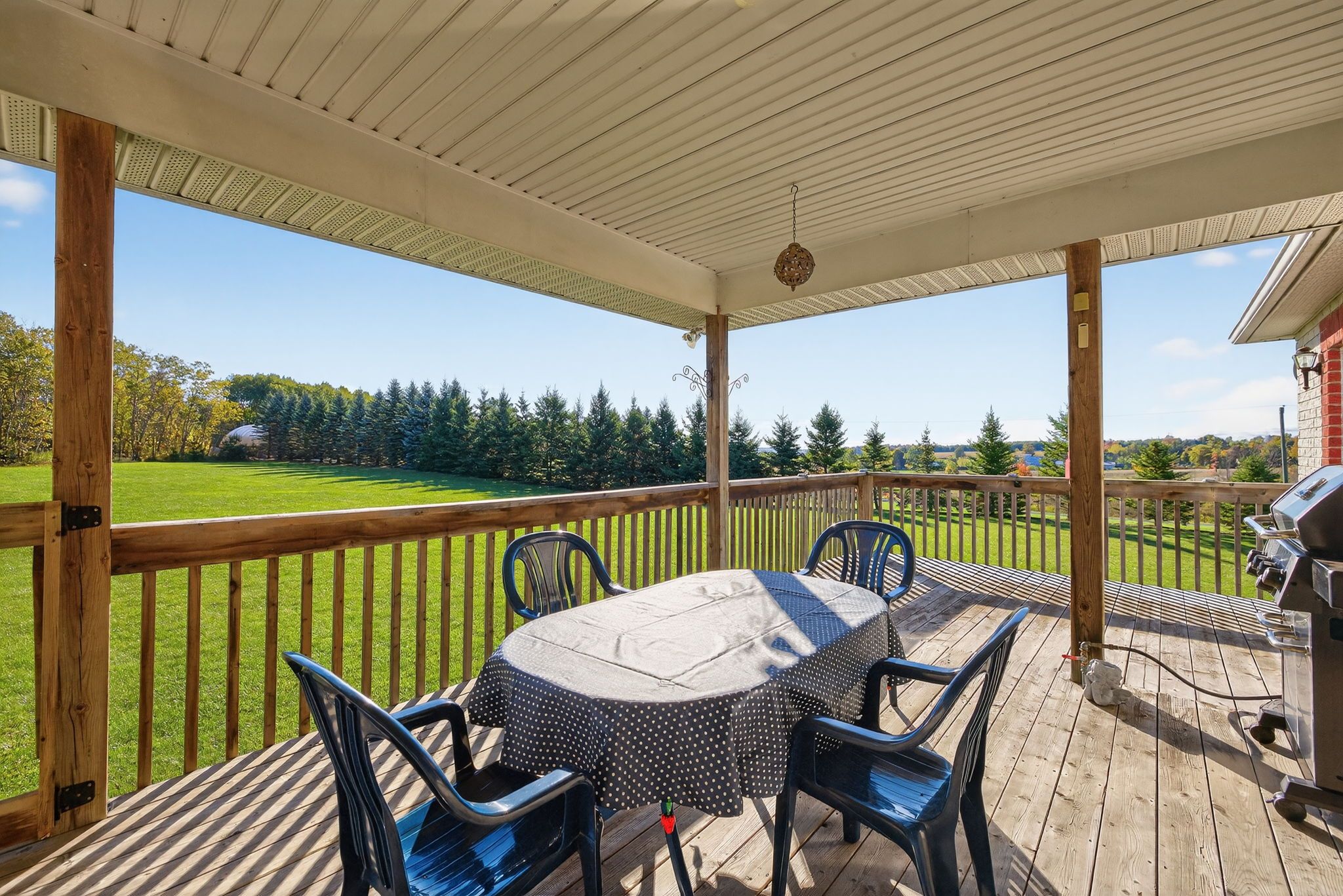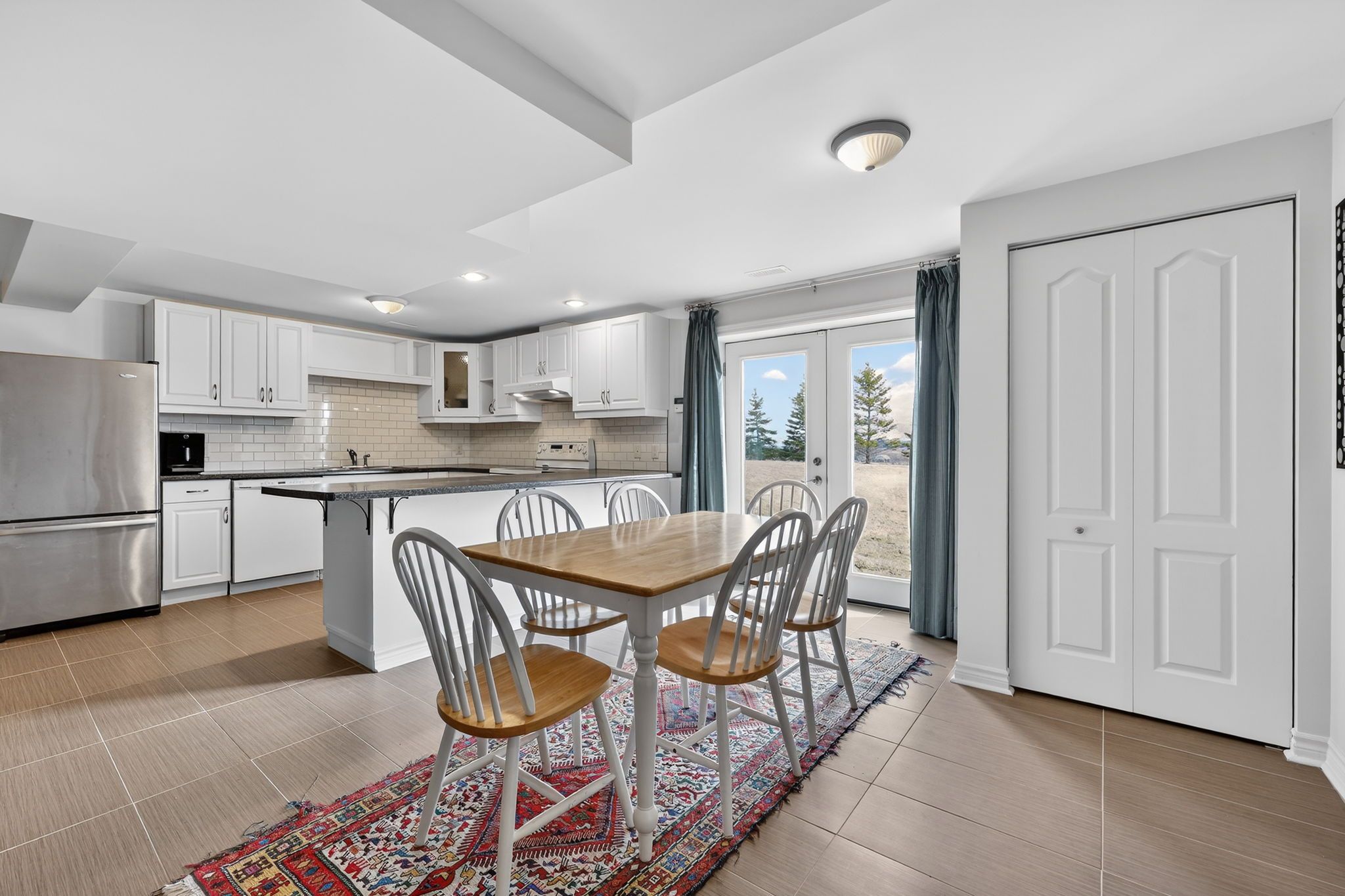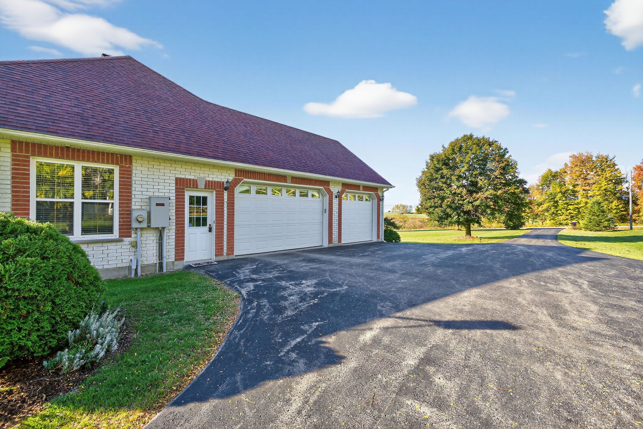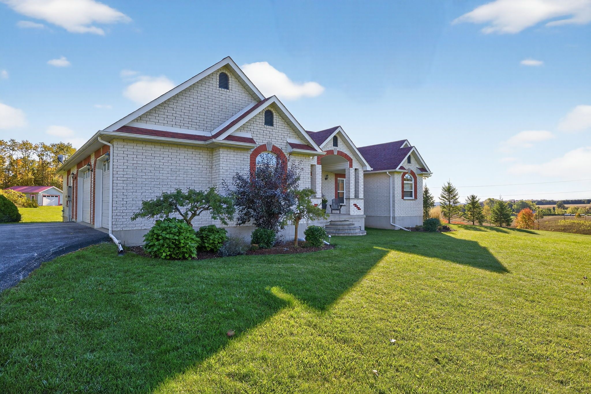 Set on a picturesque 10-acre country lot at the end of a quiet, paved dead-end road, this well-maintained bungalow offers versatility and privacy. A paved driveway leads to the 2.5-car garage with interior access, providing ample space for vehicles, storage, and hobbies. For those needing additional workspace, the separate workshop adds incredible flexibility. Inside, the home features a thoughtfully designed layout ideal for families of all sizes or multi-generational living. The main floor offers 3 spacious bedrooms and 3 bathrooms, including a primary suite with its own walkout and 5-piece ensuite. The bright eat-in kitchen is perfect for everyday living and entertaining, complete with a walkout to the outdoors where you can enjoy peaceful rural views. The fully finished basement expands the living space with 2 additional bedrooms, a bathroom, and a second kitchen and Laundry-creating a self-contained apartment with its own walkout. Additional highlights include a full backup generator for peace of mind, central vacuum and high-speed internet. The shingles were updated in 2021. 200 Amp electrical service.