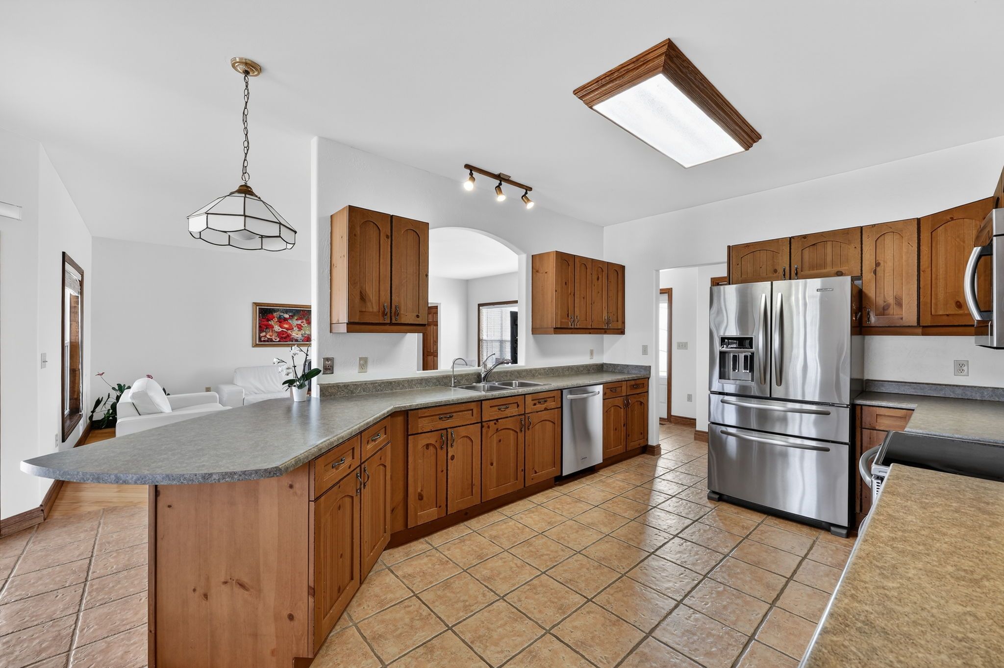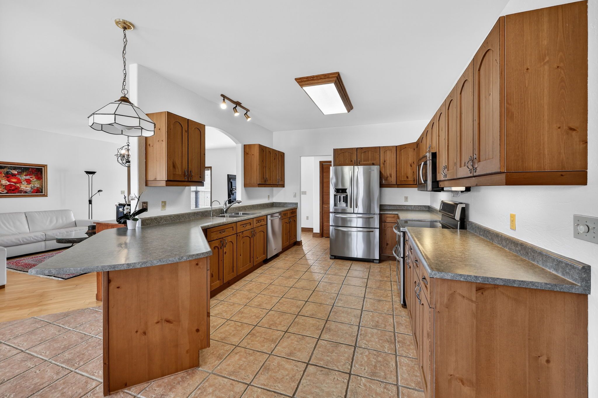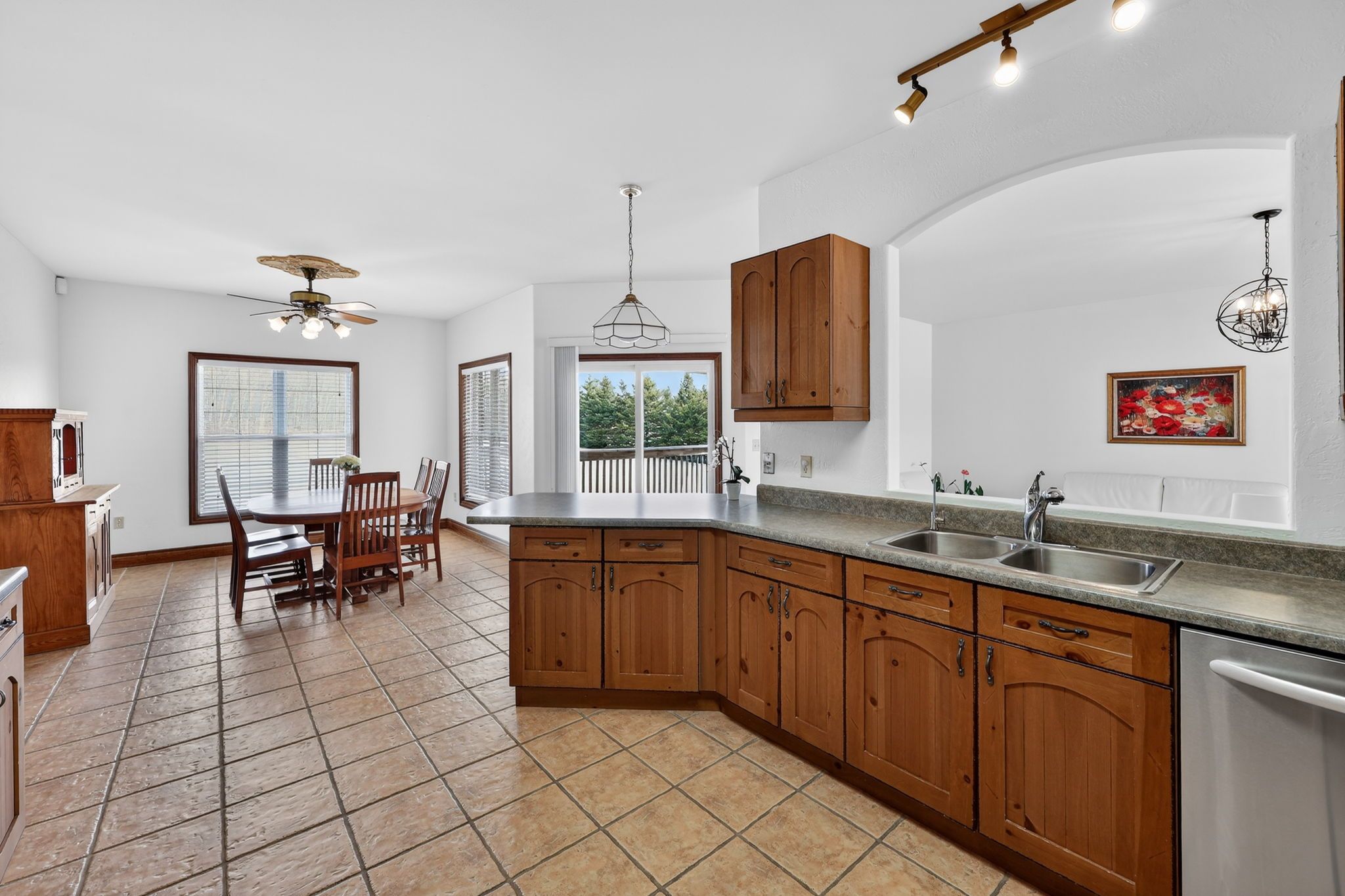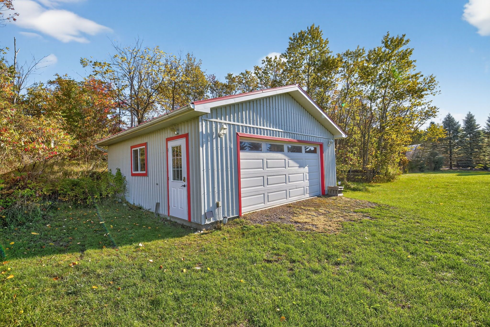 Set on a picturesque 10-acre country lot at the end of a quiet, paved dead-end road, this well-maintained bungalow offers versatility and privacy. A paved driveway leads to the 2.5-car garage with interior access, providing ample space for vehicles, storage, and hobbies. For those needing additional workspace, the separate workshop adds incredible flexibility. Inside, the home features a thoughtfully designed layout ideal for families of all sizes or multi-generational living. The main floor offers 3 spacious bedrooms and 3 bathrooms, including a primary suite with its own walkout and 5-piece ensuite. The bright eat-in kitchen is perfect for everyday living and entertaining, complete with a walkout to the outdoors where you can enjoy peaceful rural views. The fully finished basement expands the living space with 2 additional bedrooms, a bathroom, and a second kitchen and Laundry-creating a self-contained apartment with its own walkout. Additional highlights include a full backup generator for peace of mind, central vacuum and high-speed internet. The shingles were updated in 2021. 200 Amp electrical service.