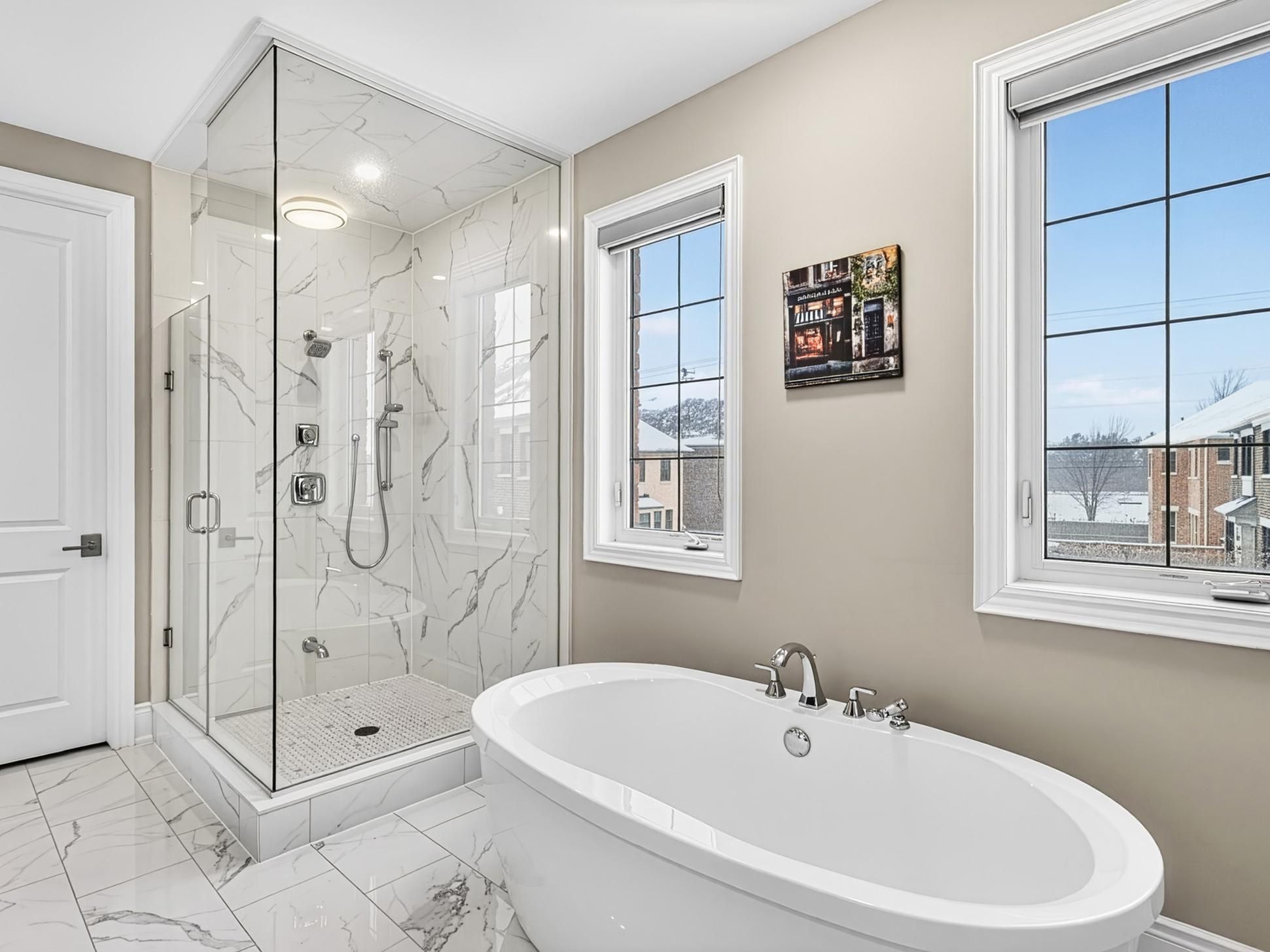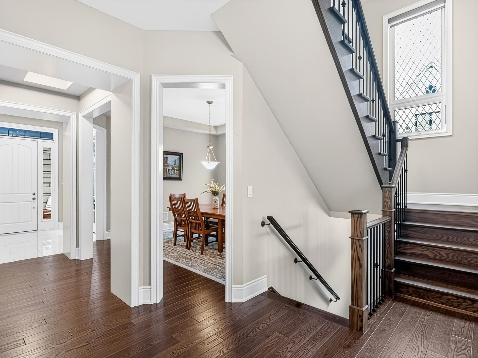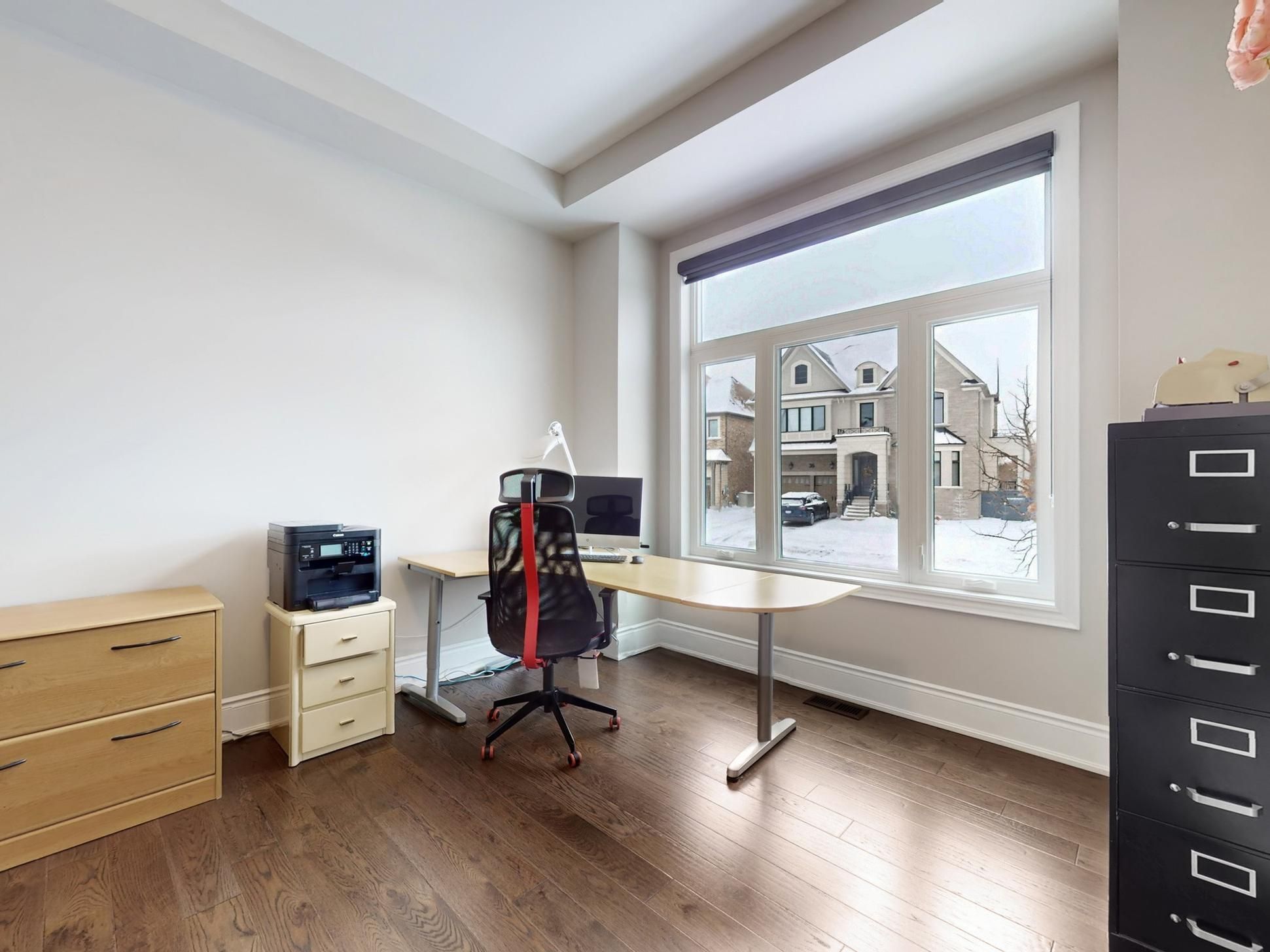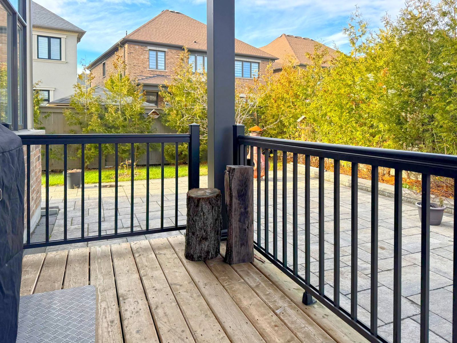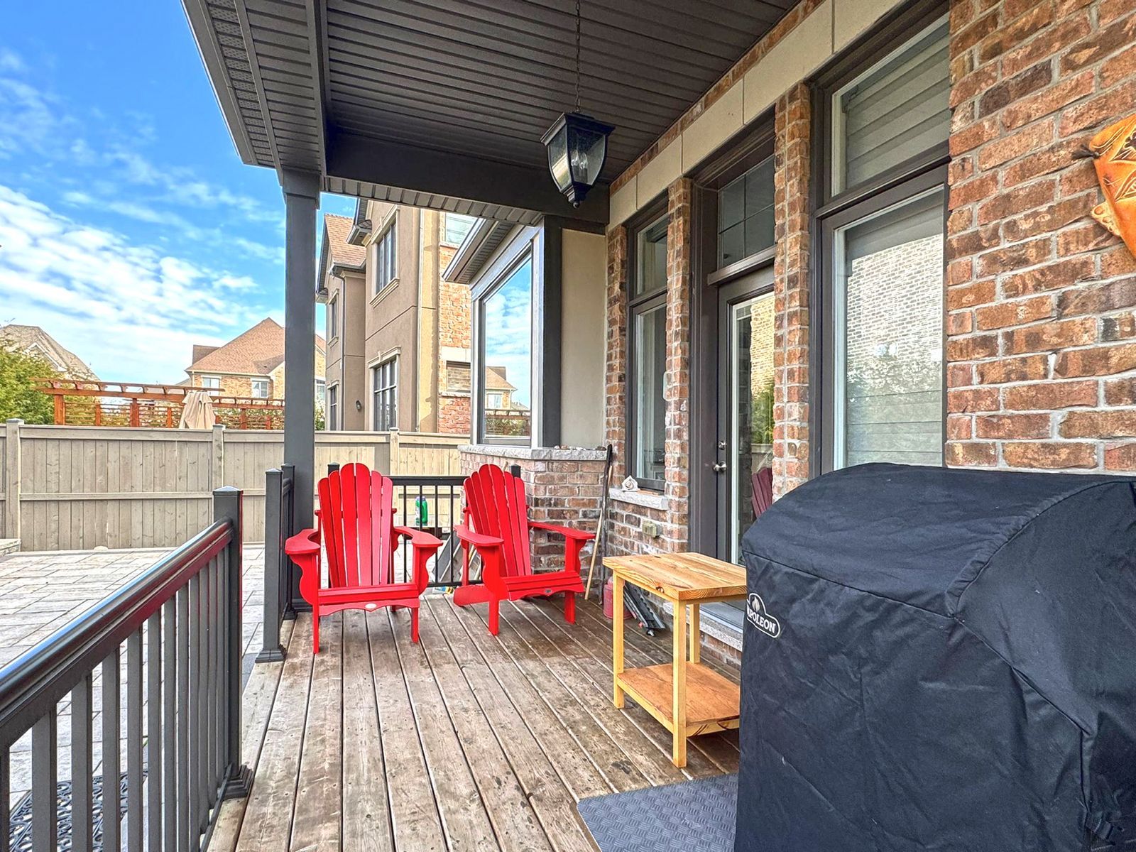 Luxury 3,655 Sq.Ft. Executive Residence in Prestigious King City. This stunning all-brick home offers an exceptional layout with 10-ft ceilings on the main floor, 9-ft ceilings on the second floor, hardwood flooring, smooth and coffered ceilings, upgraded trim, and an elegant oak staircase with black metal pickets. A private main-floor office with French doors, forest views and a stone mantle fireplace creates an ideal work-from-home retreat. The formal dining room flows into the open-concept living and family rooms, perfect for entertaining. The chef-inspired kitchen features quartz countertops, marble backsplash, extended custom cabinetry, a large centre island with double sink and premium Thermador appliances. A garden door leads to a covered veranda, creating a beautiful indoor-outdoor connection.The second level offers four spacious bedrooms, including a luxurious primary retreat with a spa-like 5-piece ensuite and his-and-hers walk-in closets. Bedroom 2 includes a private 3-piece ensuite, while bedrooms 3 and 4 share a Jack-and-Jill bath. Upgraded laundry room with quartz counters and custom cabinetry. Additional highlights include mudroom with built-in organizer, cold cellar, natural stone front porch, oversized garage with interior access and driveway for up to 6 cars (no sidewalk).Major upgrades include front and rear interlocking (2021) and Energy Star windows (2022). Quiet family-friendly location minutes to Hwy 400 & 404, GO Station, Villanova College, top-rated schools, parks, trails, library and the new Zancor Recreation Complex.Beautifully maintained by the original owners. A truly exceptional home in one of King City's most desirable communitie