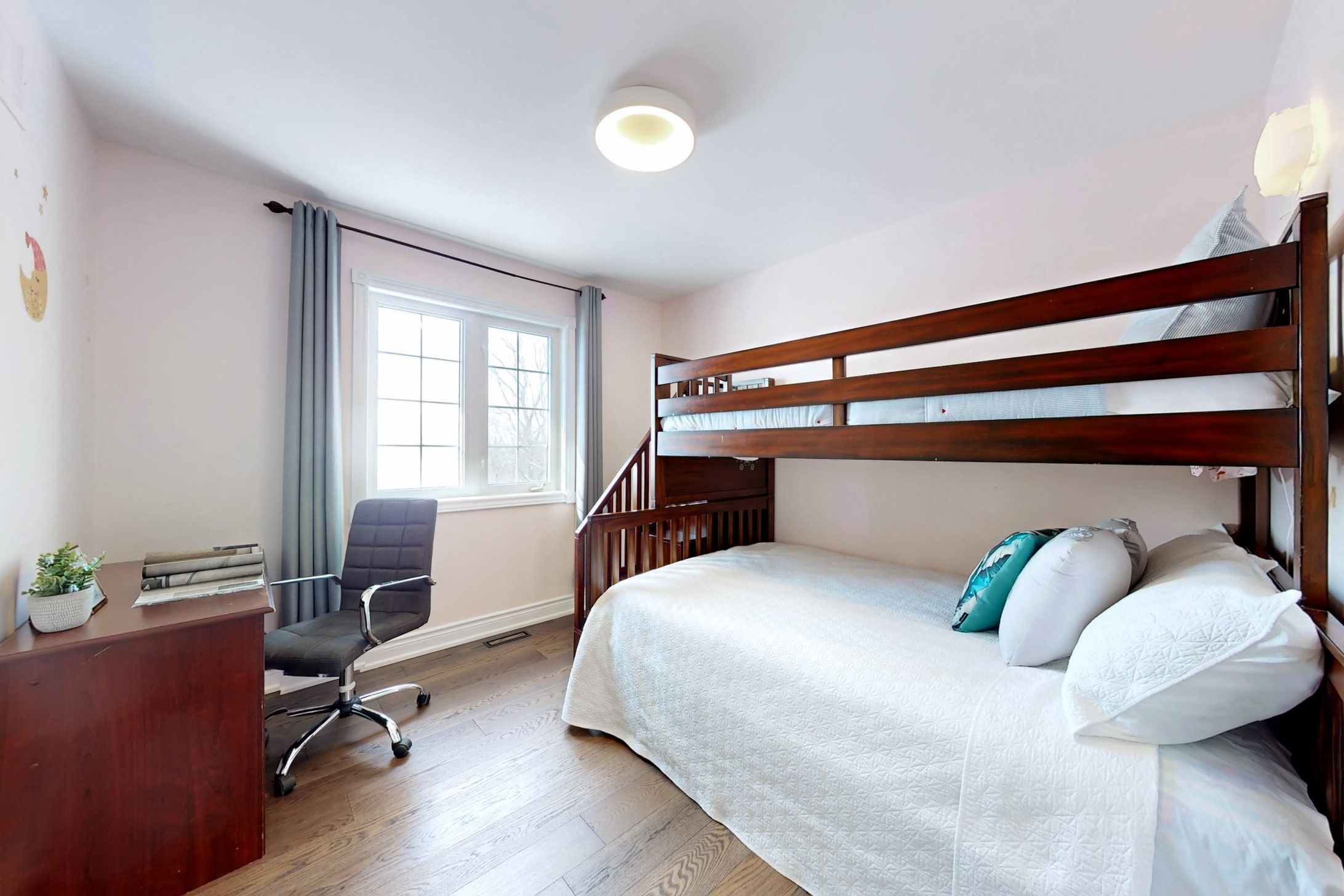 This stunning detached home is nestled at the end of a quiet cul-de-sac, offering exceptional privacy and backing onto lush natural forest. Enjoy peaceful walks to the nearby lake and immerse yourself in nature right at your doorstep. The spacious garage accommodates up to four vehicles and is equipped with a heating system for added comfort during winter months. The main floor features a highly functional layout with generously sized, sun-filled rooms. The breakfast area opens onto a large backyard deck-perfect for entertaining or relaxing outdoors. A private main-floor office provides ideal space for working or studying from home. The second level offers four spacious bedrooms, including two with their own full ensuite bathrooms. Solid hardwood flooring runs throughout the home, adding warmth and elegance. The primary bedroom overlooks the serene backyard and surrounding forest, creating a truly picturesque retreat. The fully finished basement provides excellent additional living space for work or leisure and includes a dedicated play area thoughtfully designed for children. A full bathroom and heated tile flooring add extra comfort and convenience. The laundry room is conveniently located on the main floor for everyday ease.Situated on an impressive 59 x 184 ft deep lot, the property features an extended driveway with no sidewalk, allowing parking for up to six additional vehicles. The deep backyard backs directly onto natural forest, offering breathtaking views and ultimate tranquility.Meticulously maintained by the owner, this exceptional home is truly not to be missed!