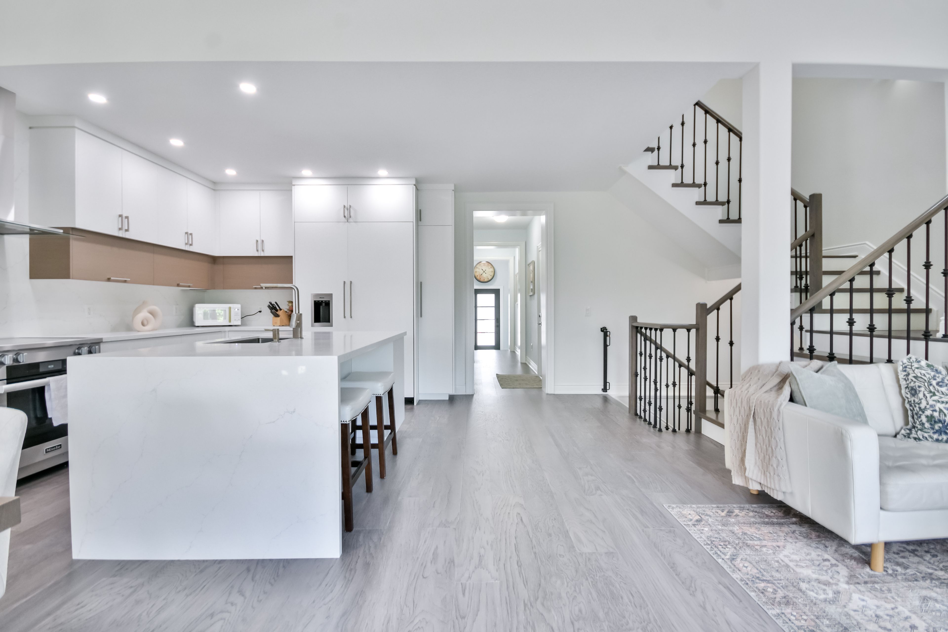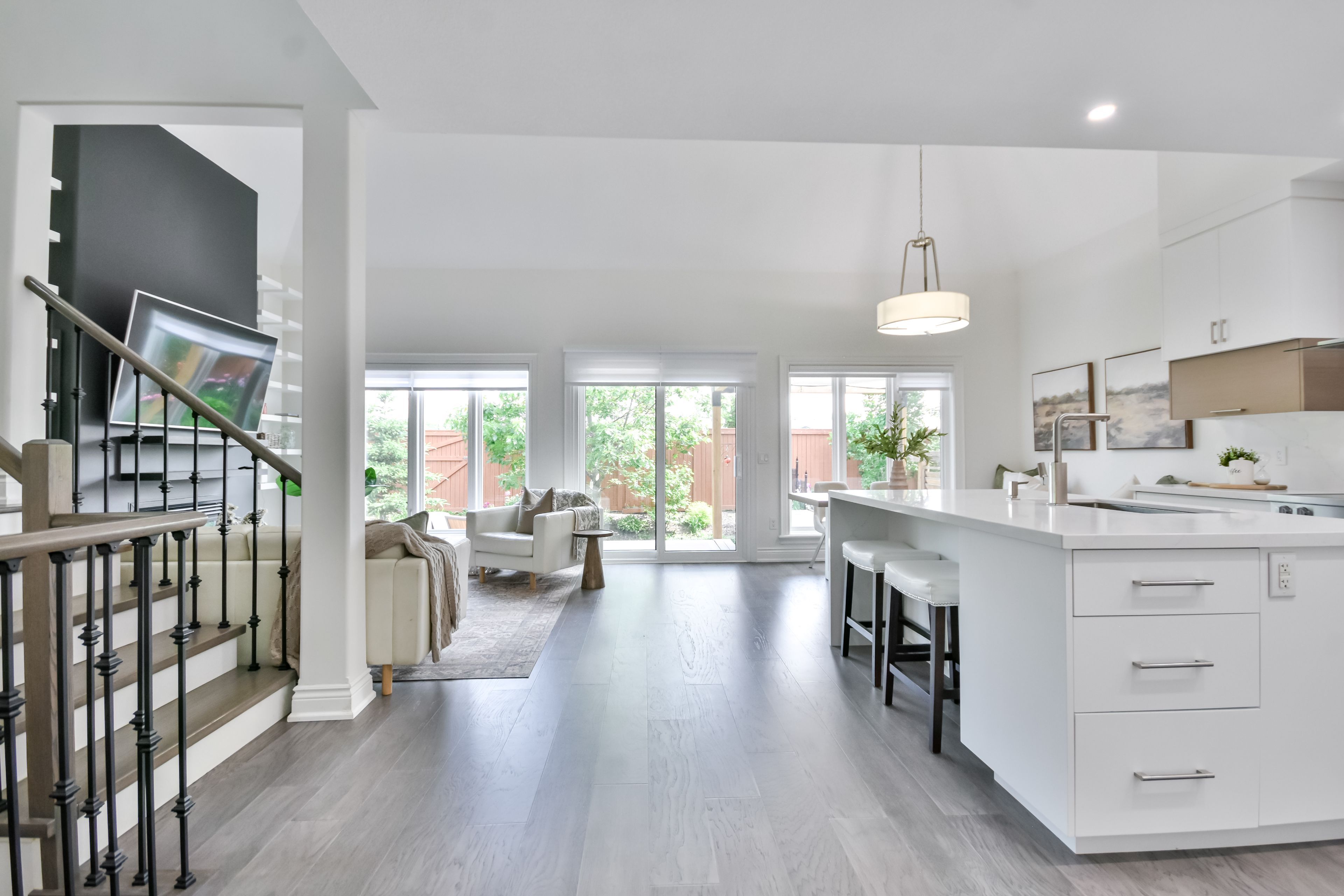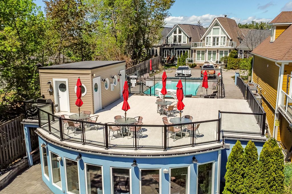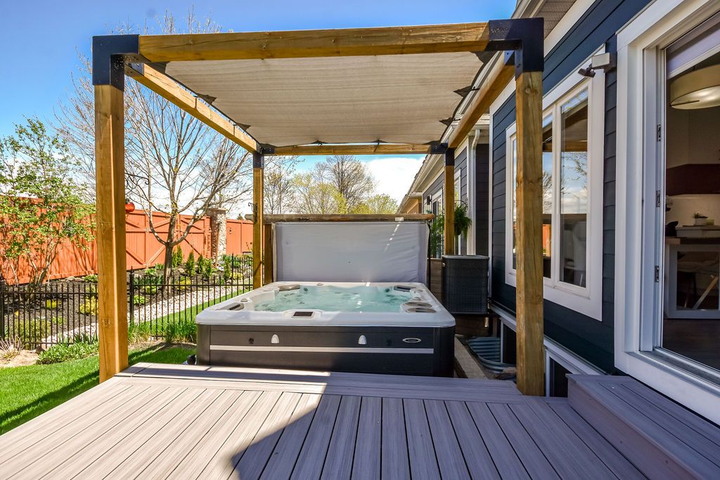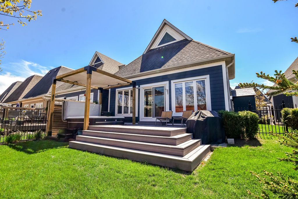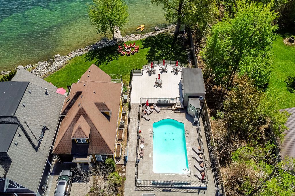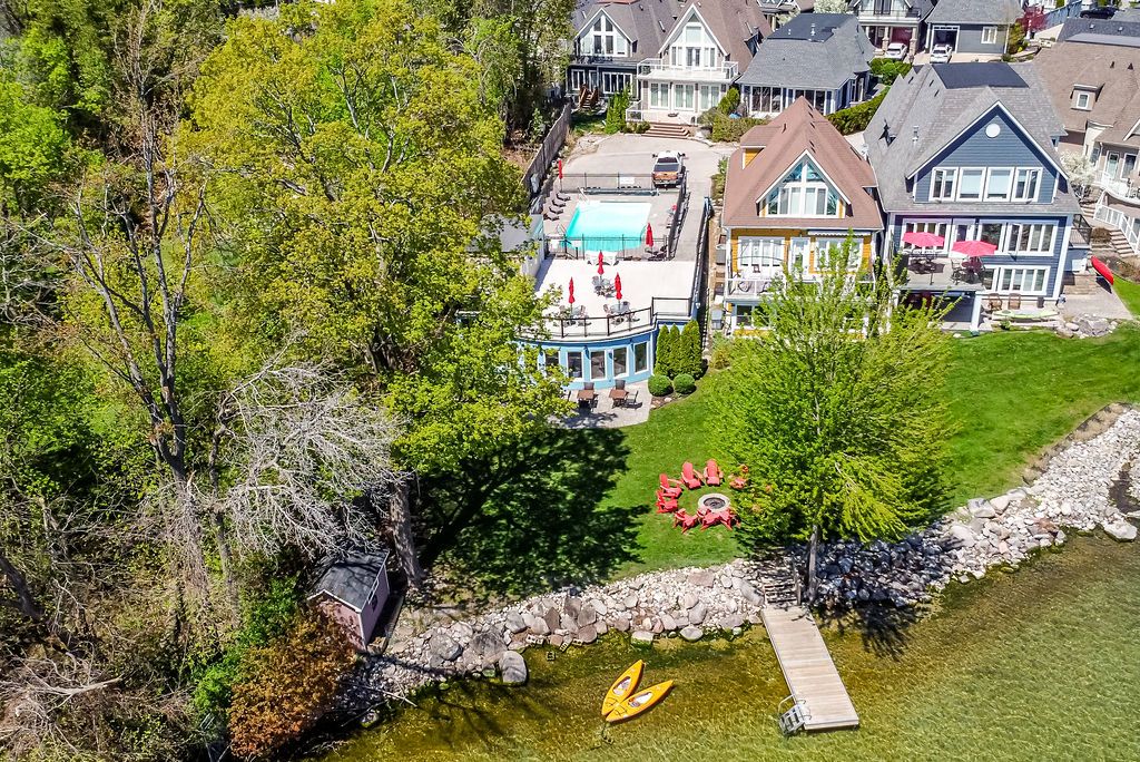 Nestled within an exclusive gated community on the shores of Lake Simcoe in the heart of Orillia, this beautifully updated executive home offers more than 2,250 sq. ft. of fully finished, light-filled living space designed for comfort, style, and effortless entertaining.From the moment you step inside, this thoughtfully renovated 4-bedroom, 3-bathroom residence makes a statement. Soaring cathedral ceilings, rich hardwood floors, and expansive windows create a bright, airy open-concept layout. The gourmet kitchen is truly the heart of the home, showcasing a large centre island, premium Miele stainless steel appliances, quartz countertops, and a striking backsplash. Seamlessly connected to the dining and living areas, it's the perfect setting for gatherings, complete with a cozy gas fireplace and sliding glass doors leading to your private outdoor retreat.Step outside to a maintenance-free backyard oasis featuring a spacious deck, hot tub, full fencing, and a convenient side-yard storage shed - ideal for relaxing or hosting all summer long.Designed with flexibility in mind, the main floor offers a generous bedroom with semi-ensuite access. Upstairs, the loft overlooks the living space below and provides the perfect home office or guest retreat, along with two additional bedrooms and a full bath. Both the main and second floors are enhanced with motorized window coverings for added comfort and convenience.The fully finished lower level expands your living options with a large recreation room, dedicated laundry area, home office, fourth bedroom, third full bathroom, and abundant storage space.Enjoy freehold ownership with common element fees of $349/month, granting access to the Lakeside Clubhouse amenities including a saltwater pool, fitness centre, games room, full kitchen, and private lake access - perfect for morning swims or sunset paddles. Steps to walking trails and parks, this lakeside community offerspeaceful living and an active lifestyle.