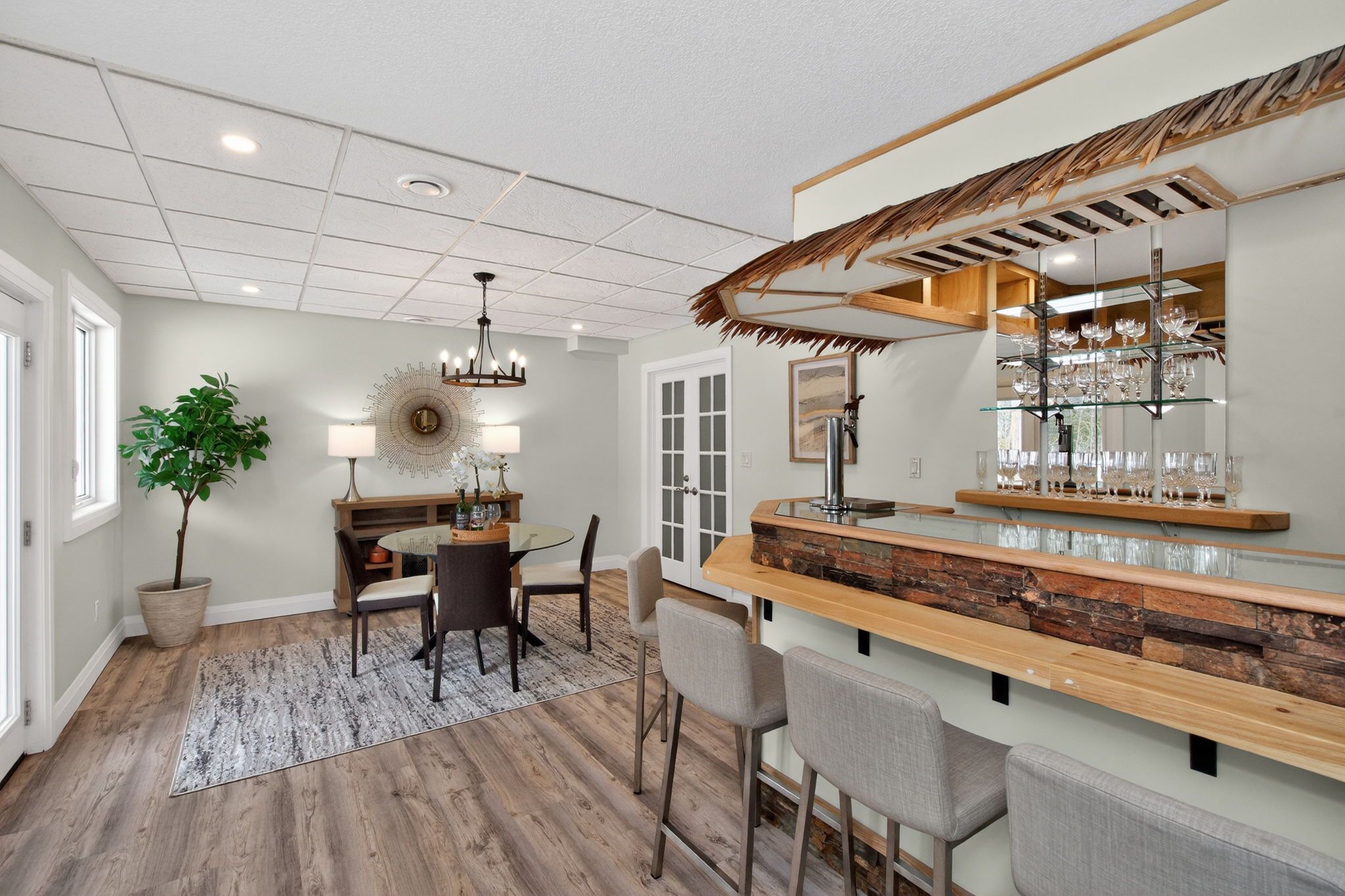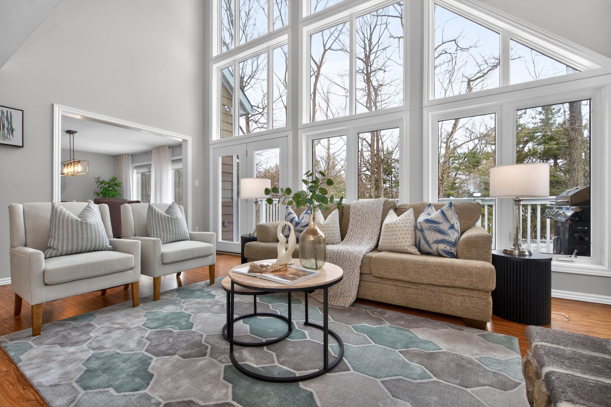 Tucked Away On A Quiet Court Where Forest Meets Fresh Air - A Lifestyle Retreat. Just A 5 Minute Walk To Georgian Bay Beaches (Public Access @ 123 Sawlog Point Rd). Situated On Generous 0.30-Acre Lot (Flat Backyard), Providing Exceptional Privacy, Space, & Room To Breathe. Built In 2008, The Home Features 4+1 Bedrooms & 4 R.E.N.O.V.A.T.E.D Bathrooms(2022), Making It Ideal For Retirees, Families, Multigenerational Living- Ample Space Approx 1800 Sq Ft P.L.U.S - Finished *WALKOUT* Basement(2023) W 1,100 Sq Ft! (2800 Sq Ft TOTAL -MPAC).Renovated Open-Concept Kitchen (2016/2026)W/ Newer Stainless Steel Appliances(Frigidaire Gallery French Fridge = 2016/ Gas Range =2026) Center Island + Seating & Quartz Counters. Huge Dining Area W/ Seating For 8! Family Rm W/ Soaring 27-Foot Cathedral Cedar Ceilings. Expansive Floor To Ceiling Windows Floods The Space With Natural Light, While A Dramatic Floor-To-Ceiling Stone, Wood-Burning Fireplace W/ Napolean Insert, Creates A Warm & Inviting Focal Point. The Main Floor Offers Exceptional Functionality W/ **MAIN FLOOR BEDROOM + 3 PEICE BATH**(See Floor Plan) Providing Stair-Free Living Options, Along W/ Main-Floor Laundry & Direct Access To 458 Sq Ft Double-Car Garage. Hardwood, Laminate, & Ceramic Flooring Flow Throughout-No Carpet. The Finished *WALK- OUT* Basement Adds Valuable Living Space, Featuring: Family Room + Games Room (THINK POOL TABLE!), Wet Bar W/ Beer Tap Hookup+ Dining Area, Bedroom & Full Bathroom-Perfect For Guests Or In Laws! Step Outside To A Fully Fenced Backyard W/Wood Deck + Covered Porch & Firepit Area , Ideal For Summer Gatherings. Located Just North Of The GTA - Perfect Balance Of Tranquility & Convenience. Waterfront Trails & Public Beaches Within Walking Distance, W/ Awenda Provincial Park, Marinas, & Everyday Amenities 15 Min Away! Municipal Water & Natural Gas! 200 Amp Service! House Presented as Fully Furnished So You Can Truly Envision The Space! (Only Pool Table & Outdoor Pictures Virtually Altered)