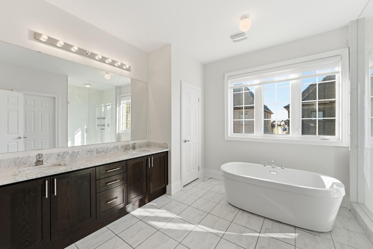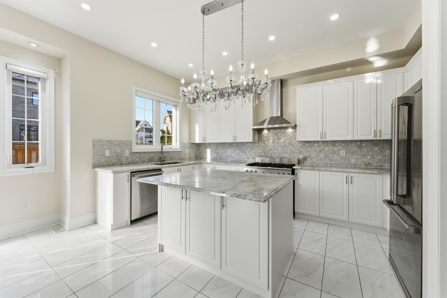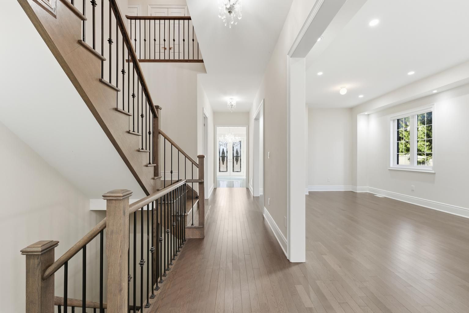Luxury 5-bed, 5-bath home in Vales of the Humber with 4,163 sq ft above grade. Features include a grand open-to-above foyer, 10-ft main floor ceilings, 9-ft ceilings on 2nd & basement, gourmet kitchen with tea/coffee prep area, spacious family room, and office/library. All bedrooms have ensuites. Primary includes spa-style bath & W/I closet. Exterior offers full pot lighting, tandem 3-car garage with 14-ft ceiling & side entrance, no sidewalk, interlocked driveway, and landscaped backyard with fire pit. Two basement entrances, including direct access from the mudroom/laundry-great for future in-law suite potential. Newly built & meticulously maintained. Entire Home!