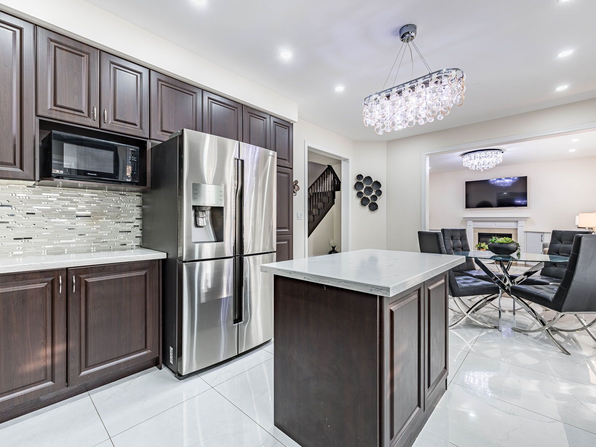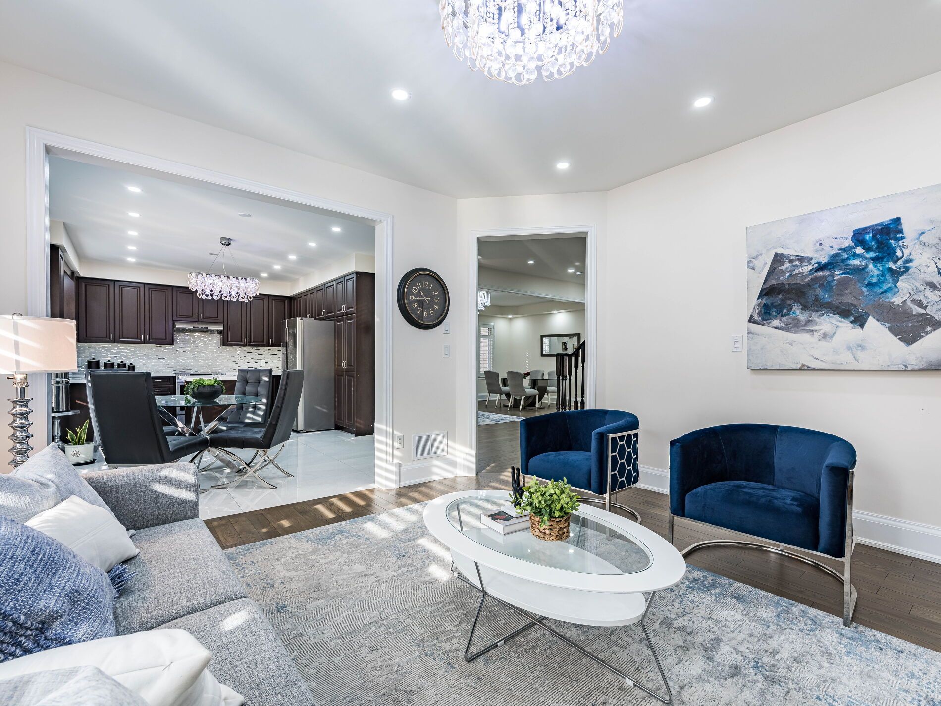 Welcome to this stunning and spacious 5-bedroom home located in a prestigious, family-friendly neighbourhood. Featuring a grand double-door entry, this home showcases elegant 2x4 tiles in the kitchen, powder room, and entry hallway. Gleaming hardwood flooring extends throughout the main living areas, adding warmth and sophistication. The main floor includes a dedicated study with custom office cabinetry, perfect for working from home, along with built-in storage cabinets for added convenience. The chef's kitchen offers a highly functional layout and flows seamlessly into the cozy family room, which opens to the backyard. Here, you'll find a beautiful pergola on a concrete patio-ideal for relaxing or entertaining. The fully finished legal basement features a separate entrance, providing excellent income potential. Additional upgrades include pot lights and newly poured concrete leading to the basement entrance. The primary bedroom offers access to a private Ensuite bathroom, ensuring comfort and privacy. Located directly across from a kids' park and close to schools and major highways, this home is perfectly situated for families. A perfect blend of luxury, comfort, and functionality-don't miss this one!