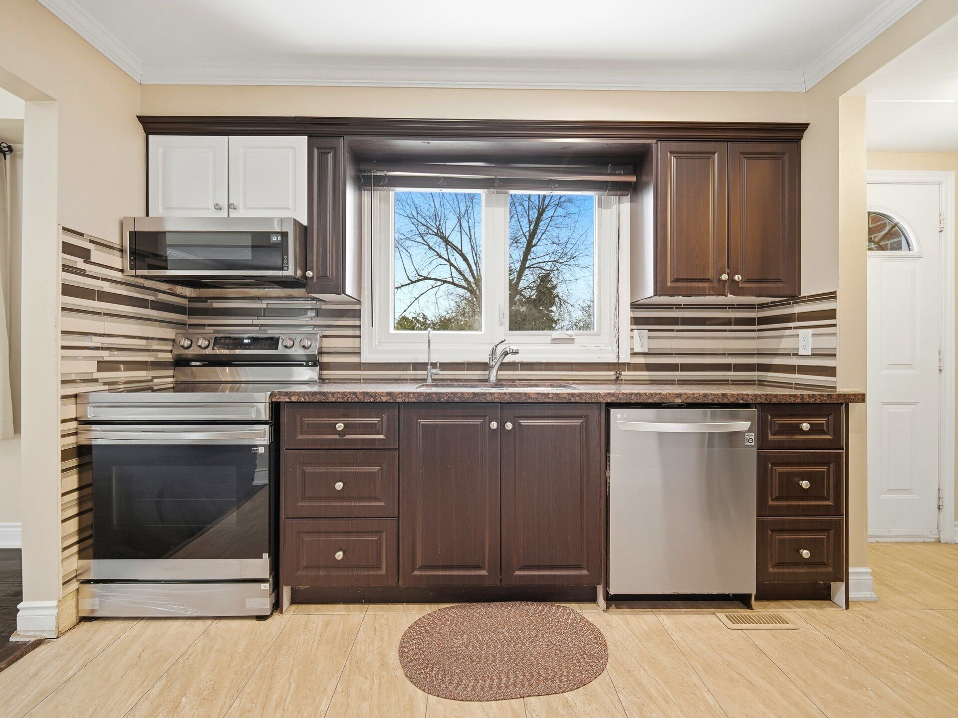 Beautiful 5-bedroom home centrally located on a large lot. This bright, open-concept residence features a modern kitchen with updated dark cabinetry, stylish backsplash, and granite countertops. The home offers 3 washrooms and newer hardwood flooring throughout.Enjoy a separate family room overlooking the spacious backyard perfect for relaxing or entertaining. Conveniently located close to shopping centres and schools. Includes a separate mailbox. Basement is currently used by the owner.