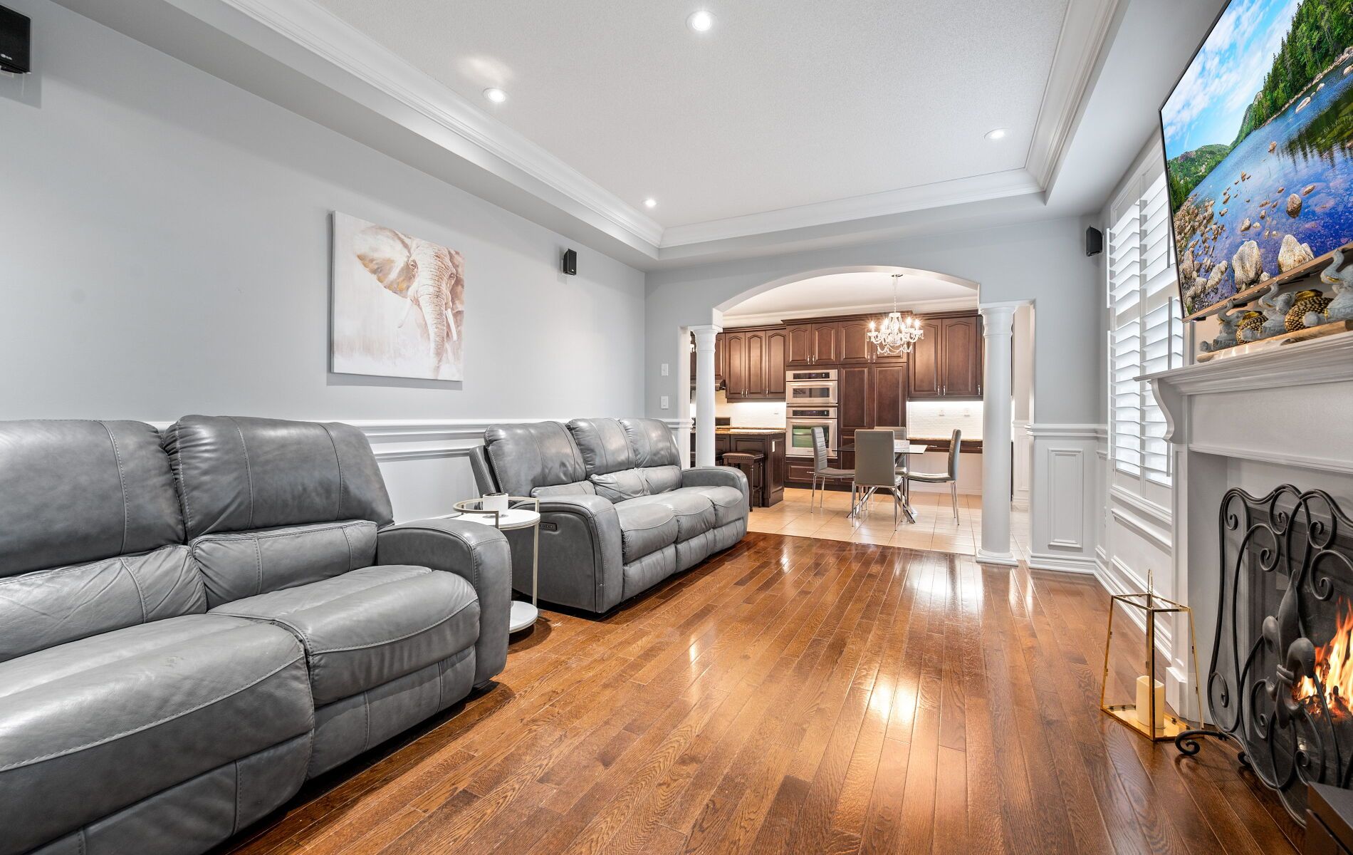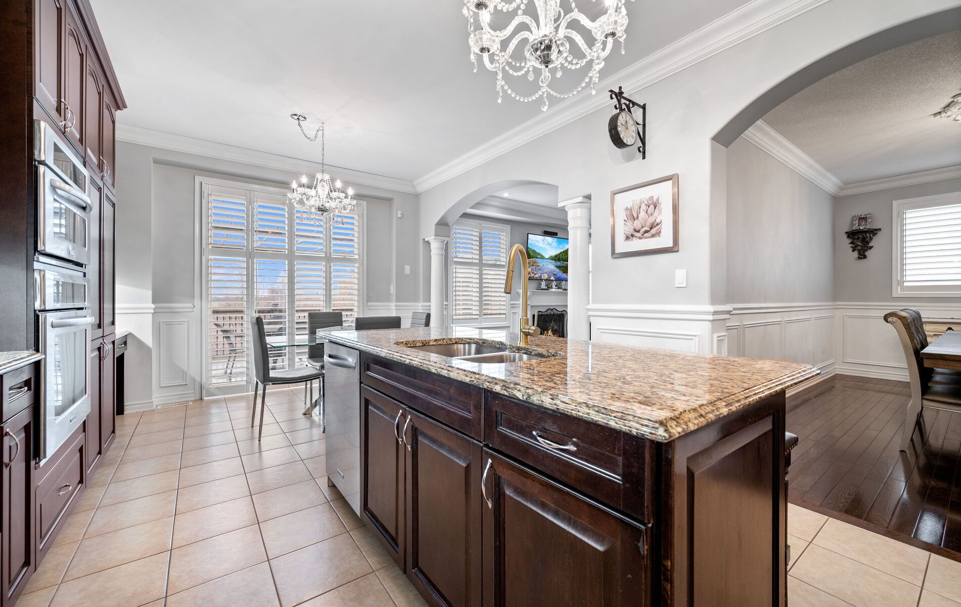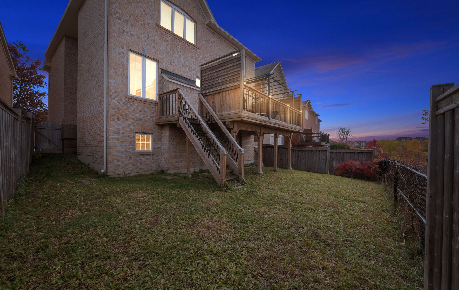 Welcome to Castlemore living at its finest. Offering approximately 3,200 sq ft of finished living space, this stunning home sits on a premium 38 foot pie-shaped ravine lot, 47 feet across the back. Offering total privacy and breathtaking sunset views from the over-sized deck. Inside, hardwood flooring and a chef-inspired kitchen set the tone for refined living. The kitchen features extended cabinetry, a centre island, built-in wall oven and microwave, and a slide-in range, making it perfect for everyday cooking and entertaining alike. Far from a typical builder design, this home offers a warm, thoughtful layout with seamless flow between the inviting family room, elegant formal dining area, and spacious living room that's ideal for gatherings. Upstairs, three generous bedrooms each provide impressive closet space, while the primary suite stands out as a true retreat with dual custom walk-in closets and a spa-like 5-piece ensuite. The fully finished lookout basement expands your living space with 9-foot ceilings, a 3-piece bathroom, kitchenette, custom wall unit, and a separate den. This versatile level functions beautifully as an in-law suite or potential income suite - the possibilities are endless. Every detail has been carefully considered, with thousands invested in premium upgrades including wood crown moulding, wainscotting, shutters, and over $10,000 in crystal light fixtures that elevate each room with timeless elegance. Nestled in a highly desired, family-friendly neighbourhood, you're minutes from Highways 427 and 407, transit, schools, lush parks, trails, shopping, and the outstanding Gore Meadows Community Centre and Library. A rare opportunity to own a truly special home in Castlemore Crossing.