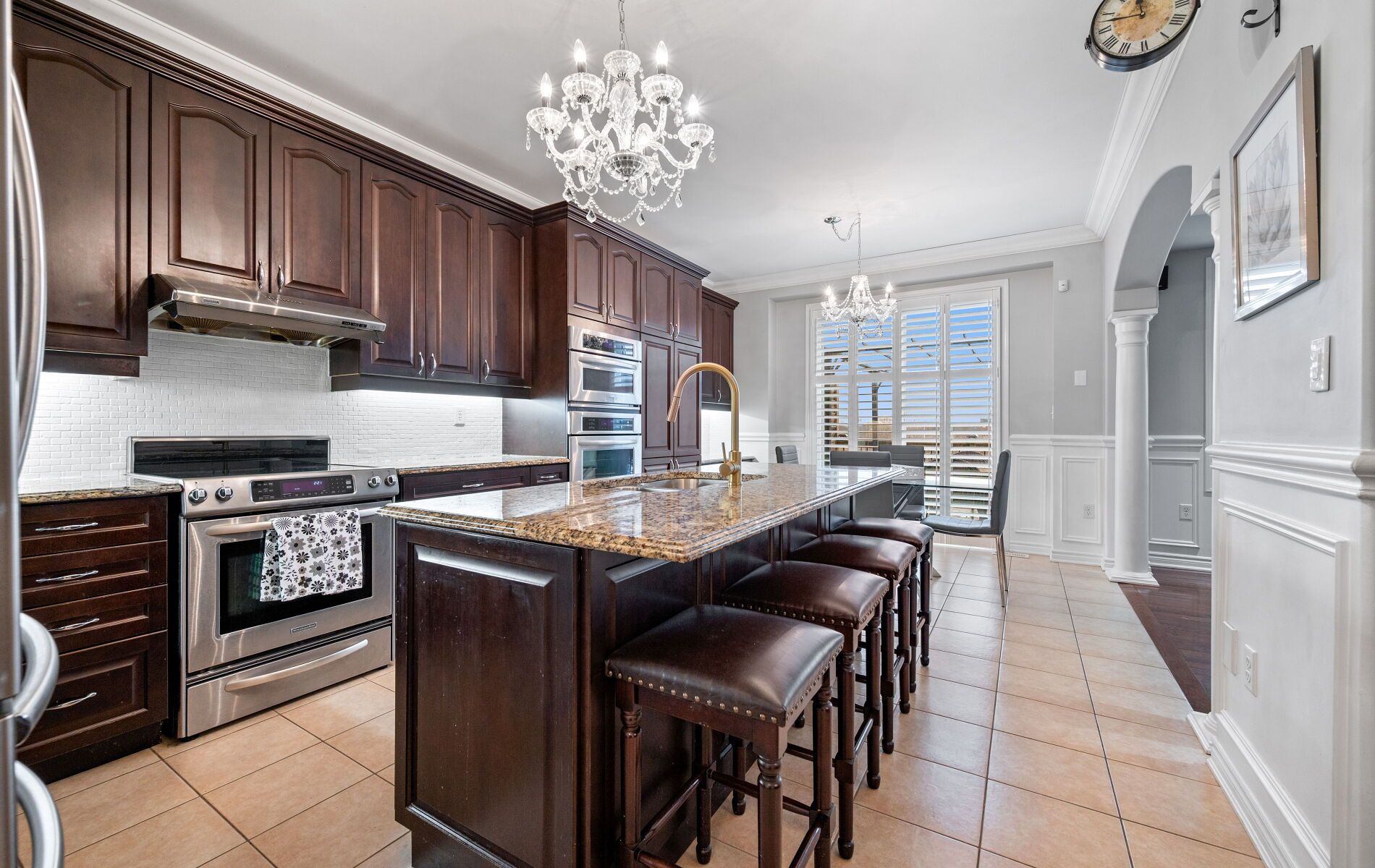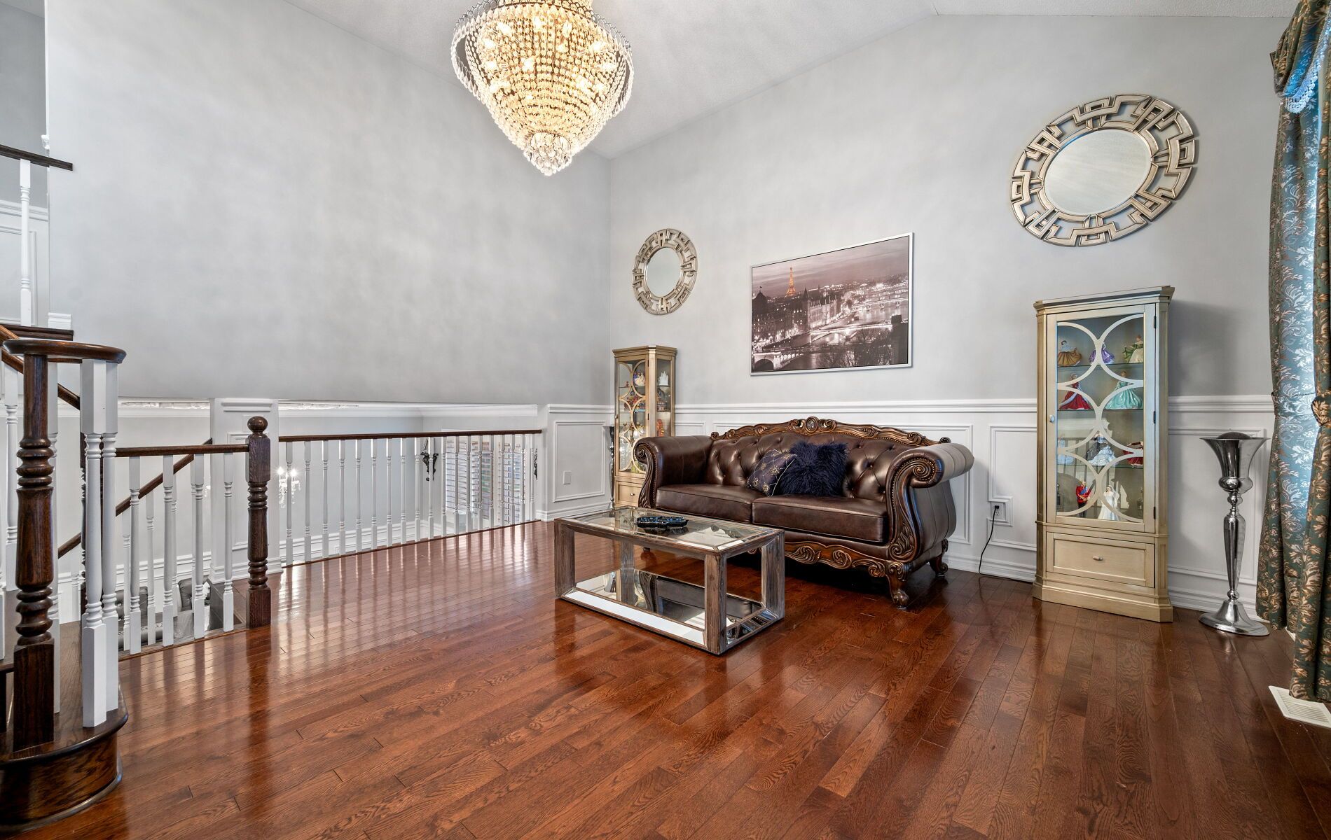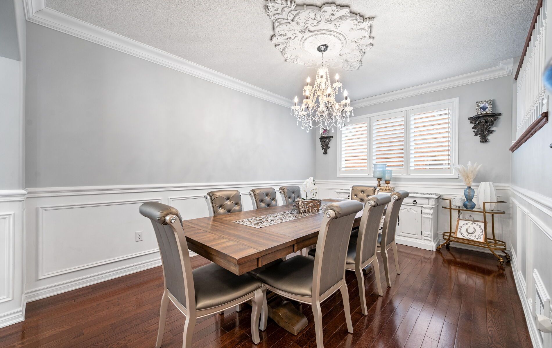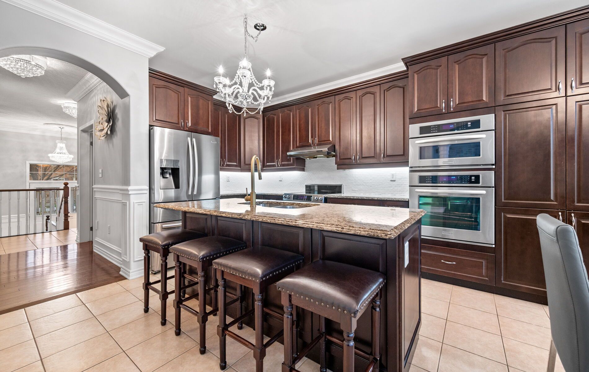 Welcome to Castlemore living at its finest. Offering approximately 3,200 sq ft of finished living space, this stunning home sits on a premium 38 foot pie-shaped ravine lot, 47 feet across the back. Offering total privacy and breathtaking sunset views from the over-sized deck. Inside, hardwood flooring and a chef-inspired kitchen set the tone for refined living. The kitchen features extended cabinetry, a centre island, built-in wall oven and microwave, and a slide-in range, making it perfect for everyday cooking and entertaining alike. Far from a typical builder design, this home offers a warm, thoughtful layout with seamless flow between the inviting family room, elegant formal dining area, and spacious living room that's ideal for gatherings. Upstairs, three generous bedrooms each provide impressive closet space, while the primary suite stands out as a true retreat with dual custom walk-in closets and a spa-like 5-piece ensuite. The fully finished lookout basement expands your living space with 9-foot ceilings, a 3-piece bathroom, kitchenette, custom wall unit, and a separate den. This versatile level functions beautifully as an in-law suite or potential income suite - the possibilities are endless. Every detail has been carefully considered, with thousands invested in premium upgrades including wood crown moulding, wainscotting, shutters, and over $10,000 in crystal light fixtures that elevate each room with timeless elegance. Nestled in a highly desired, family-friendly neighbourhood, you're minutes from Highways 427 and 407, transit, schools, lush parks, trails, shopping, and the outstanding Gore Meadows Community Centre and Library. A rare opportunity to own a truly special home in Castlemore Crossing.
