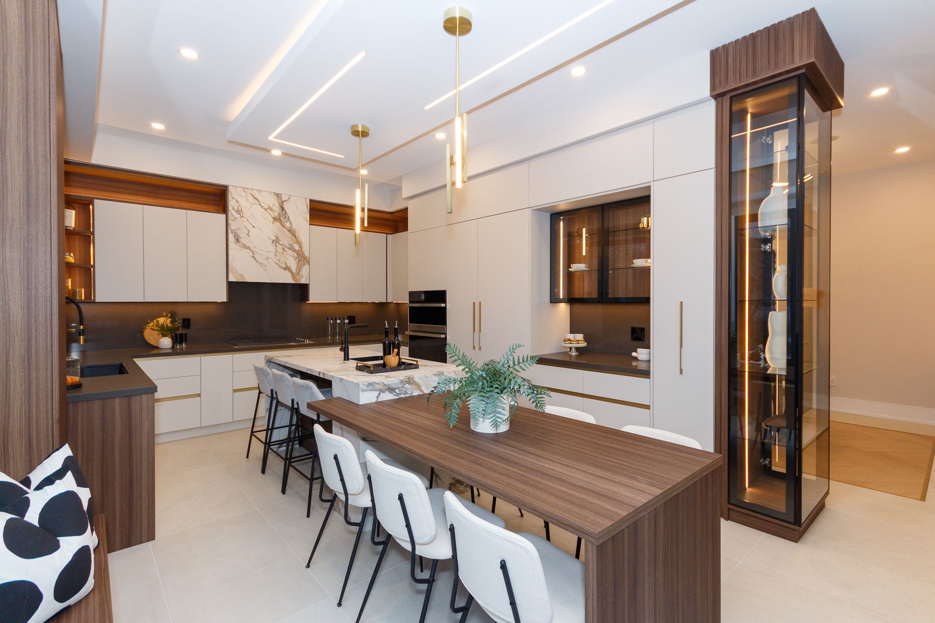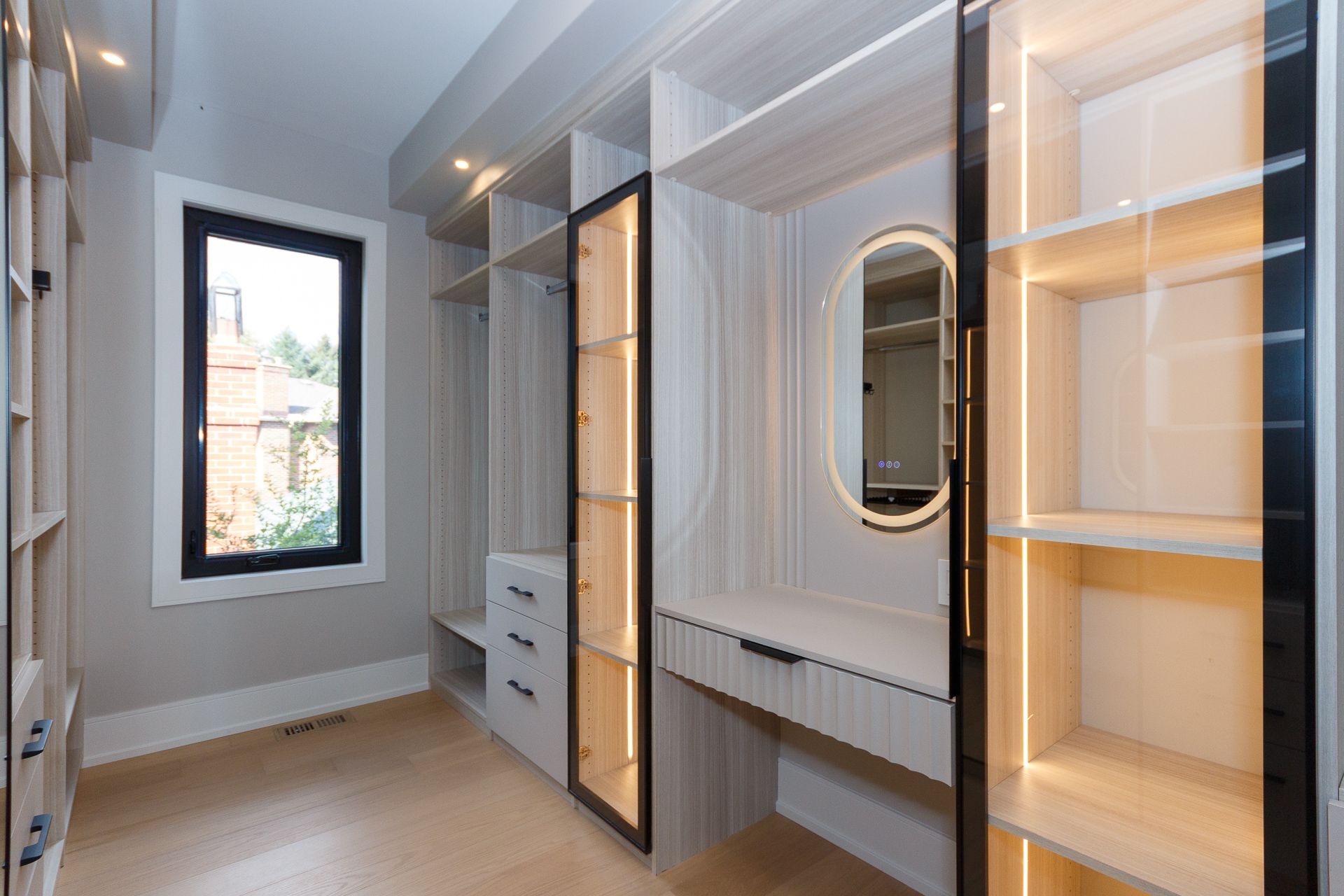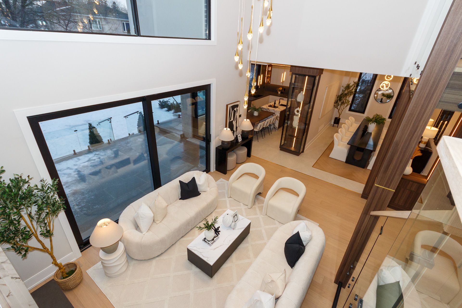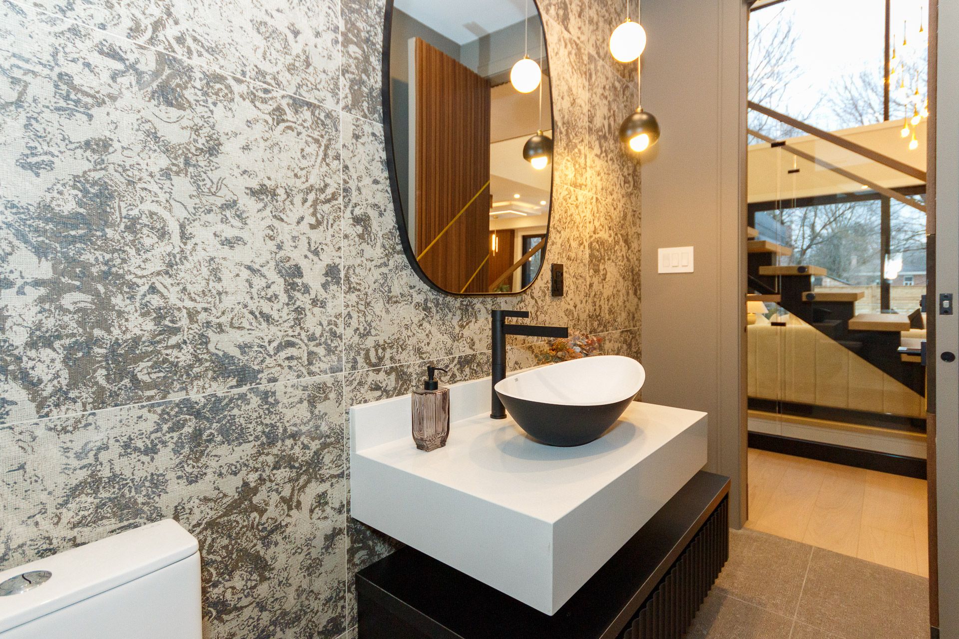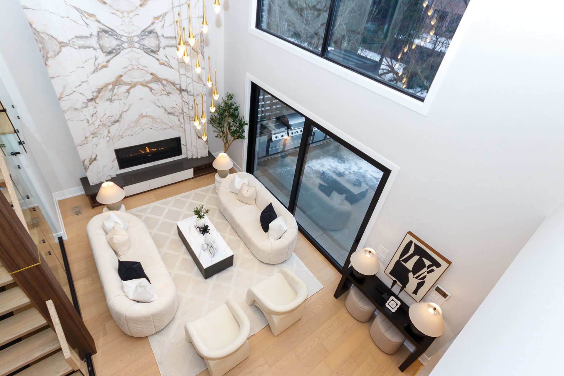 Exquisite custom-built luxury home available for lease in the prestigious Mineola neighbourhood, meticulously designed by Hilal Company & Inspiration Design, and crafted by Eaglecrest New Homes Inc.This breathtaking 5,500+ sq ft residence perfectly combines timeless elegance, modern sophistication, and superior craftsmanship. Every detail has been thoughtfully curated, from the grand entrance to the bespoke millwork, artisan paneling, and striking feature walls that define the interiors.Step into the main floor to experience soaring 20-foot ceilings and floor-to-ceiling windows that flood the space with natural light. The dramatic 17-foot porcelain fireplace serves as a stunning focal point for the open-concept family and living areas. A chef-inspired kitchen, featuring integrated Jenn Air appliances, luxurious countertops, Italian porcelain, and a dedicated breakfast area, seamlessly connects to formal dining and entertaining spaces. A bright home office, ultra-modern powder room, and mudroom with side entrance complete the main level with thoughtful functionality.The upper level offers a serene primary suite retreat, featuring a spa-inspired ensuite and expansive walk-in closet. Three additional bedrooms each include private ensuites and walk-in closets, ensuring comfort and privacy for every family member. A full laundry room adds convenience and efficiency to the upper level. The fully finished lower level is designed for entertainment and wellness, with a vast recreation room featuring a home theatre, granite wet bar with wine display, and walk-up access to the backyard. A dedicated gym and wellness area includes a spa bathroom with jetted tub, while a private in-law suite offers a kitchenette, living space, bathroom, and walk-in closet. Additional storage and laundry complete this level. Step outside to a beautifully landscaped outdoor oasis with covered and open-air decks, built-in BBQ, natural stone patio, and integrated outdoor speakers.