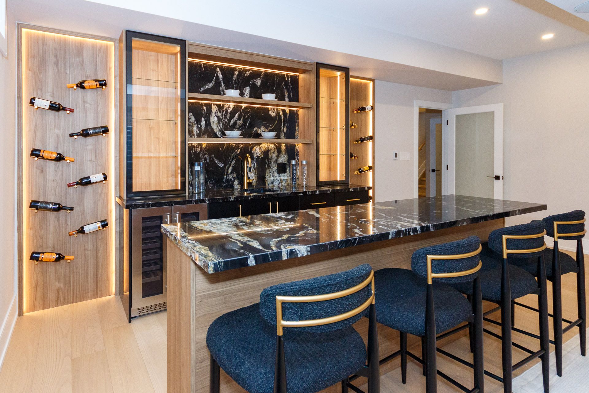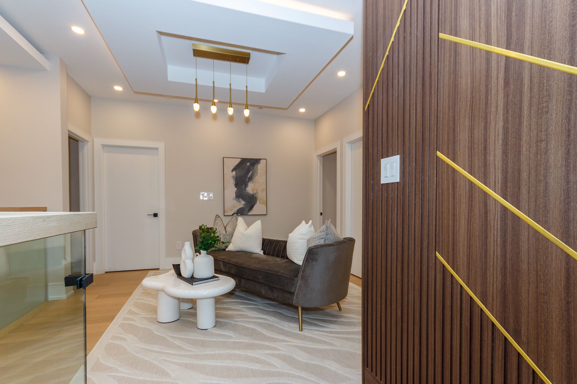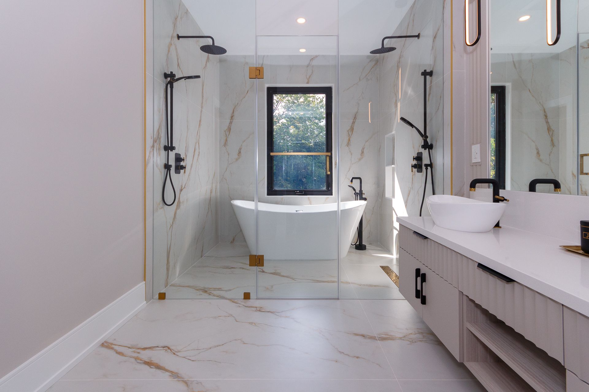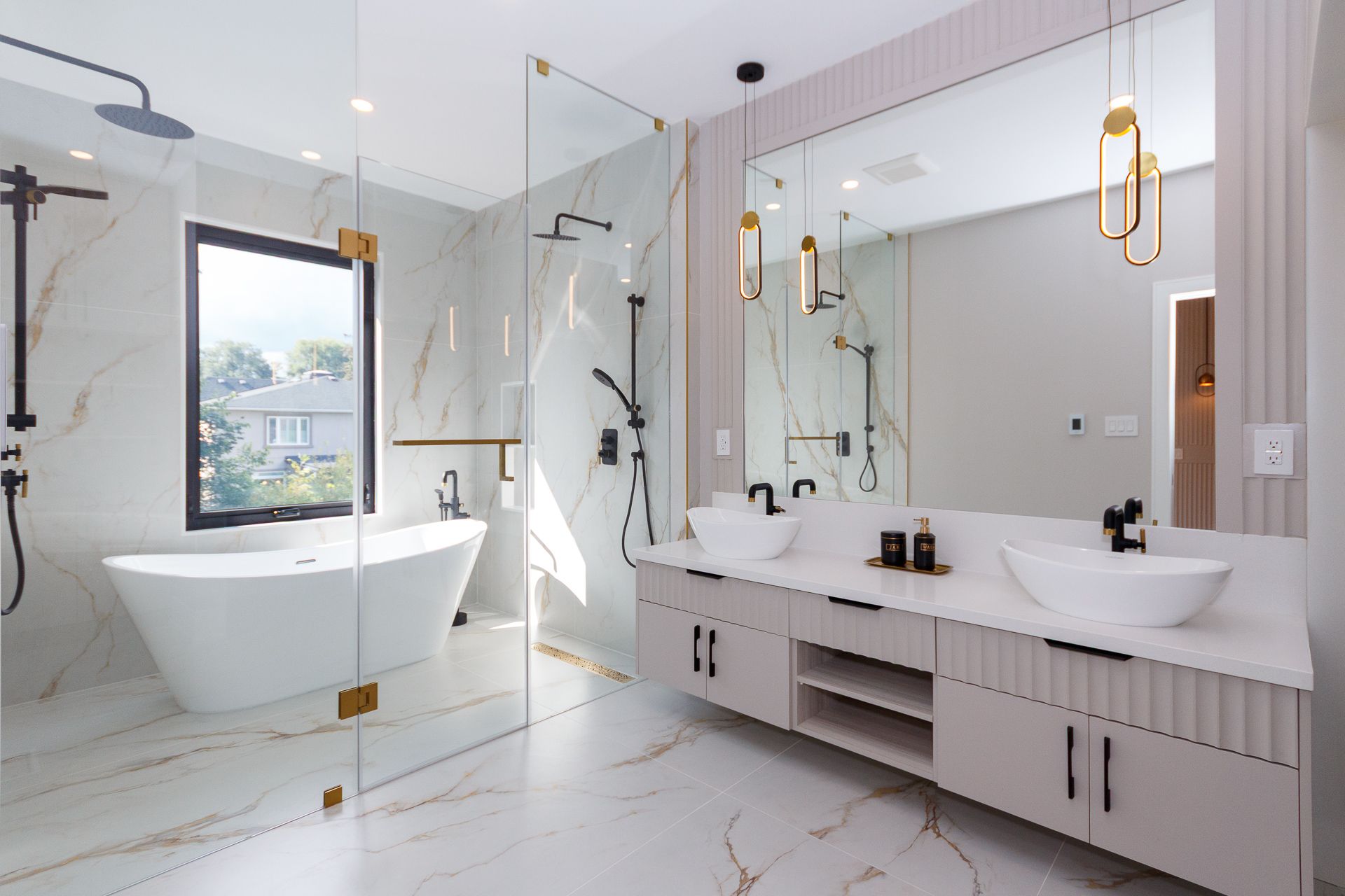 Exquisite custom-built luxury home available for lease in the prestigious Mineola neighbourhood, meticulously designed by Hilal Company & Inspiration Design, and crafted by Eaglecrest New Homes Inc.This breathtaking 5,500+ sq ft residence perfectly combines timeless elegance, modern sophistication, and superior craftsmanship. Every detail has been thoughtfully curated, from the grand entrance to the bespoke millwork, artisan paneling, and striking feature walls that define the interiors.Step into the main floor to experience soaring 20-foot ceilings and floor-to-ceiling windows that flood the space with natural light. The dramatic 17-foot porcelain fireplace serves as a stunning focal point for the open-concept family and living areas. A chef-inspired kitchen, featuring integrated Jenn Air appliances, luxurious countertops, Italian porcelain, and a dedicated breakfast area, seamlessly connects to formal dining and entertaining spaces. A bright home office, ultra-modern powder room, and mudroom with side entrance complete the main level with thoughtful functionality.The upper level offers a serene primary suite retreat, featuring a spa-inspired ensuite and expansive walk-in closet. Three additional bedrooms each include private ensuites and walk-in closets, ensuring comfort and privacy for every family member. A full laundry room adds convenience and efficiency to the upper level. The fully finished lower level is designed for entertainment and wellness, with a vast recreation room featuring a home theatre, granite wet bar with wine display, and walk-up access to the backyard. A dedicated gym and wellness area includes a spa bathroom with jetted tub, while a private in-law suite offers a kitchenette, living space, bathroom, and walk-in closet. Additional storage and laundry complete this level. Step outside to a beautifully landscaped outdoor oasis with covered and open-air decks, built-in BBQ, natural stone patio, and integrated outdoor speakers.