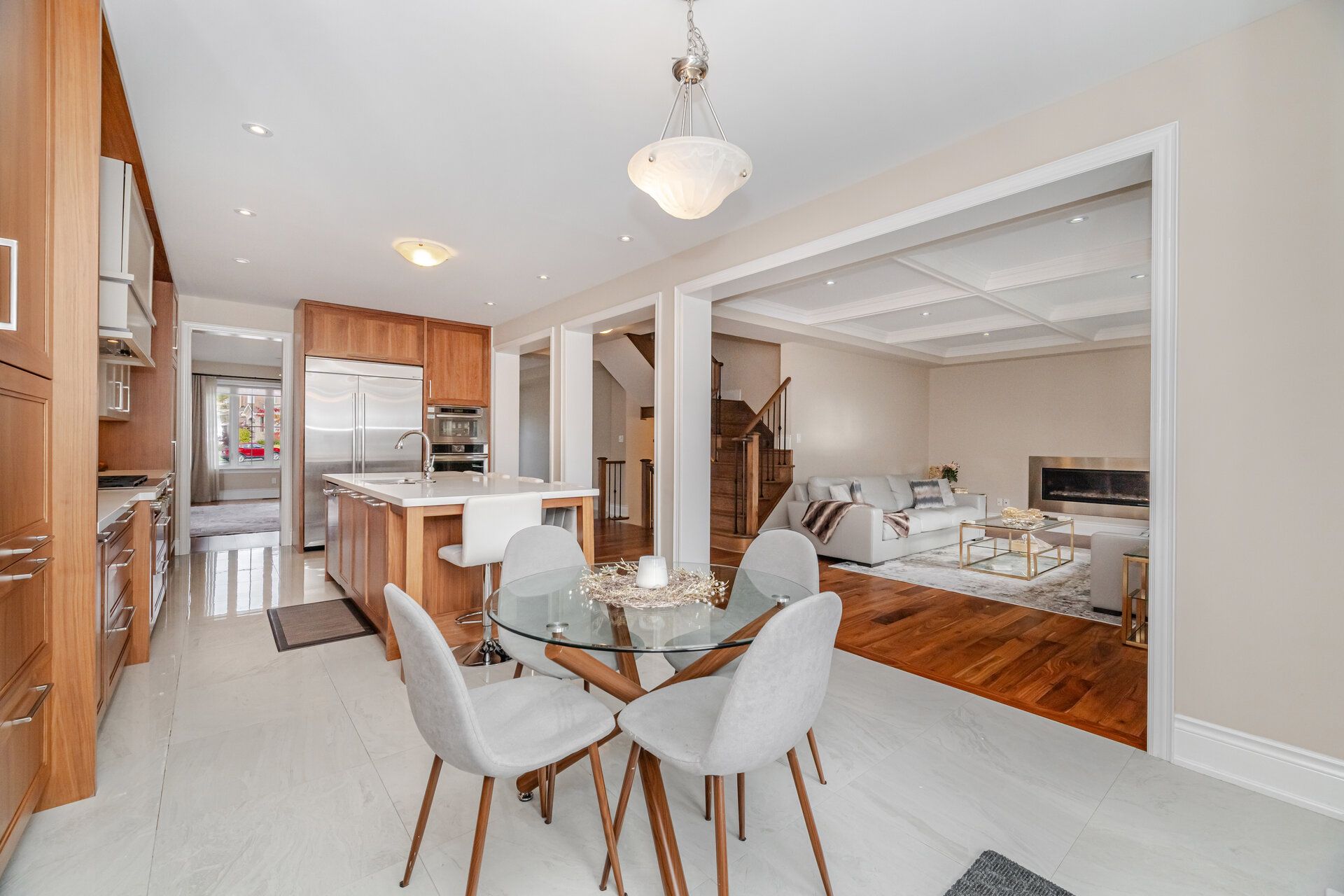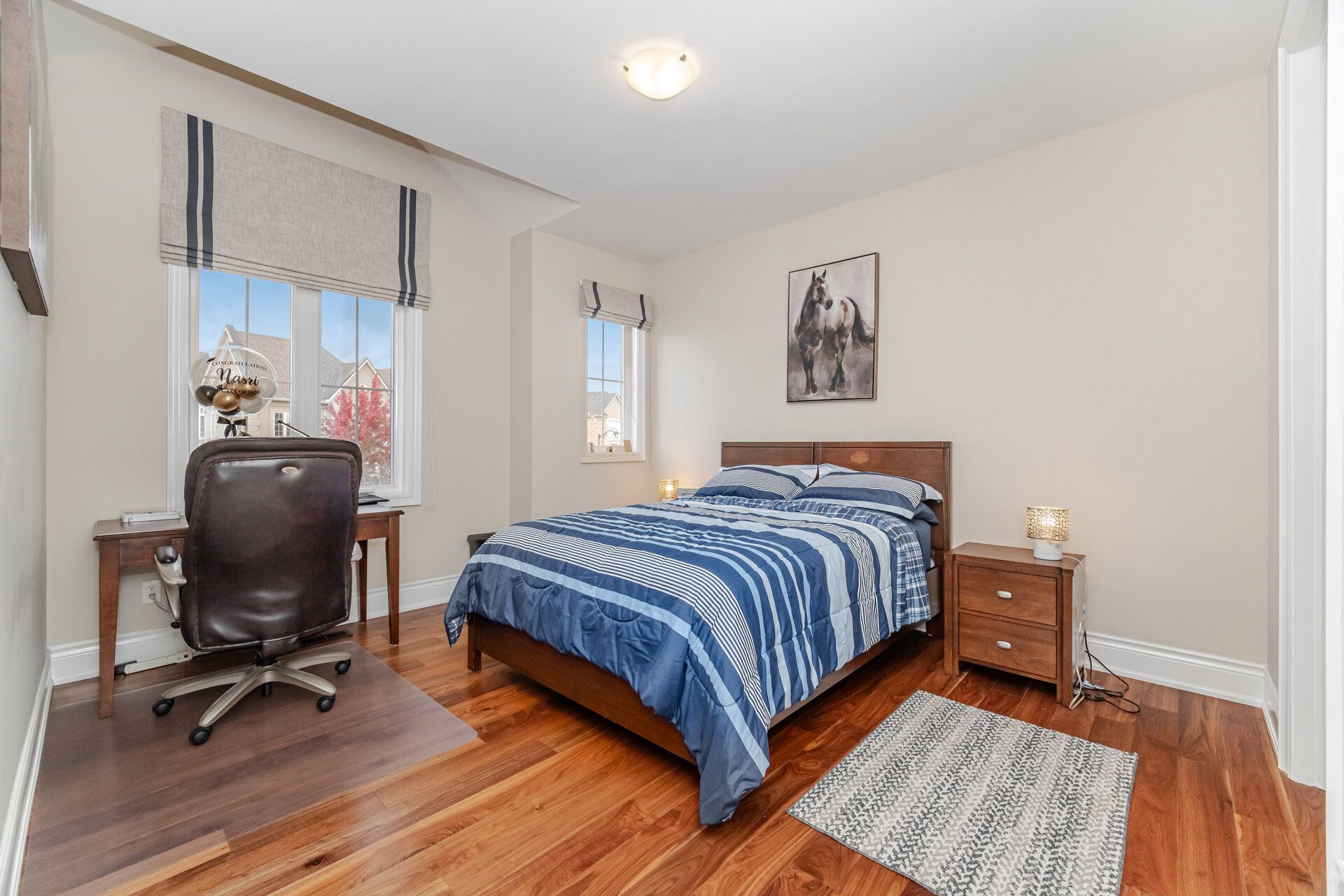 Fully furnished, Executive residence in the River Oaks community on a premium ravine lot. This Custom four bedroom and four bathroom home offers engineered hardwood and nine foot ceilings throughout. The main floor combines formal and functional spaces with separate living and dining rooms with coffered ceilings, a family room with gas fireplace and backyard views, and a custom chefs kitchen with large centre island, quartz counters, stainless steel appliances, gas stove, and built in breakfast and coffee bar. An eat in area walks out to the rear deck. The main level laundry and mudroom add convenience.The second floor has four well sized bedrooms including two with en-suites and two sharing a semi ensuite. The primary suite includes vaulted ceiling, a five piece spa style ensuite with heated floors, and a walk in dressing room. Heated floors in all bathrooms. Located close to top-rated schools, Sheridan College, trails, parks, shopping, restaurants, and highways 403 and 407. Quick commute to downtown Toronto and Pearson Airport. A strong opportunity in one of Oakvilles most sought after family neighbourhoods. This home is not just a residence, it is a lifestyle and a rare offering in one of Oakvilles most desirable communities.