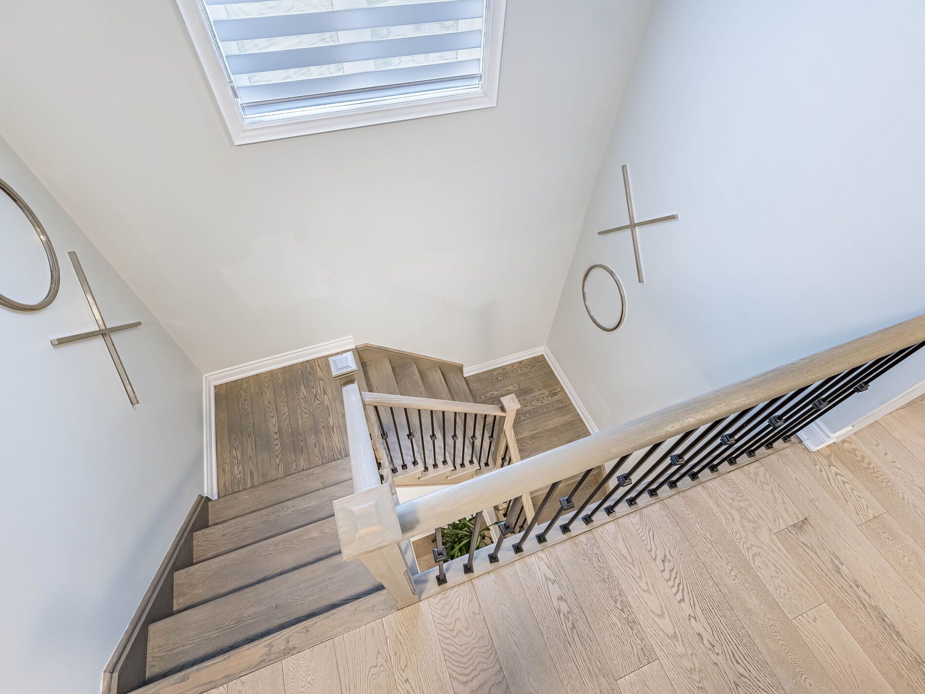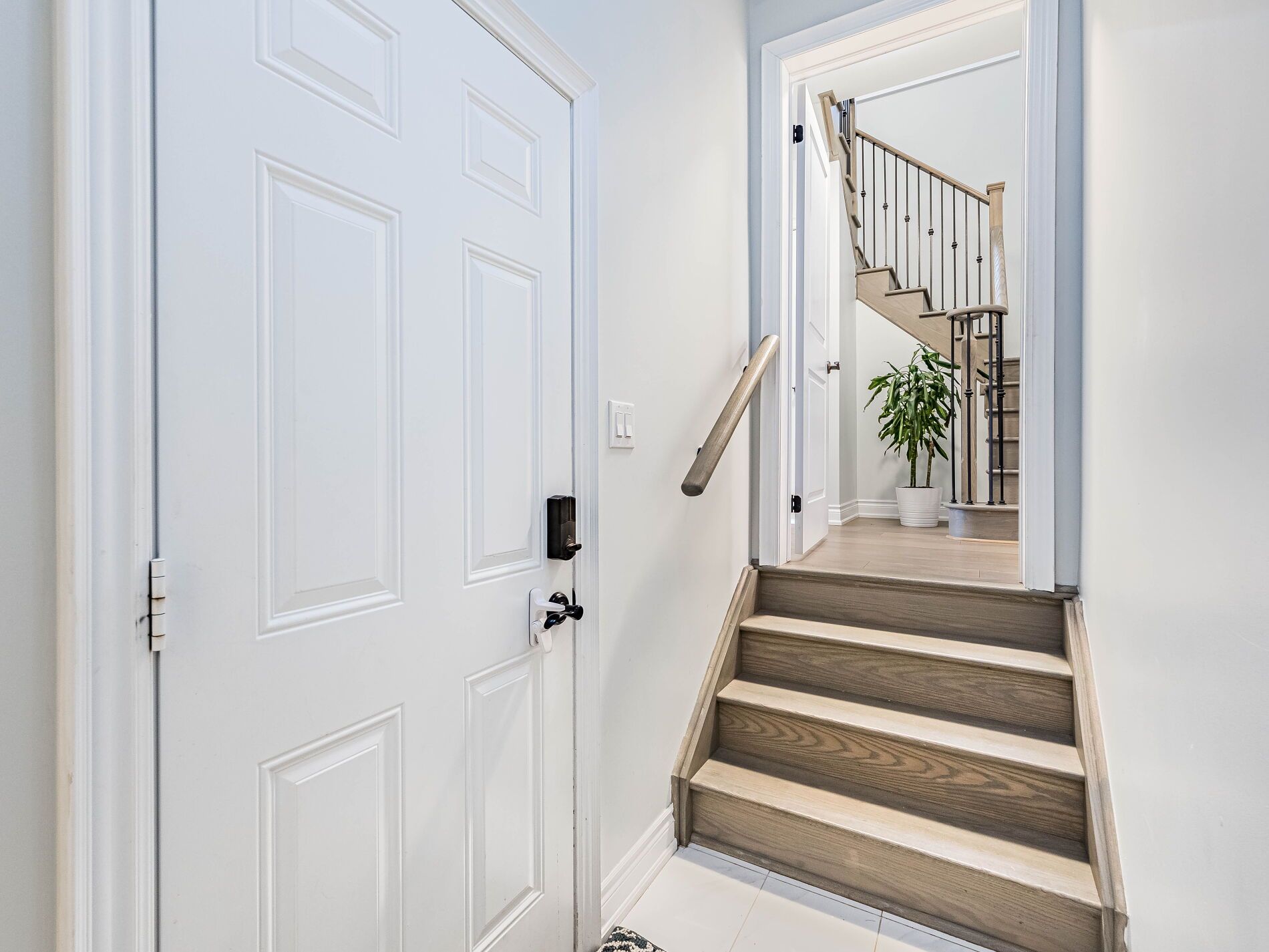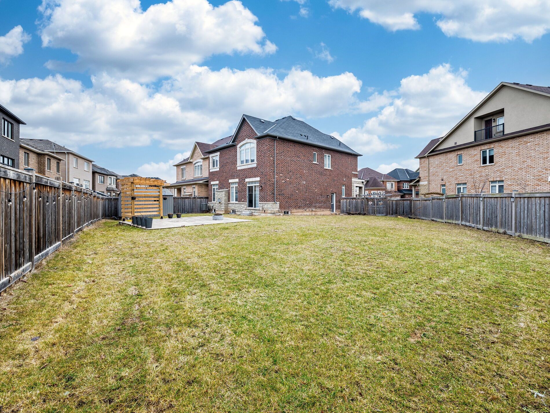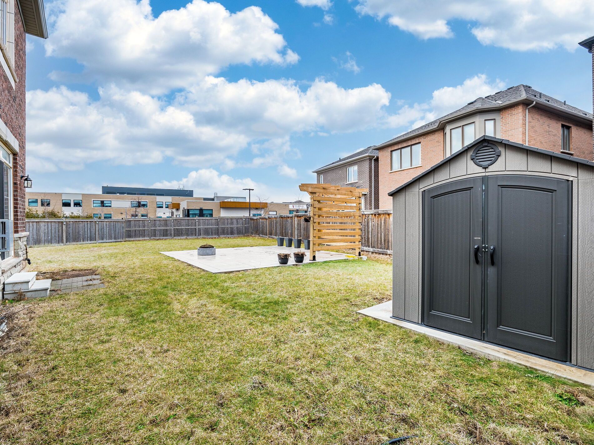 Rare Opportunity to Own a Remington-Built Executive Home in North Oakville! Welcome to this exceptional approximately 2,400 sq. ft. family home, situated on a super-sized premium lot in a quiet, family-friendly crescent. This residence offers outstanding curb appeal with a full stone and brick exterior, charming covered front porch, professional landscaping, a long driveway, and a double car garage. Inside, the home features 9' ceilings on both the main and second floors, a spacious and welcoming foyer, and thoughtfully designed living spaces ideal for modern family living. Invested over $100,000 in high-end upgrades, including hardwood flooring, cabinetry, fireplace, pot lights, upgraded light fixtures on main floor & backyard pergola on huge stamped concrete patio. The heart of the home is the open-concept kitchen ,dining, and great room, showcasing upgraded stone countertops, stainless steel appliances, ceiling-height cabinetry with crown molding, a stylish backsplash, and extended cabinetry and counter space into the eating area. The dining area is generously sized for entertaining, while the great room is filled with natural light from large windows and anchored by a beautiful gas fireplace with an elegant feature surround and coffered ceilings. The second level offers four spacious bedrooms and three full bathrooms, including a serene primary retreat with a walk-in closet and private ensuite & second-floor laundry adds everyday convenience. Separate side entrance to the basement, 3-piece bathroom rough-in in the basement made excellent potential for an in-law suite. EV charging outlet in garage & extra-large backyard, ideal for a pool or play area, featuring a stamped concrete patio with pergola and a large storage shed on a concrete base making this layout ideal for entertaining large friends and family gatherings.