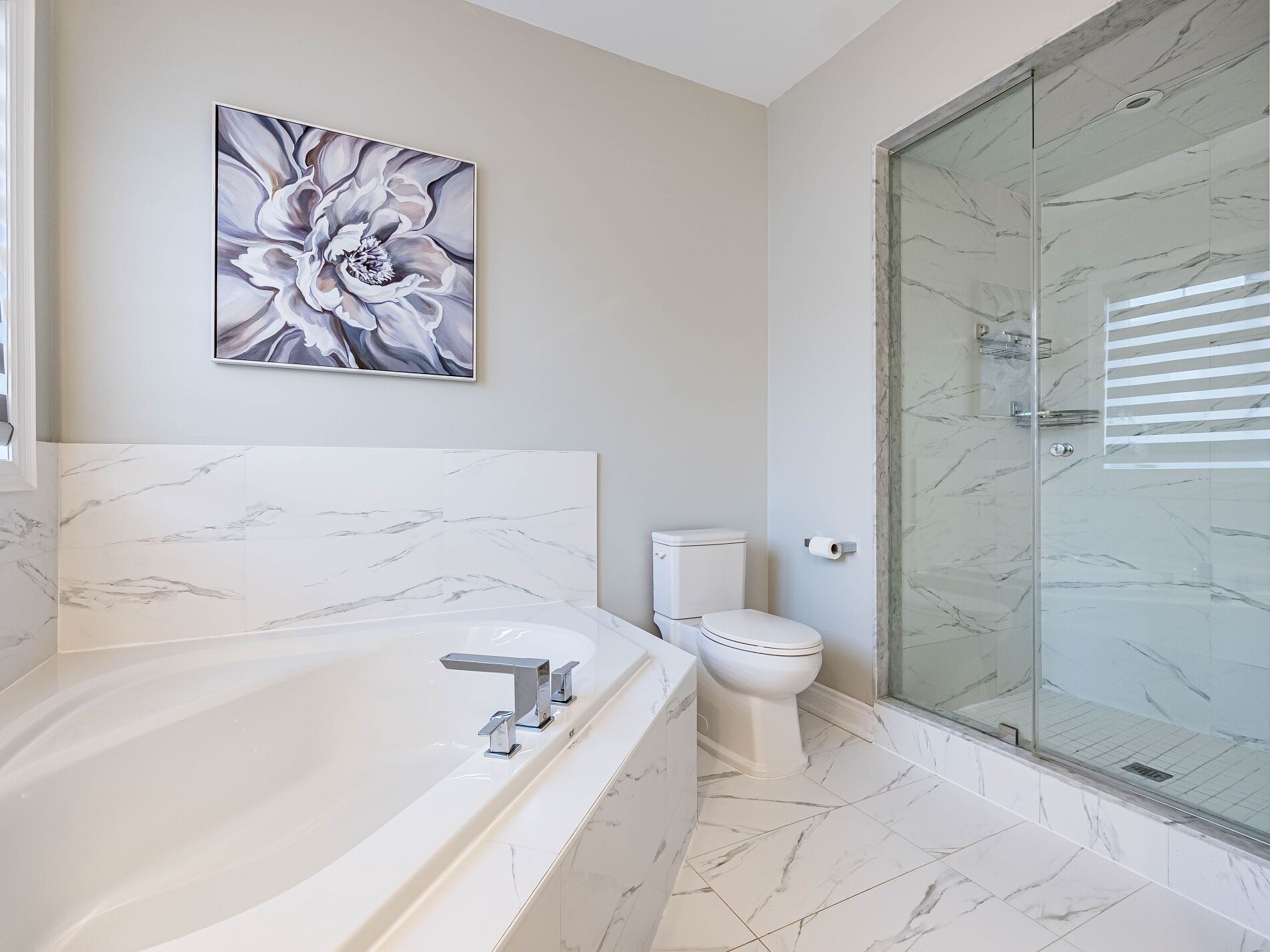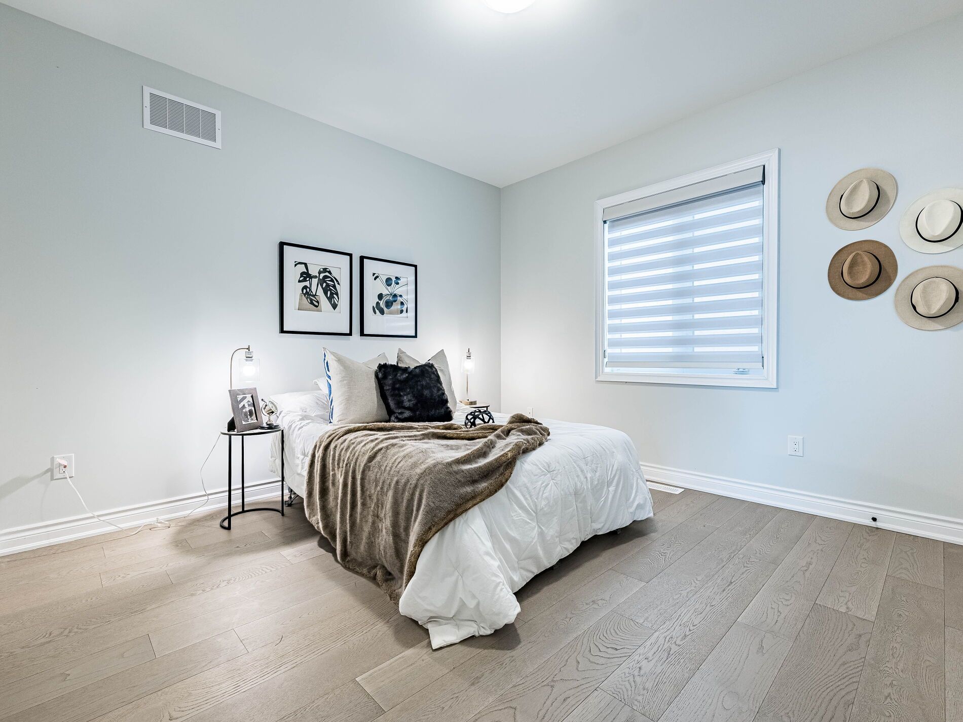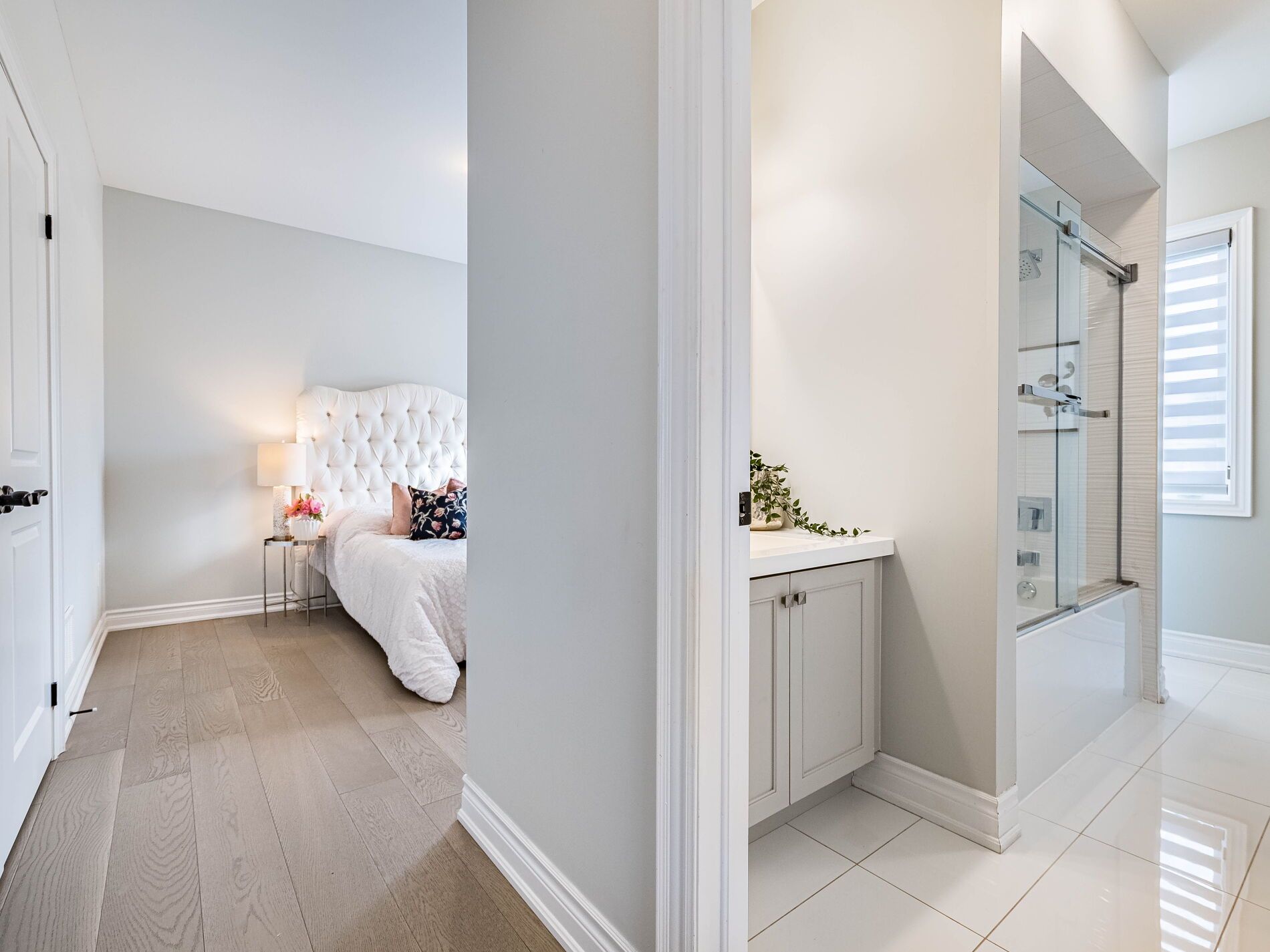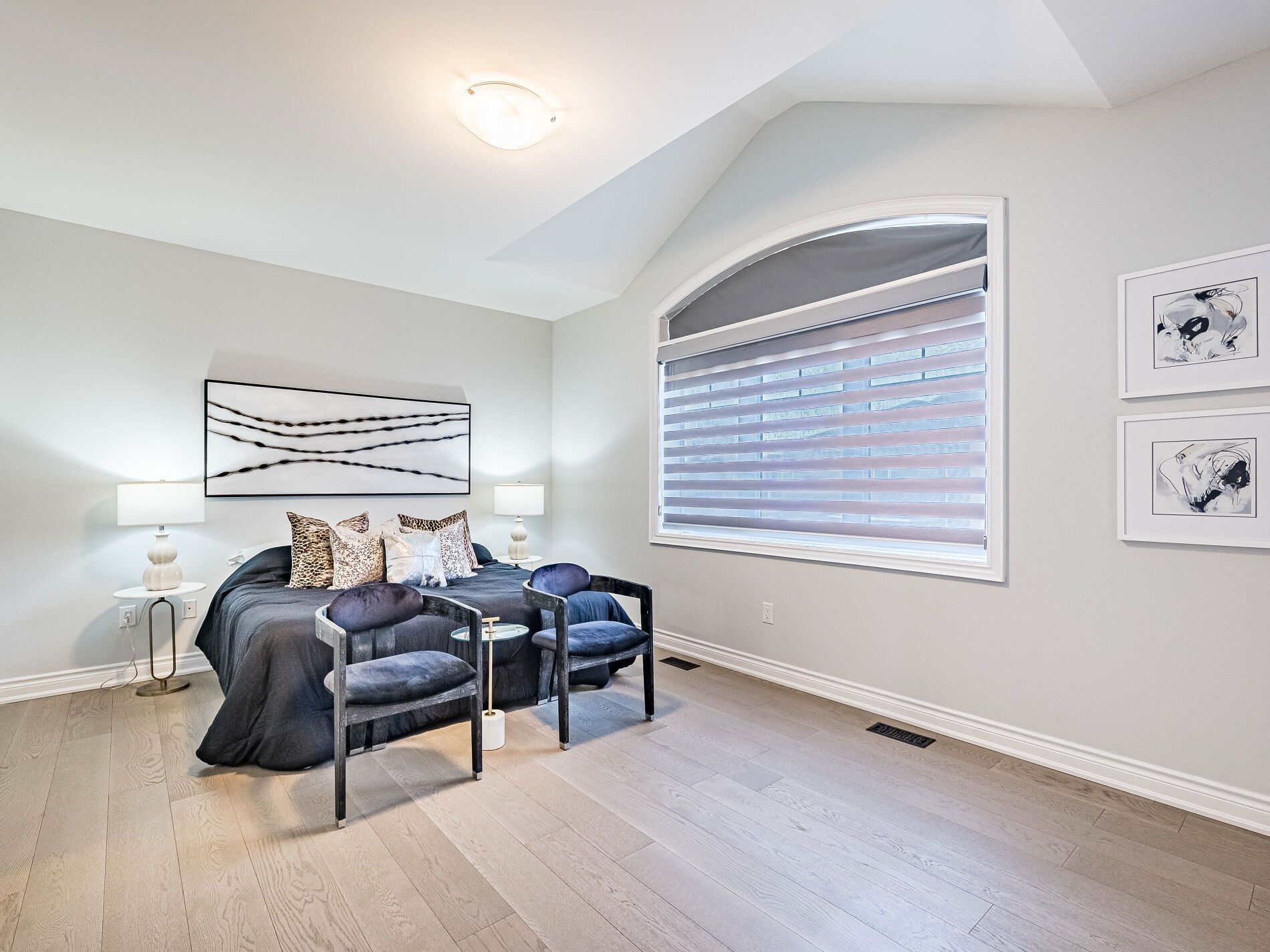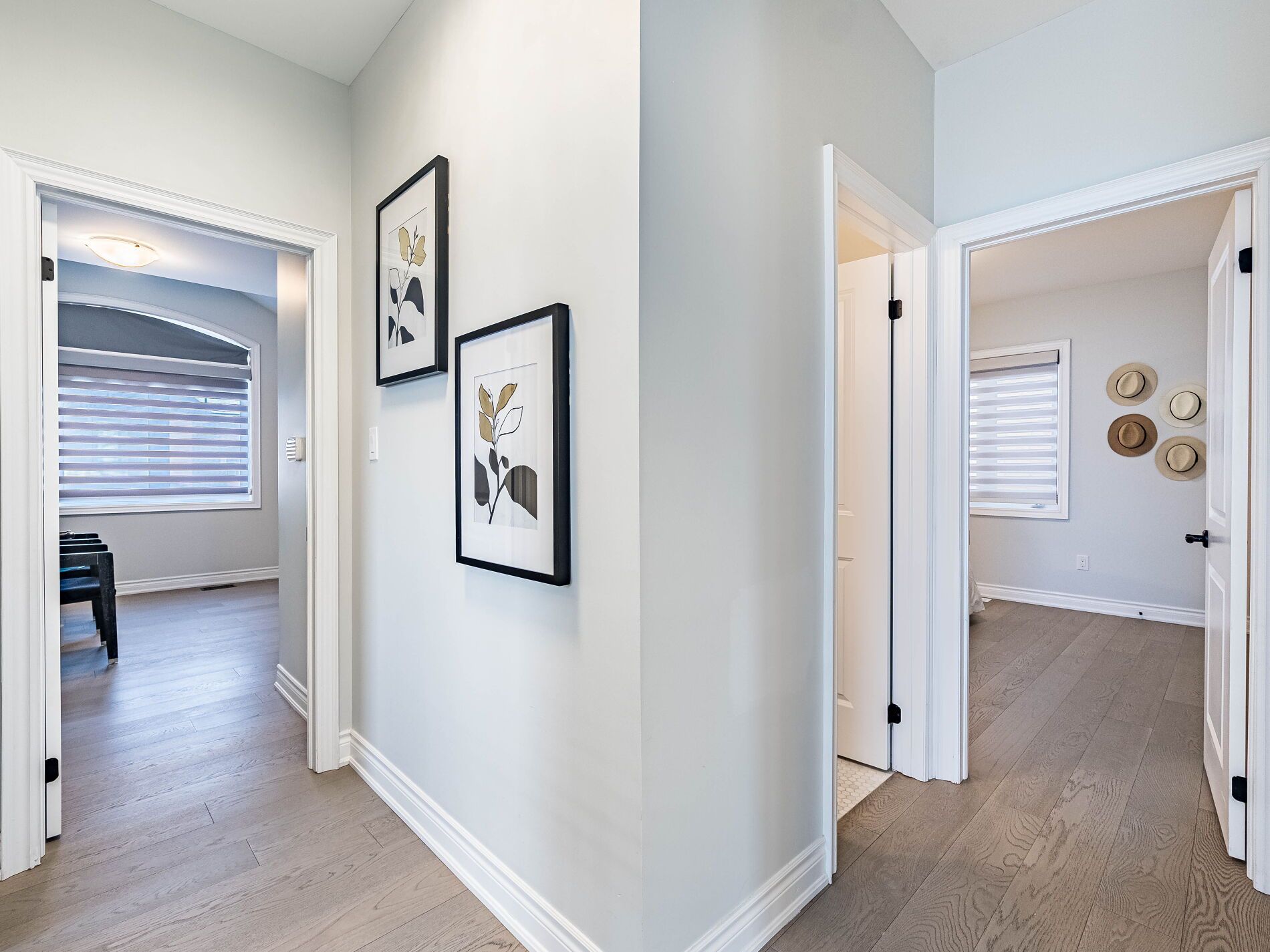 Rare Opportunity to Own a Remington-Built Executive Home in North Oakville! Welcome to this exceptional approximately 2,400 sq. ft. family home, situated on a super-sized premium lot in a quiet, family-friendly crescent. This residence offers outstanding curb appeal with a full stone and brick exterior, charming covered front porch, professional landscaping, a long driveway, and a double car garage. Inside, the home features 9' ceilings on both the main and second floors, a spacious and welcoming foyer, and thoughtfully designed living spaces ideal for modern family living. Invested over $100,000 in high-end upgrades, including hardwood flooring, cabinetry, fireplace, pot lights, upgraded light fixtures on main floor & backyard pergola on huge stamped concrete patio. The heart of the home is the open-concept kitchen ,dining, and great room, showcasing upgraded stone countertops, stainless steel appliances, ceiling-height cabinetry with crown molding, a stylish backsplash, and extended cabinetry and counter space into the eating area. The dining area is generously sized for entertaining, while the great room is filled with natural light from large windows and anchored by a beautiful gas fireplace with an elegant feature surround and coffered ceilings. The second level offers four spacious bedrooms and three full bathrooms, including a serene primary retreat with a walk-in closet and private ensuite & second-floor laundry adds everyday convenience. Separate side entrance to the basement, 3-piece bathroom rough-in in the basement made excellent potential for an in-law suite. EV charging outlet in garage & extra-large backyard, ideal for a pool or play area, featuring a stamped concrete patio with pergola and a large storage shed on a concrete base making this layout ideal for entertaining large friends and family gatherings.